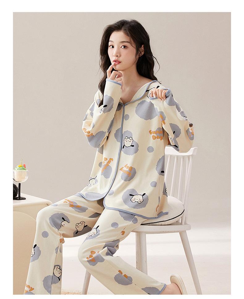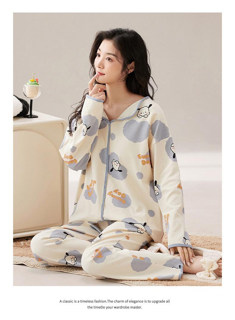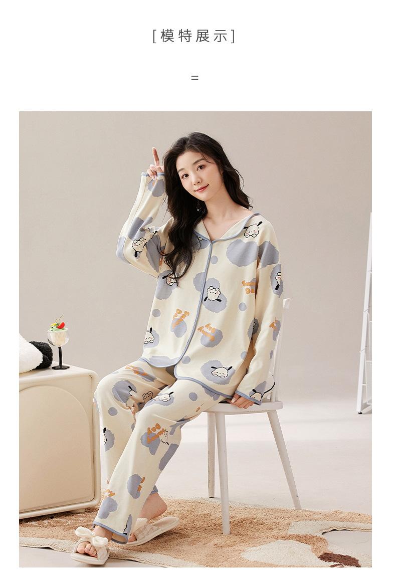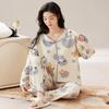 Pijamas de mujer de primavera y otoño 6535, ropa informal de manga larga para el hogar, traje juvenil de otoño, cárdigan con tirantes finos y almohadilla para el pecho.