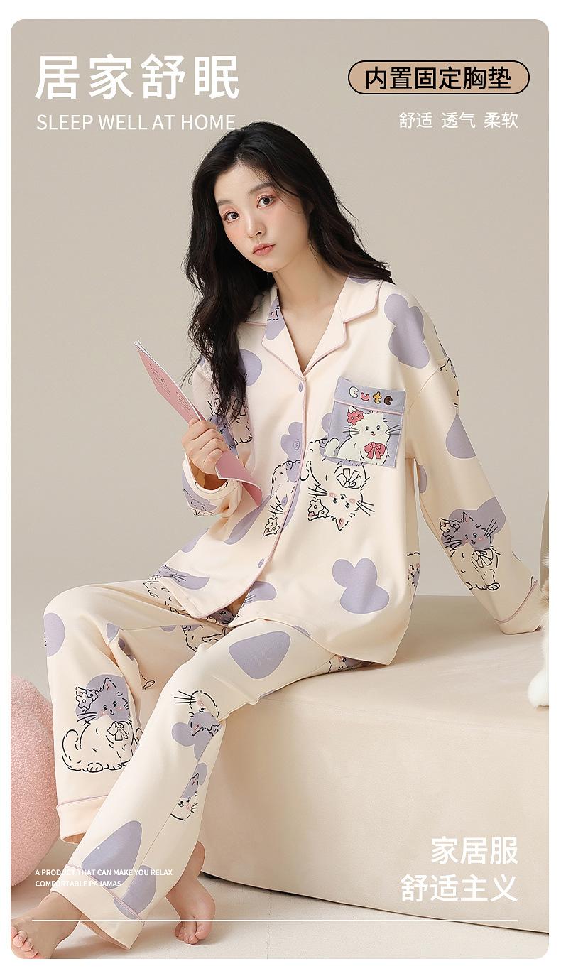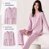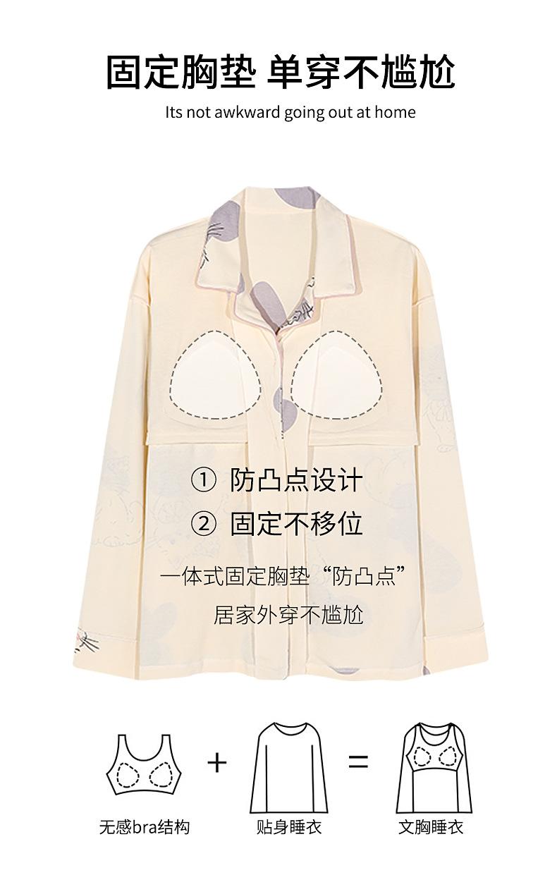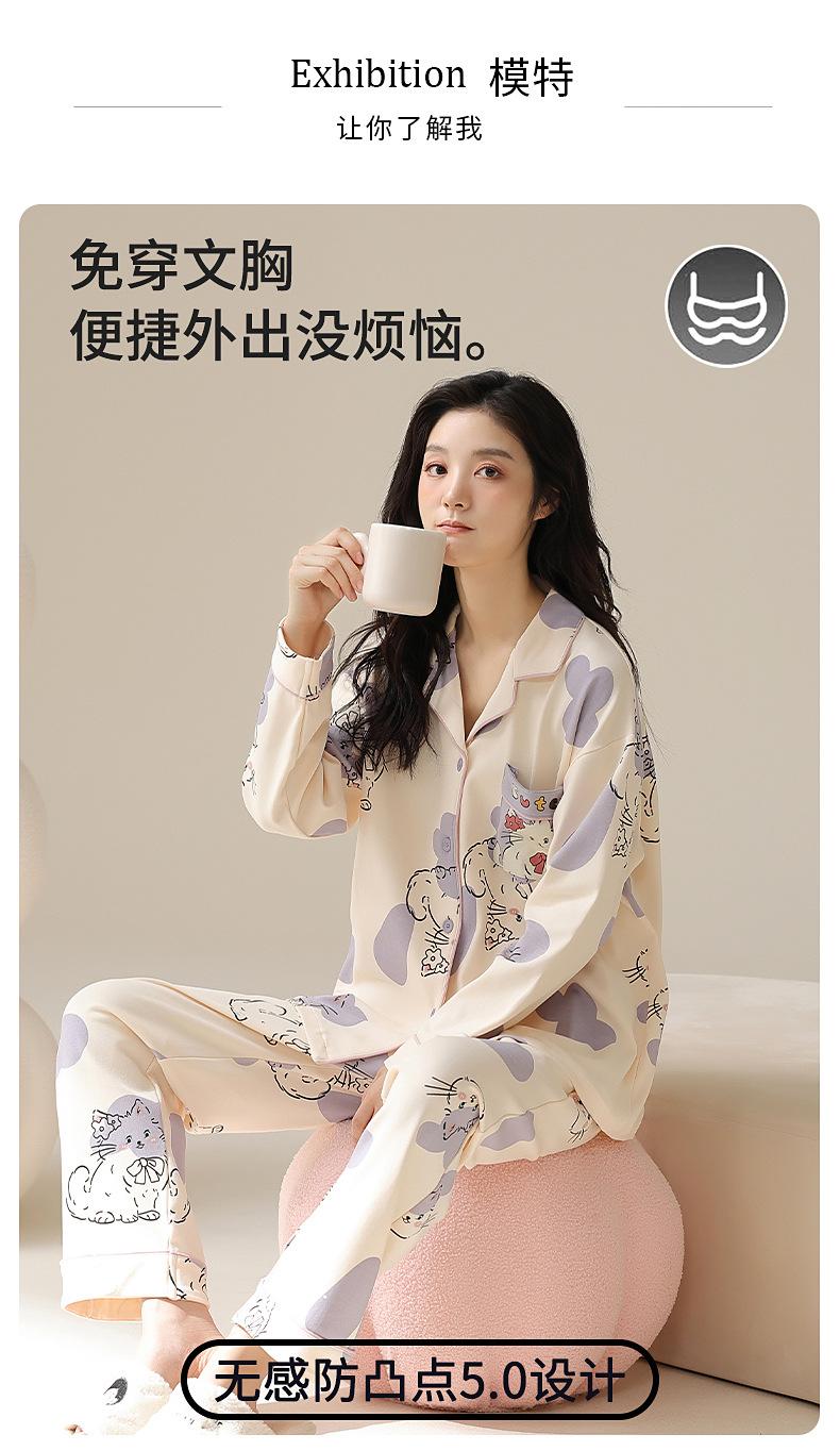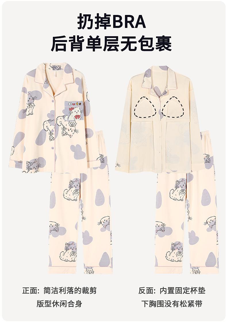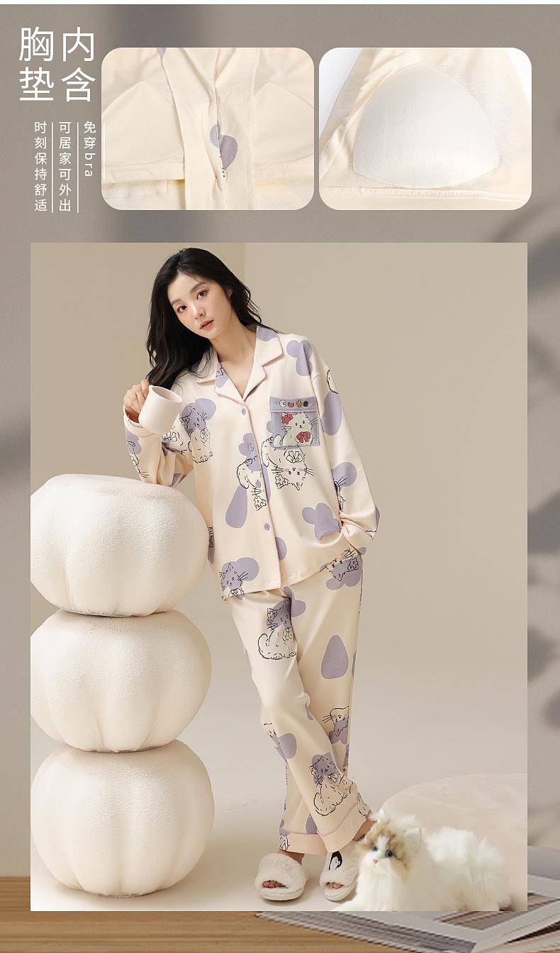 [Algodón puro] Pijama de 40 doble cara para mujer con almohadilla en el pecho para primavera, otoño e invierno, ropa de casa de manga larga, conjunto de dos piezas que se puede usar fuera