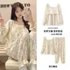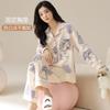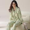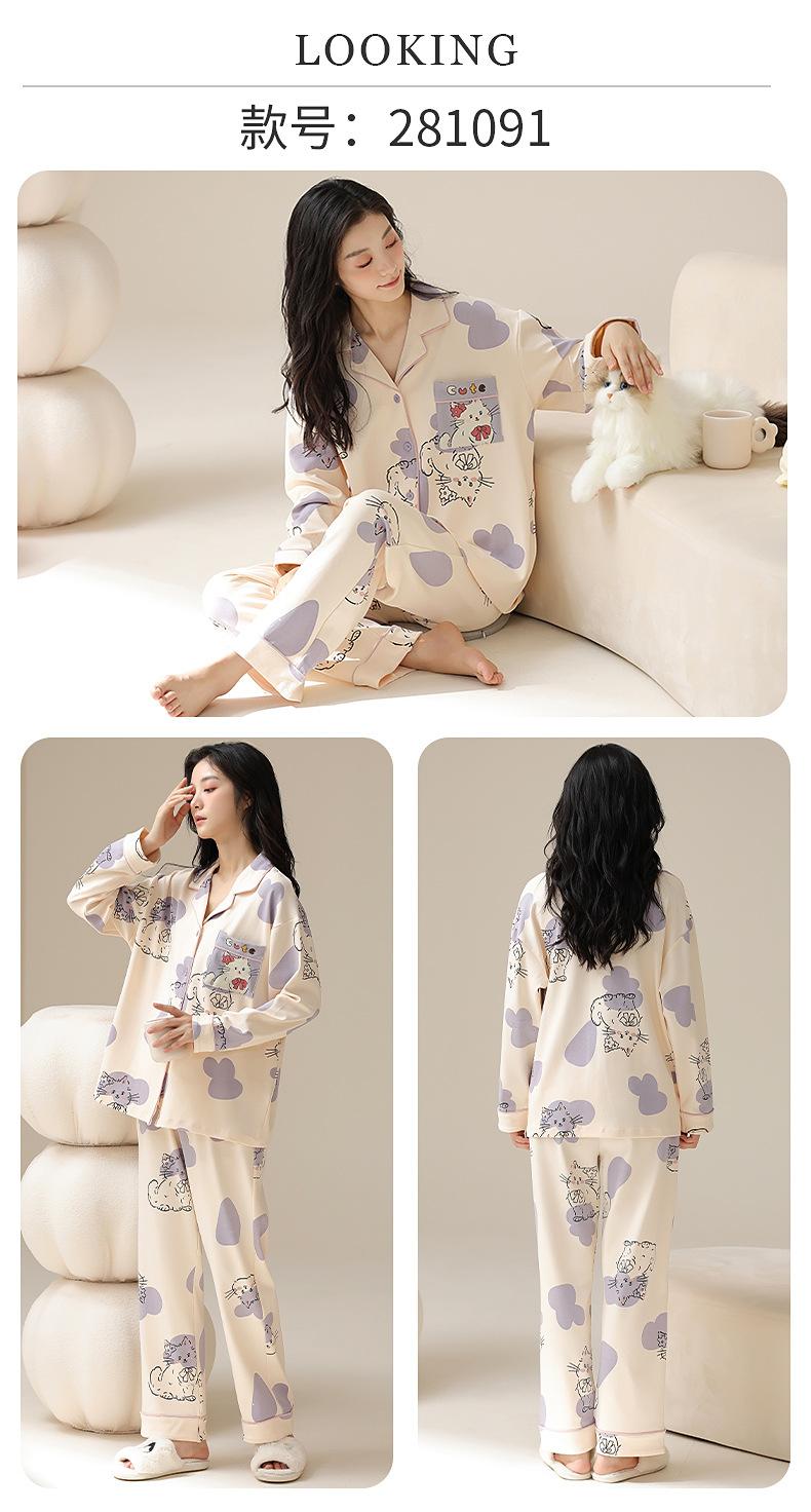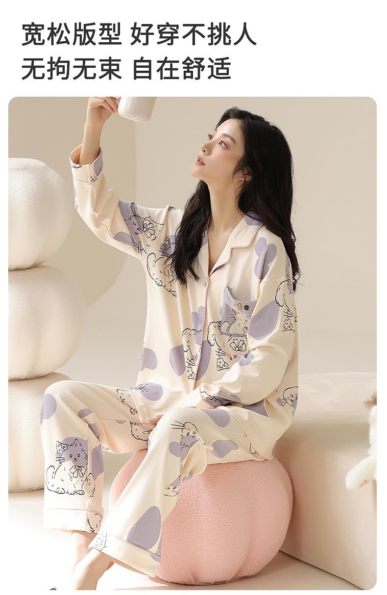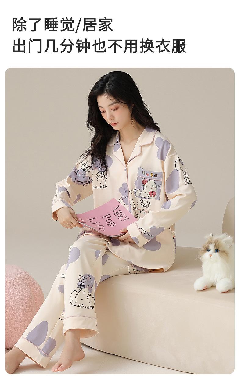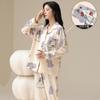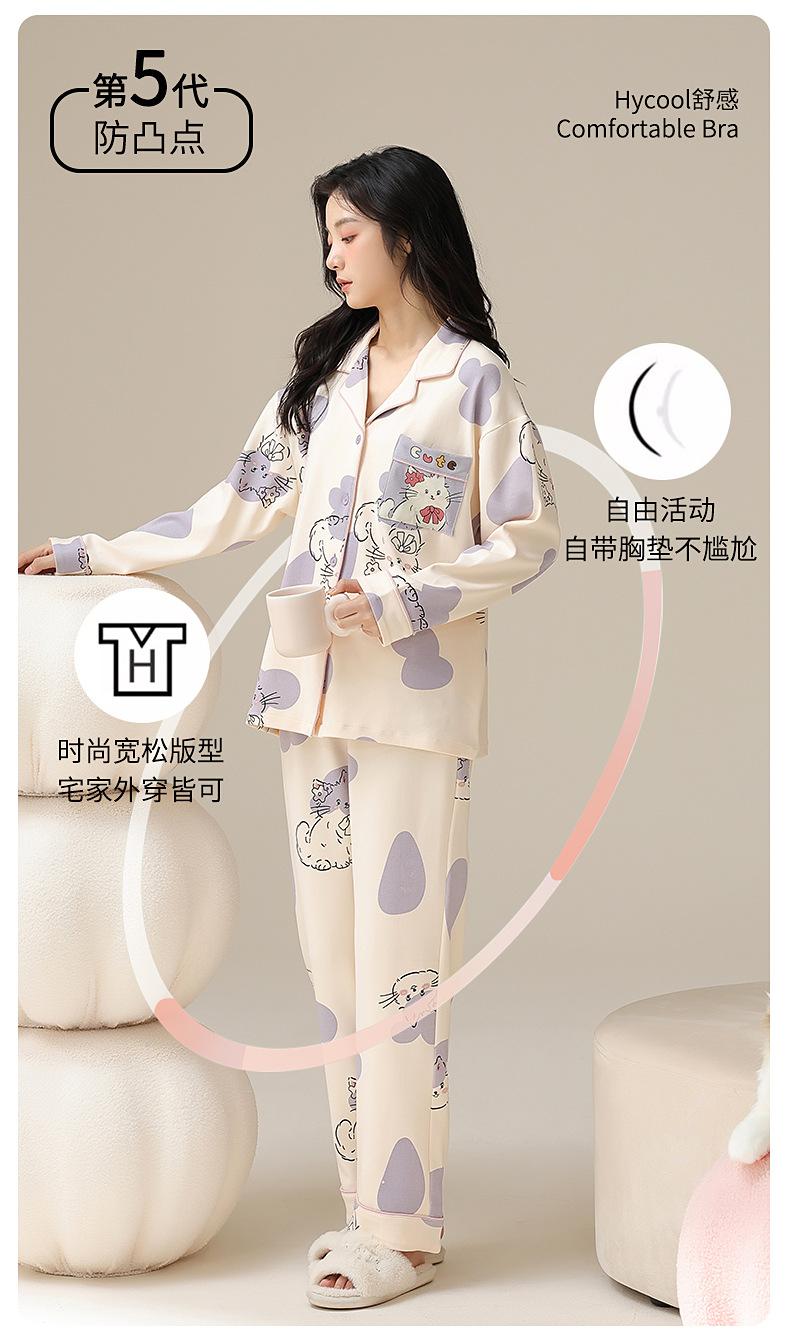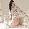 [Algodón puro] Pijama de 40 doble cara para mujer con almohadilla en el pecho para primavera, otoño e invierno, ropa de casa de manga larga, conjunto de dos piezas que se puede usar fuera