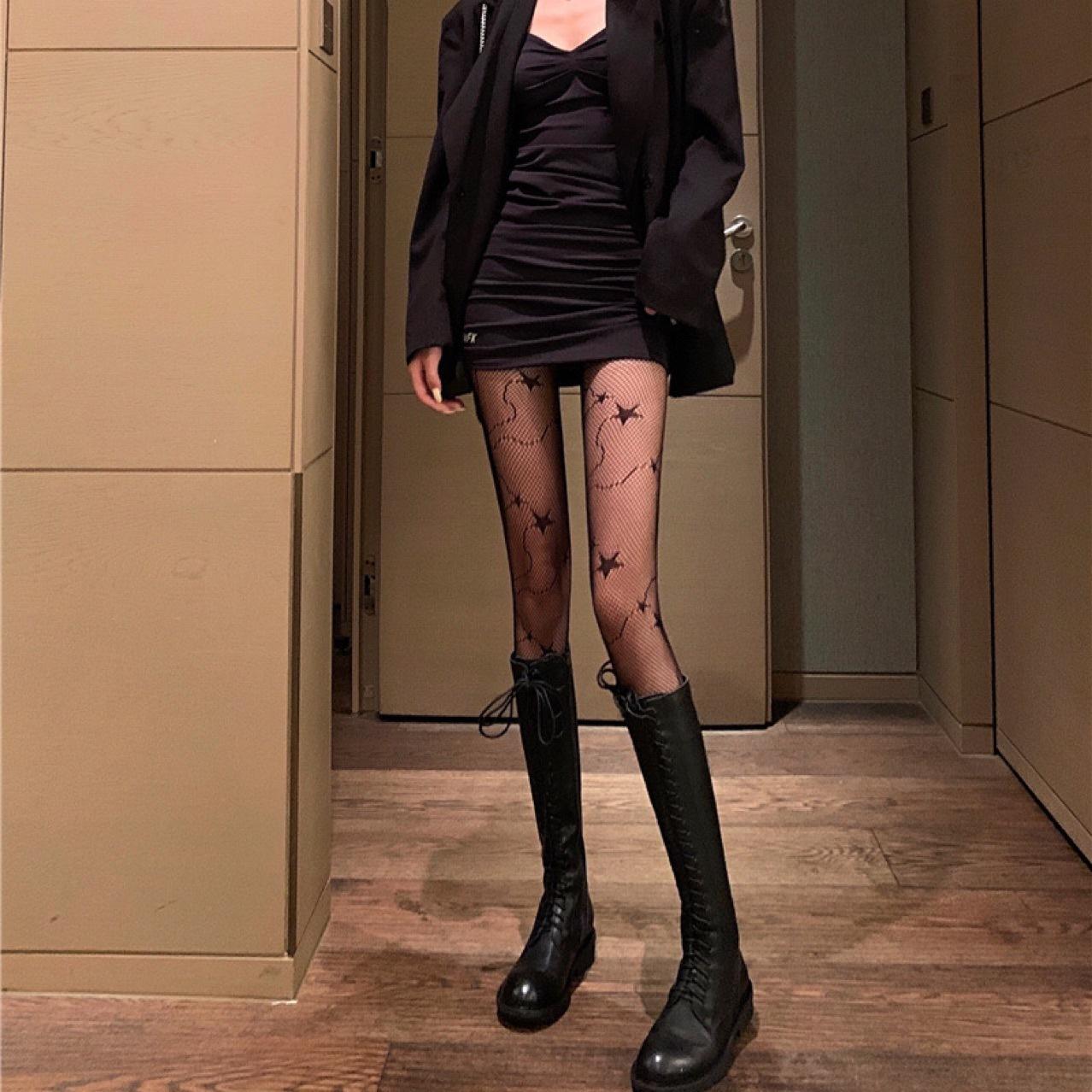 Calcetines de malla para mujer, calcetines finos de verano con diseño de meteoritos, leggings ajustados sexys a la moda, pantimedias de rejilla, medias negras al por mayor