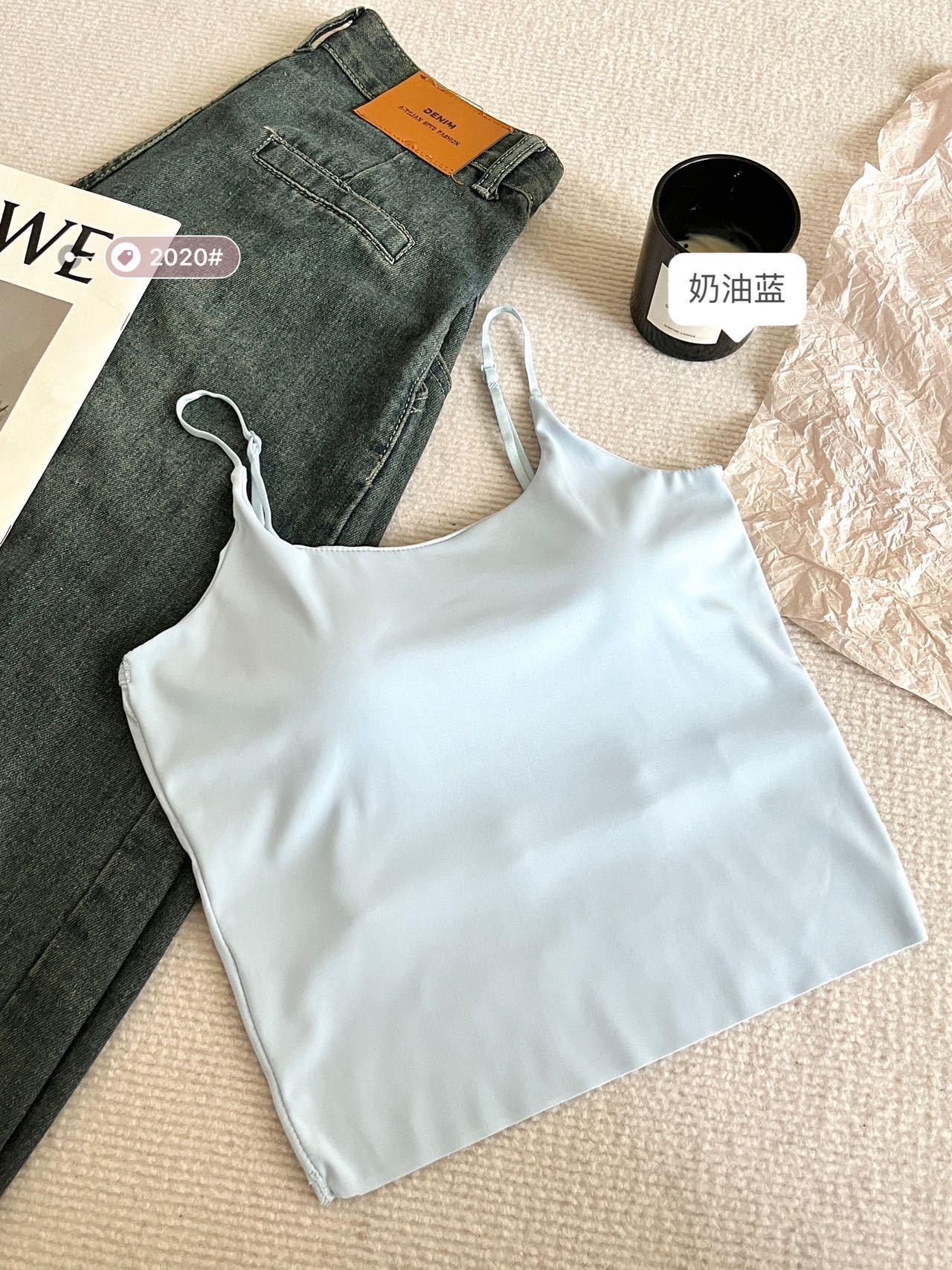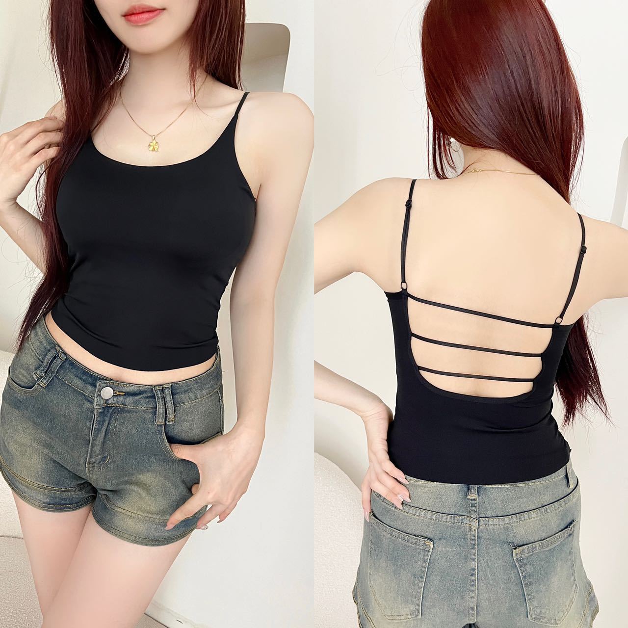 Top deportivo sencillo de seda helada, adelgazante, fino, sin espalda, hueco, suave y dulce, para verano, para mujer