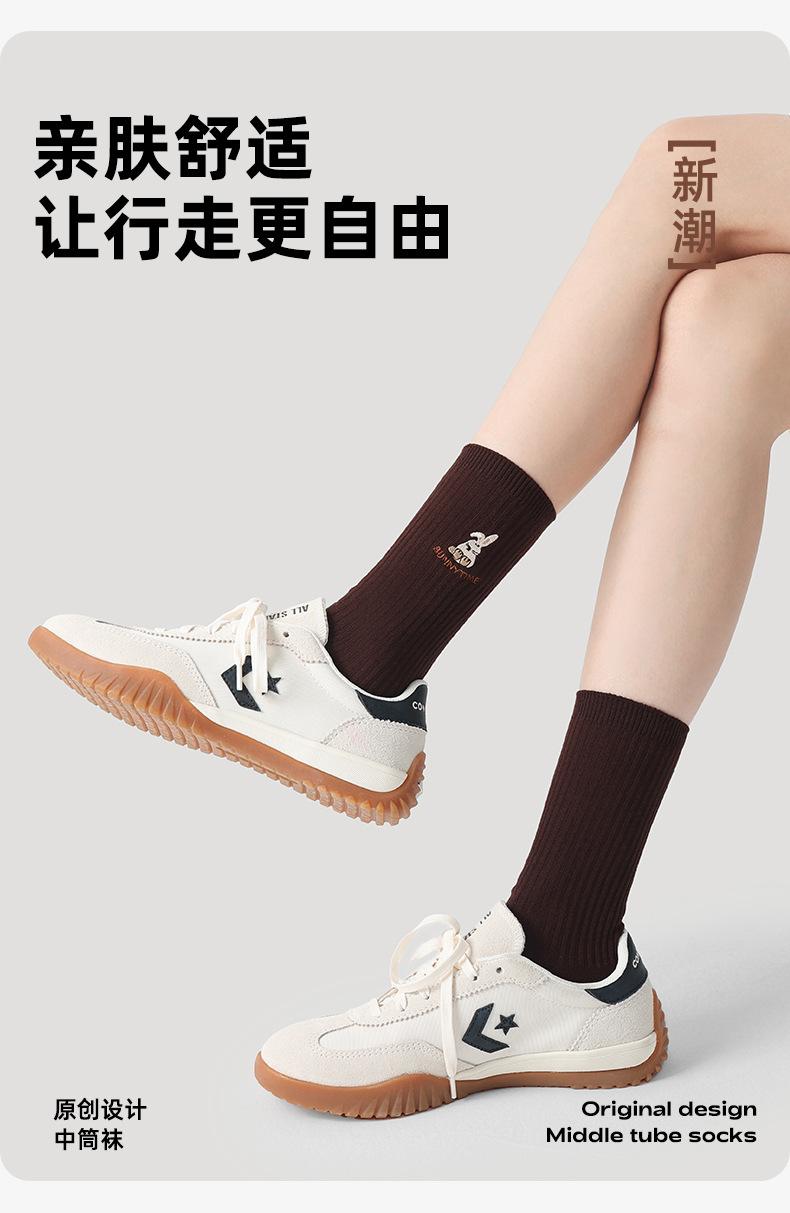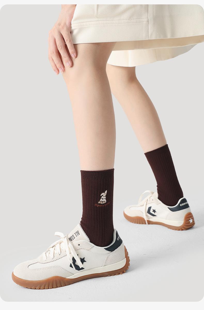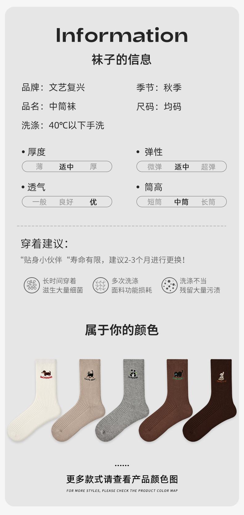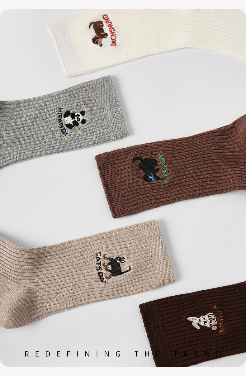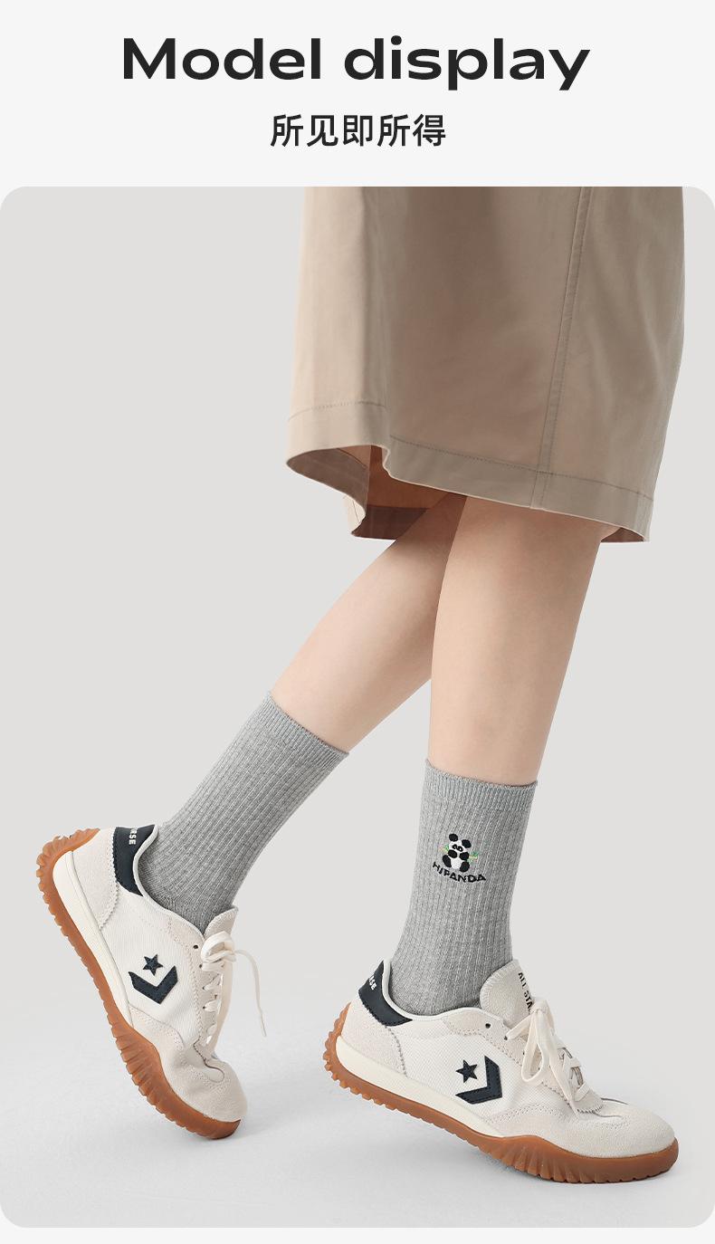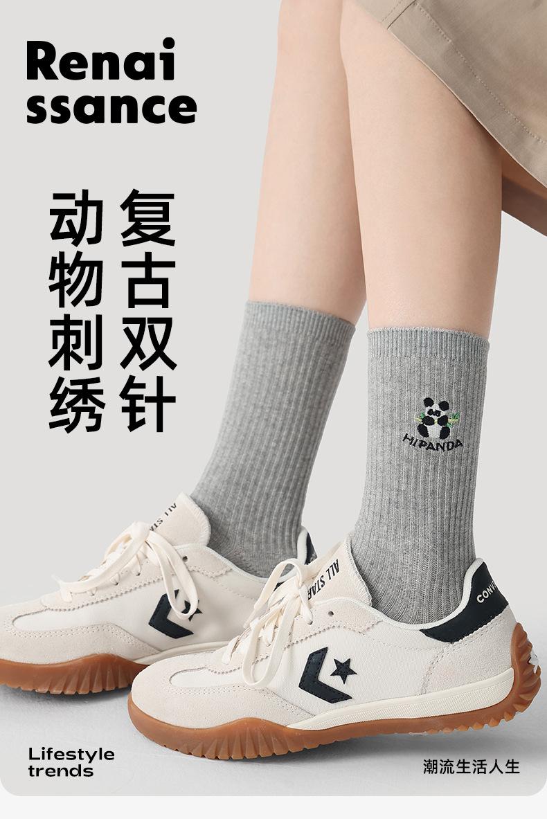 Calcetines Renacentistas para Mujer Color Sólido Bordado de Panda Estilo Academia Primavera y Otoño Delgados Transpirables de Media Caña para Estudiantes