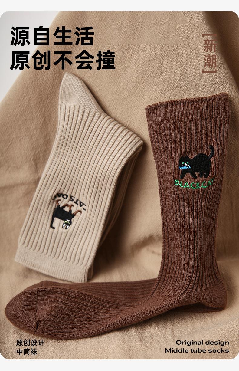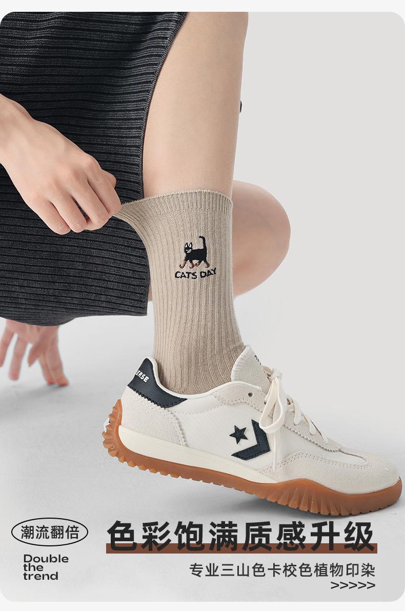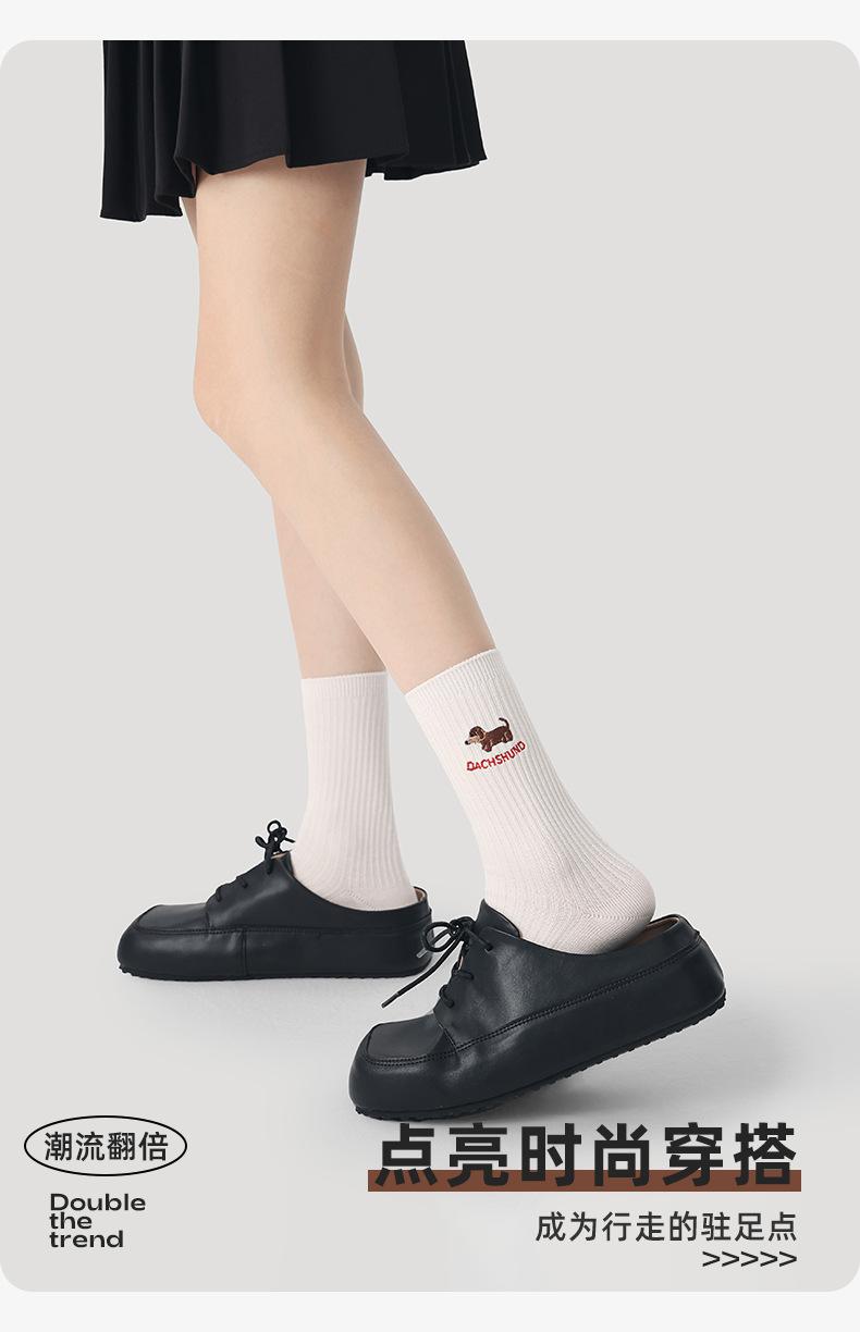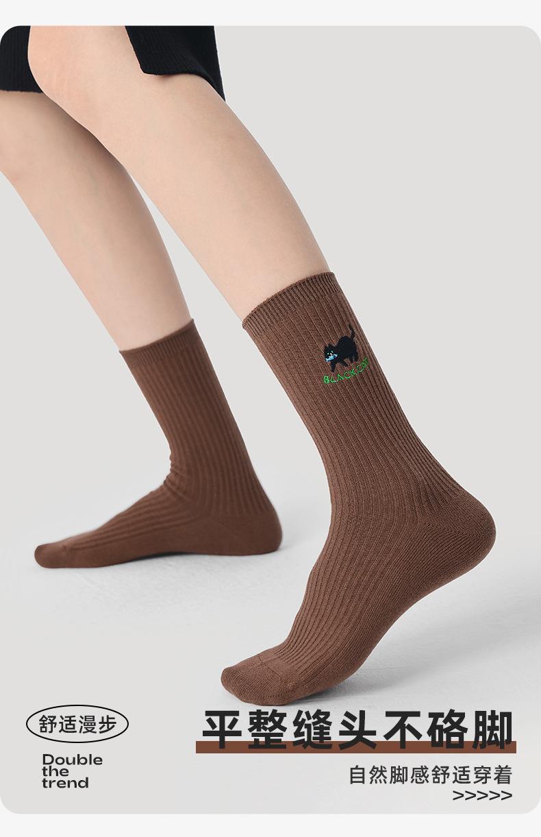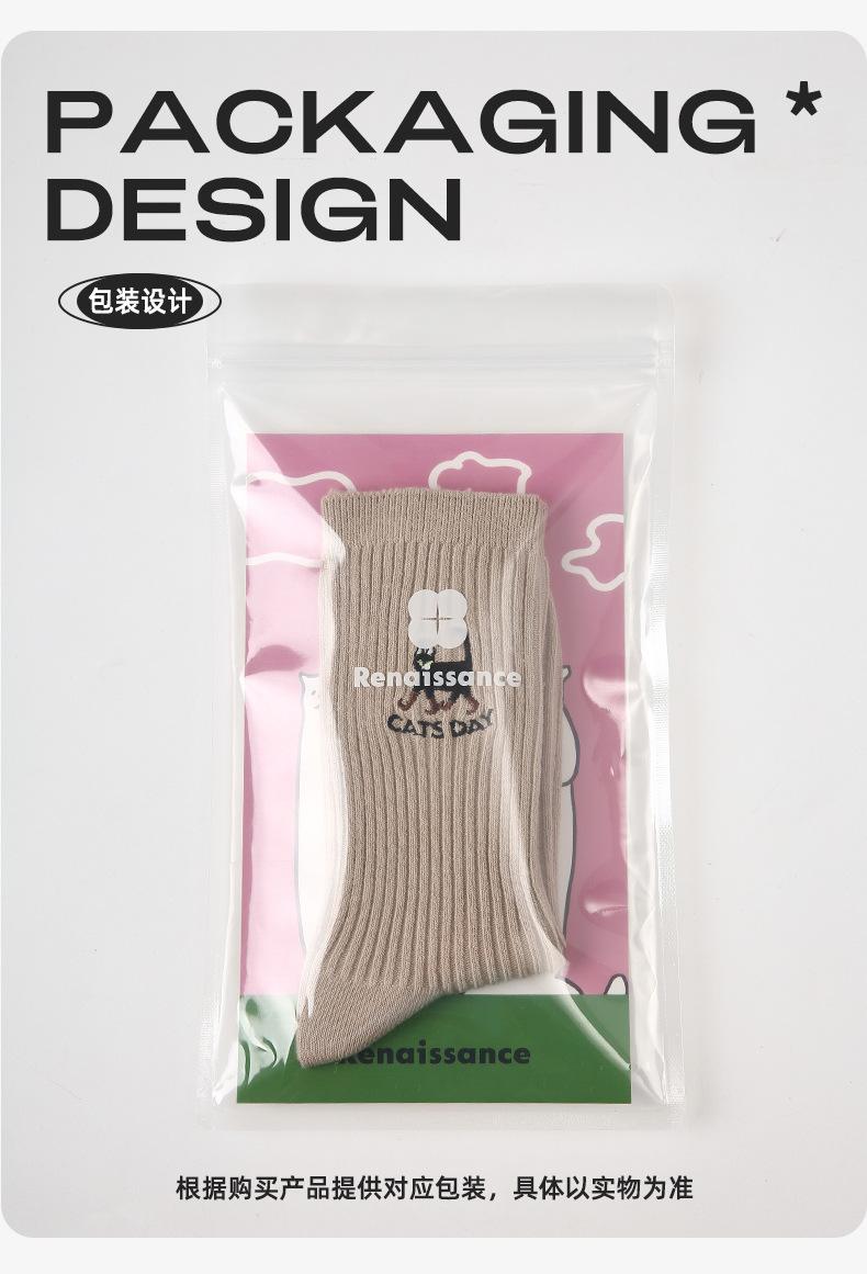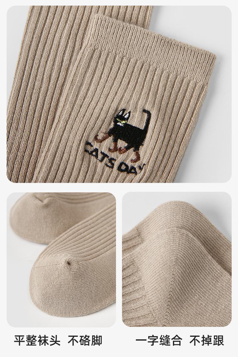 Calcetines Renacentistas para Mujer Color Sólido Bordado de Panda Estilo Academia Primavera y Otoño Delgados Transpirables de Media Caña para Estudiantes