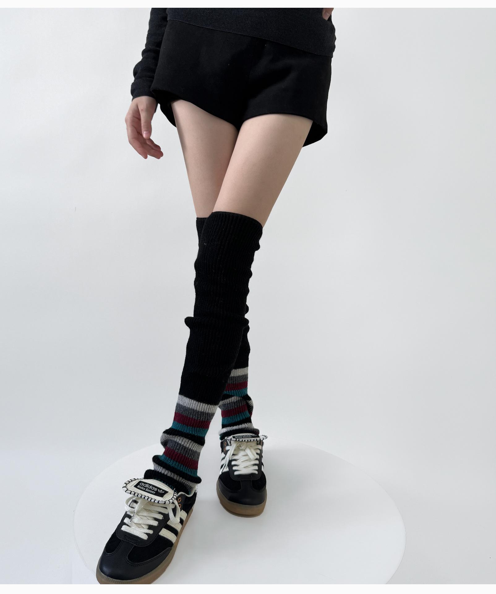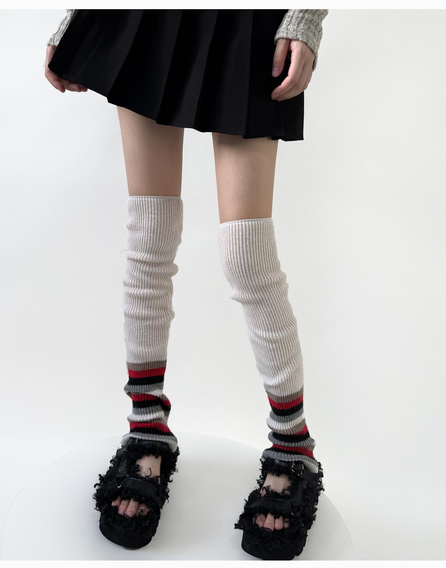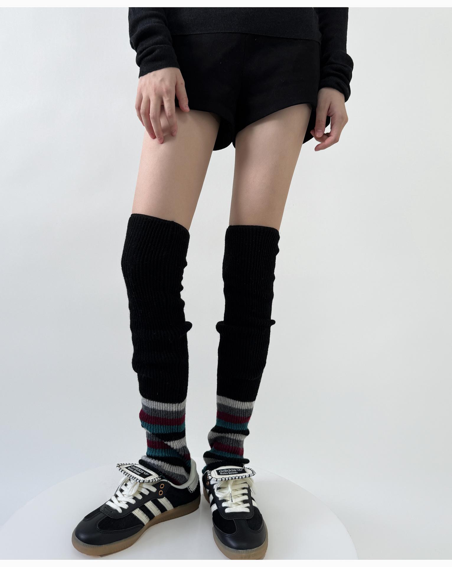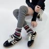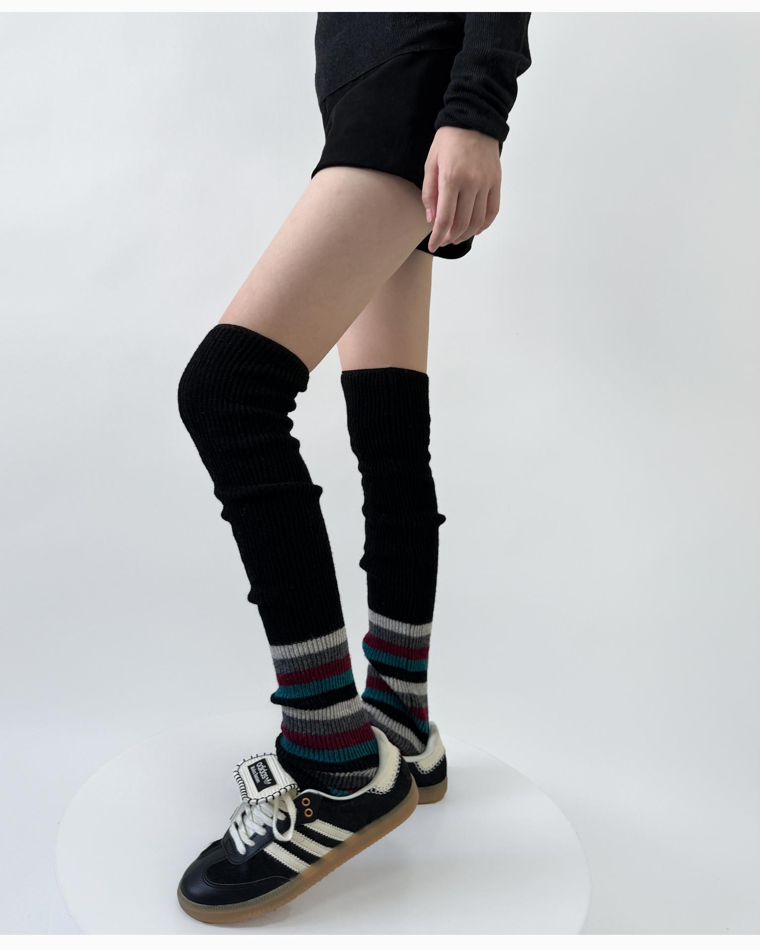 Calcetines de punto apilados, cálidos, de tiro alto, con costuras de rayas de colores japoneses, para otoño e invierno, por encima de la rodilla, para mujer