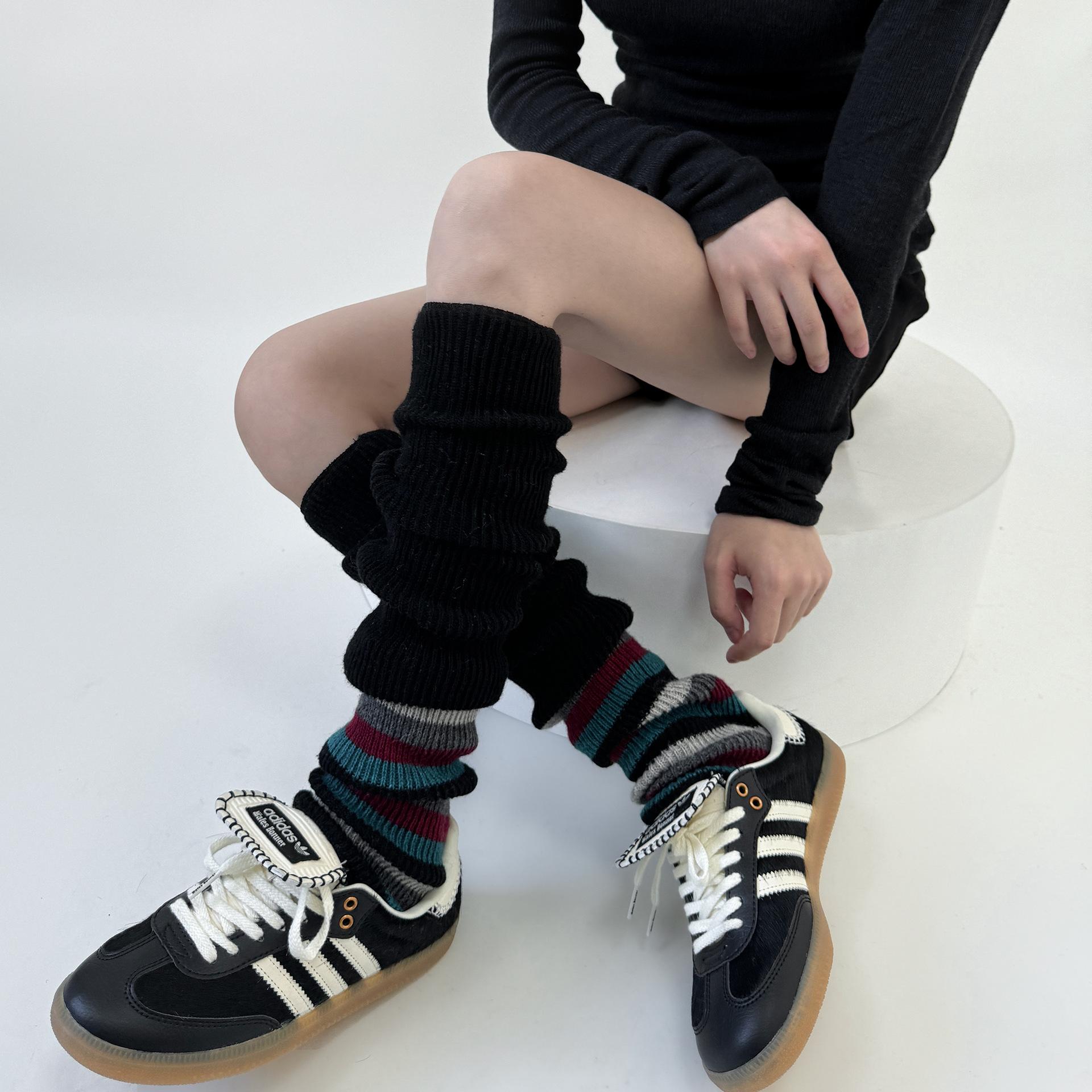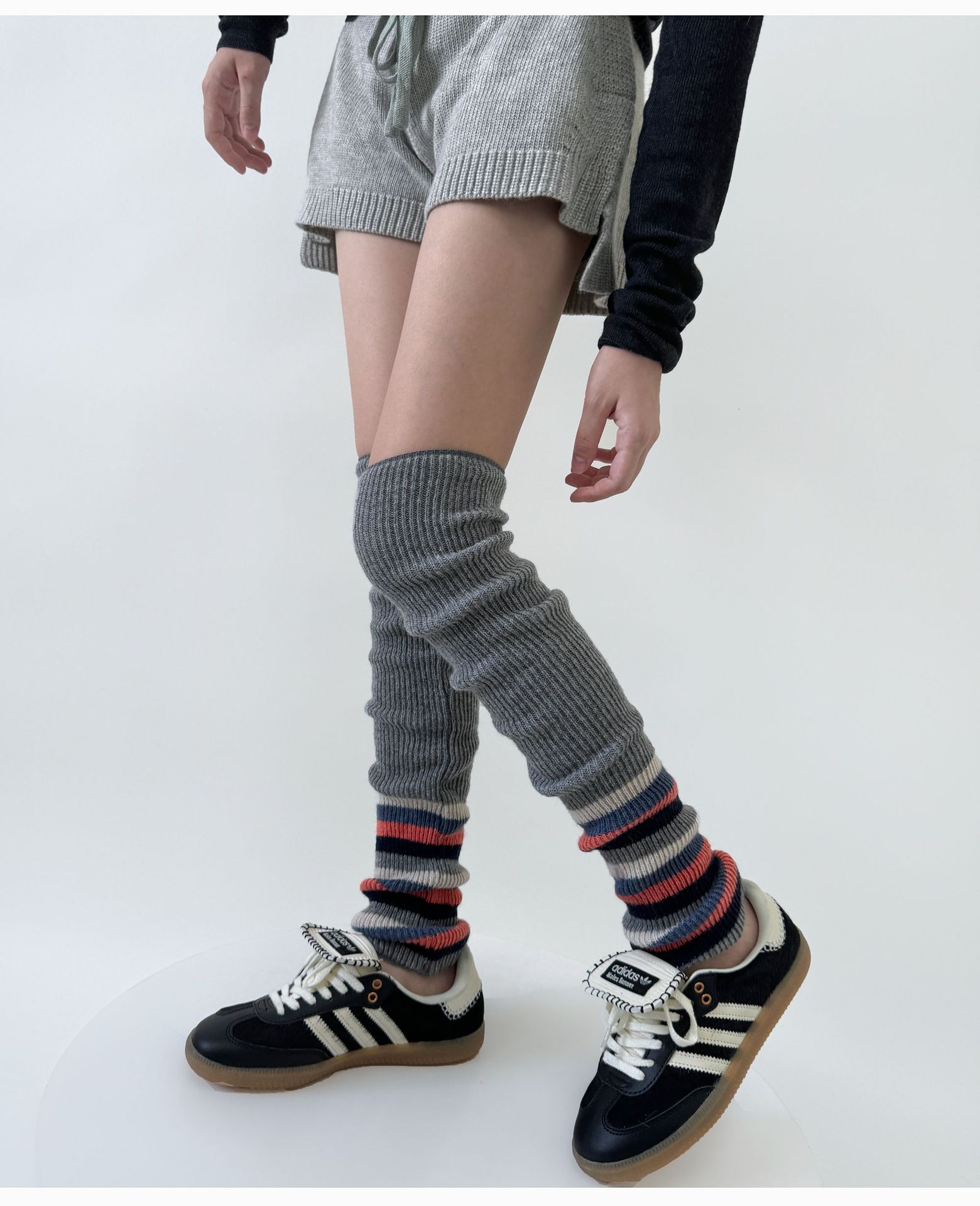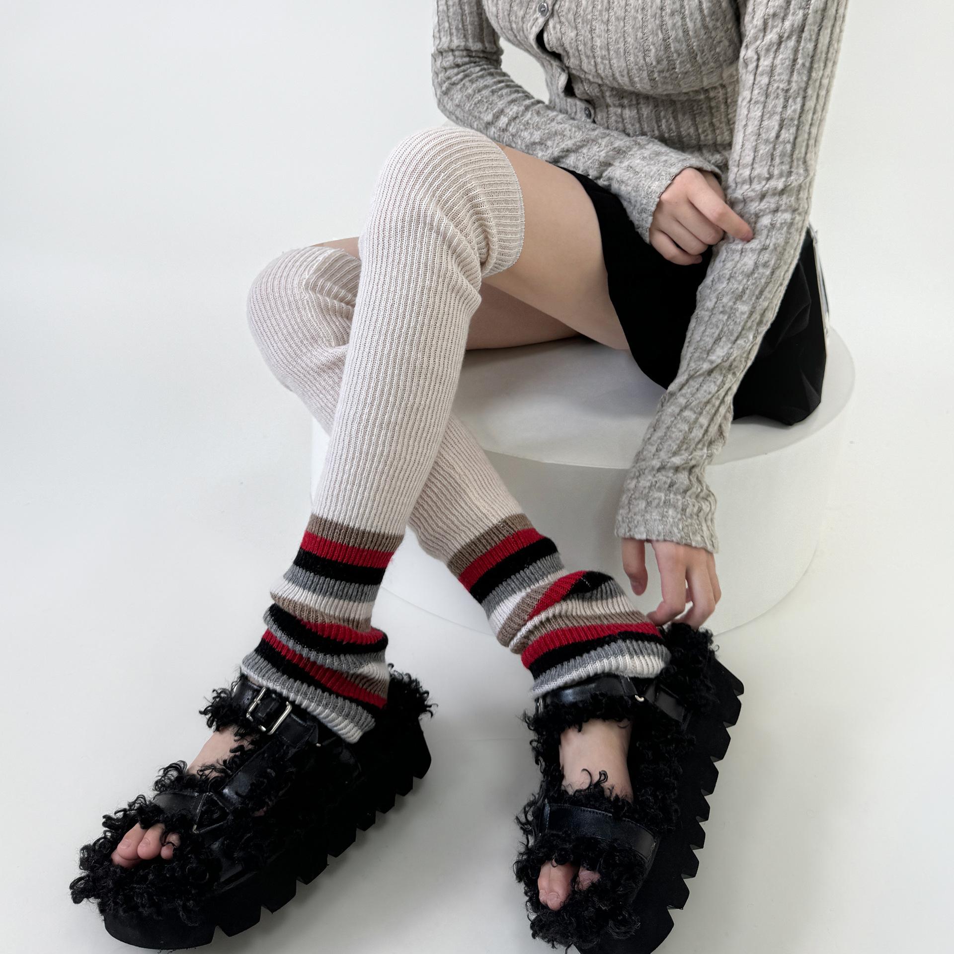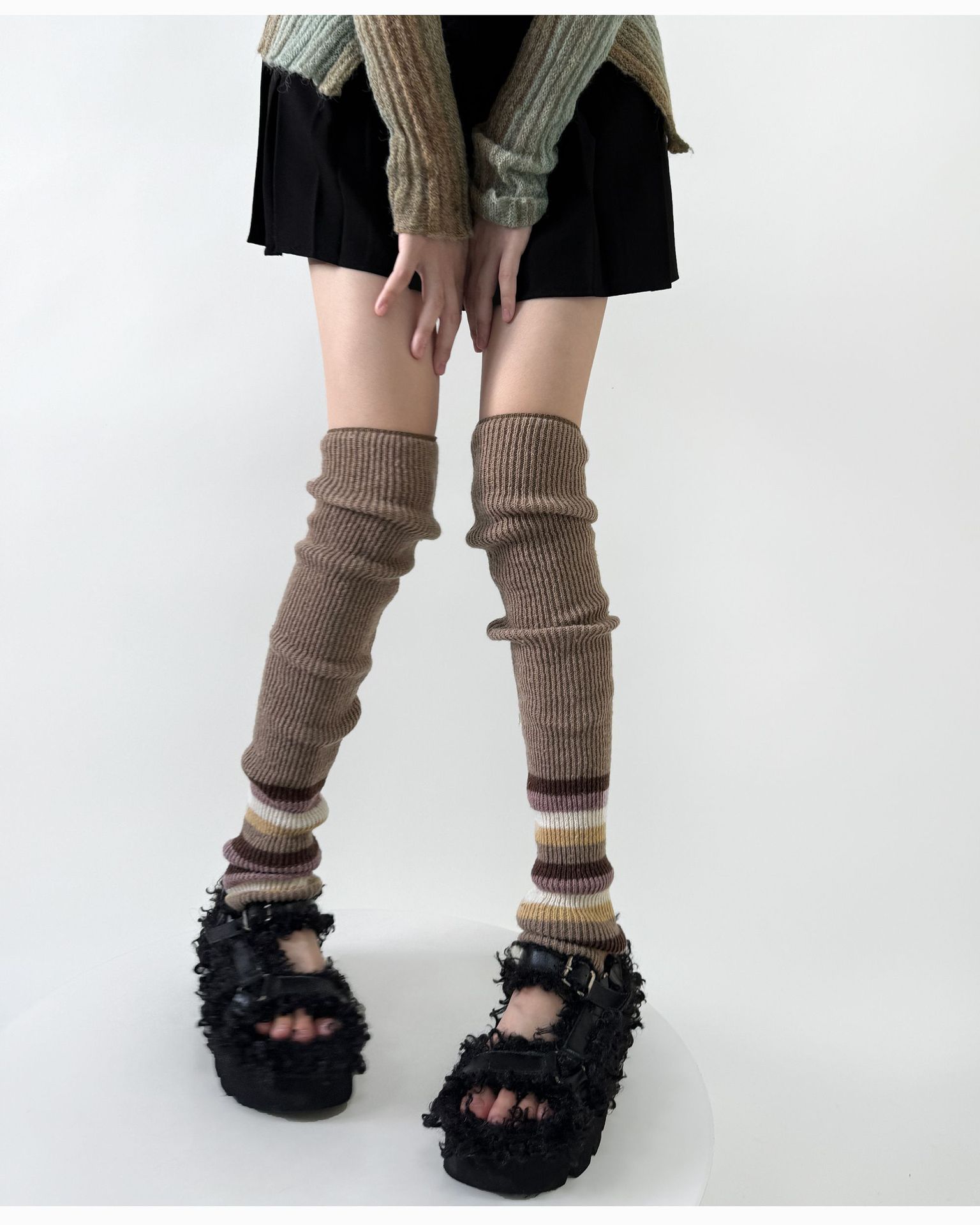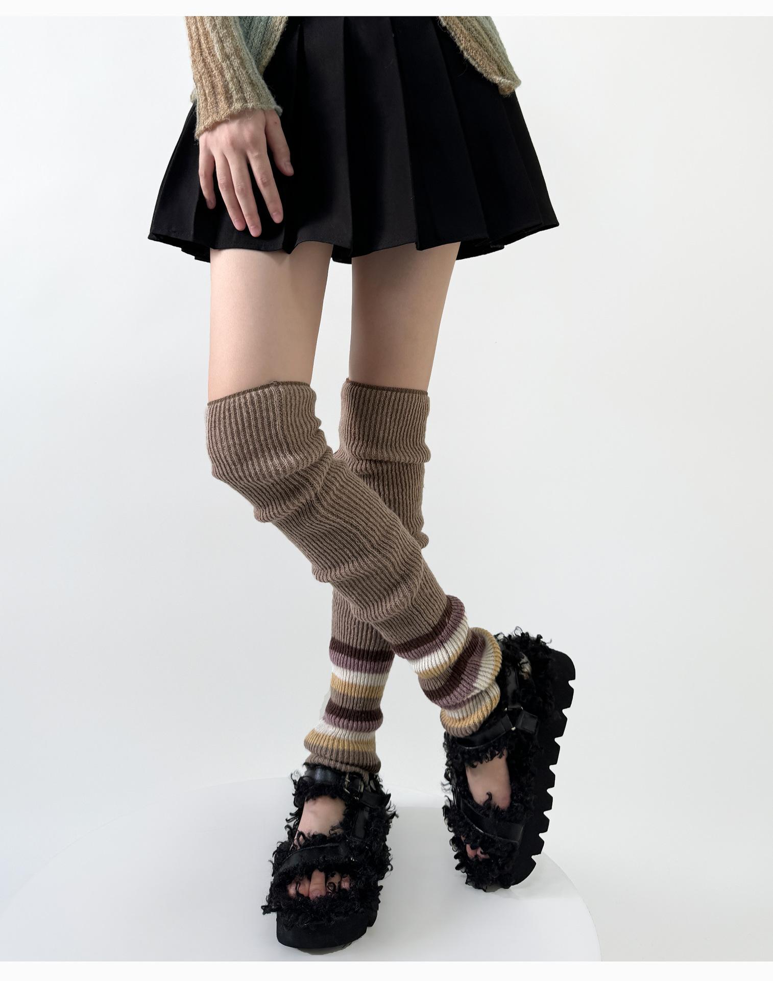Calcetines de punto apilados, cálidos, de tiro alto, con costuras de rayas de colores japoneses, para otoño e invierno, por encima de la rodilla, para mujer