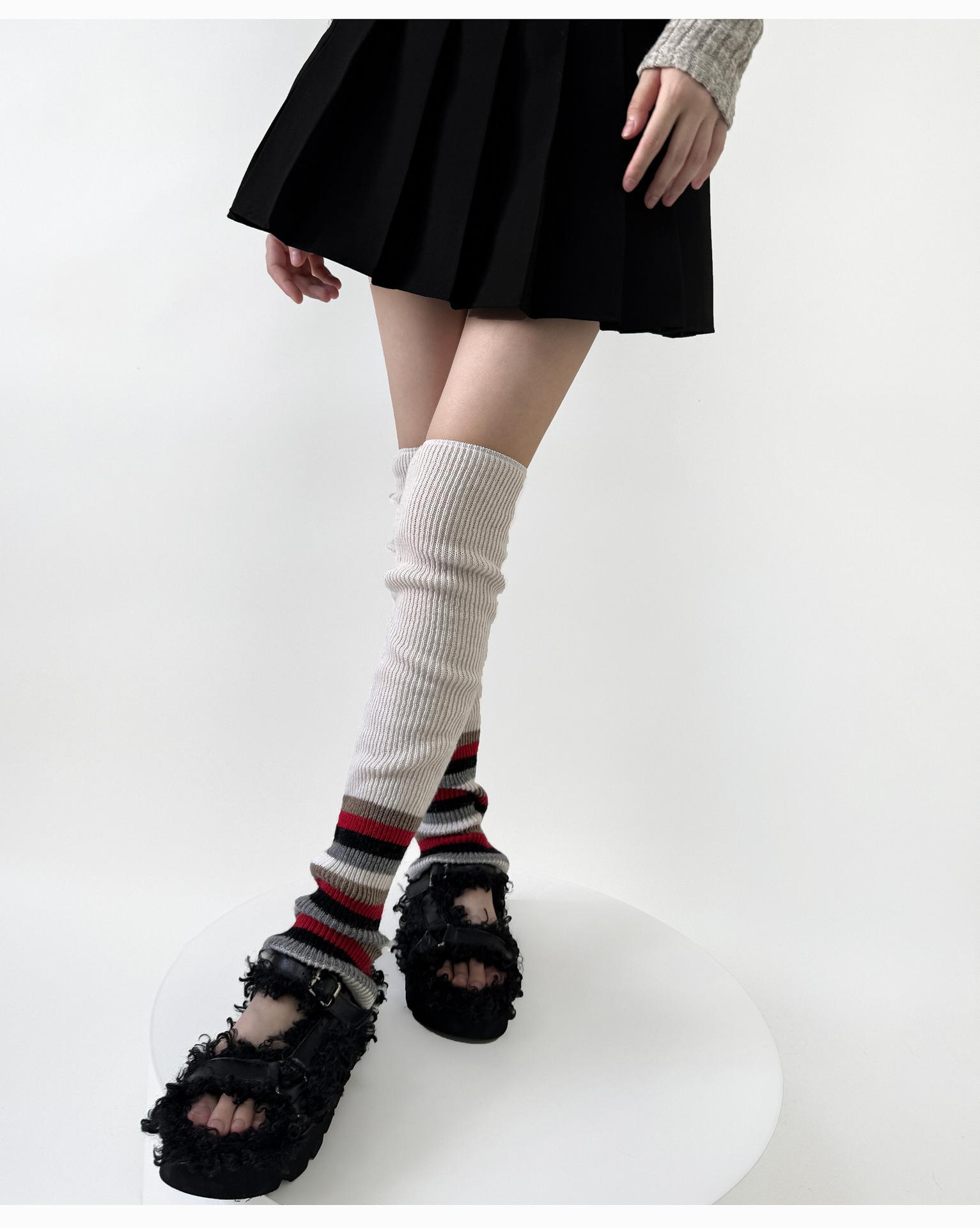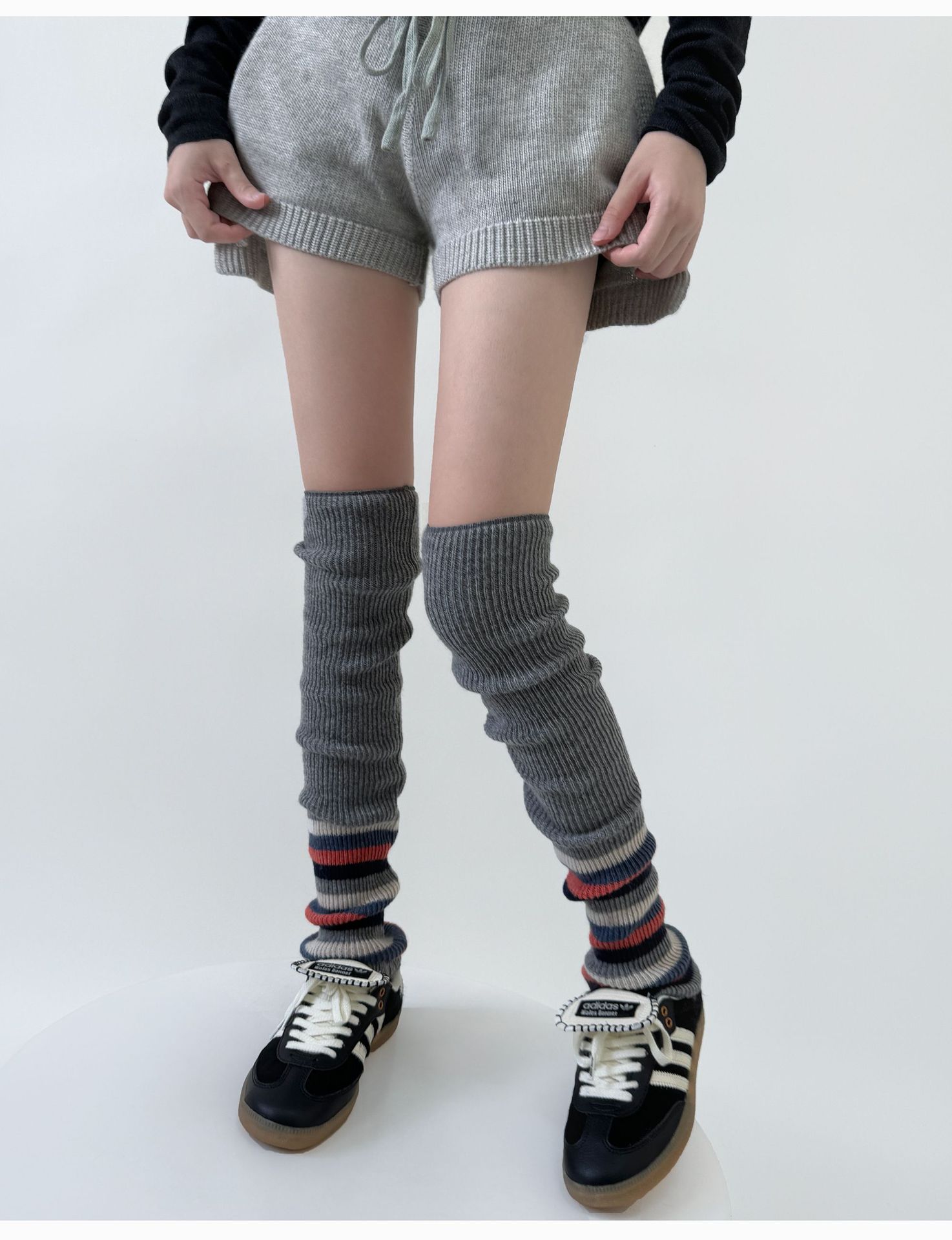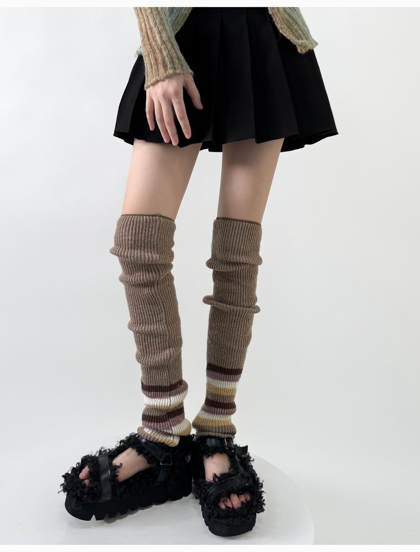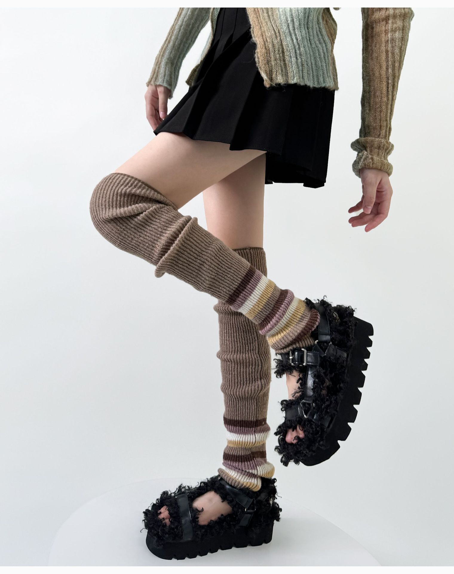 Calcetines de punto apilados, cálidos, de tiro alto, con costuras de rayas de colores japoneses, para otoño e invierno, por encima de la rodilla, para mujer