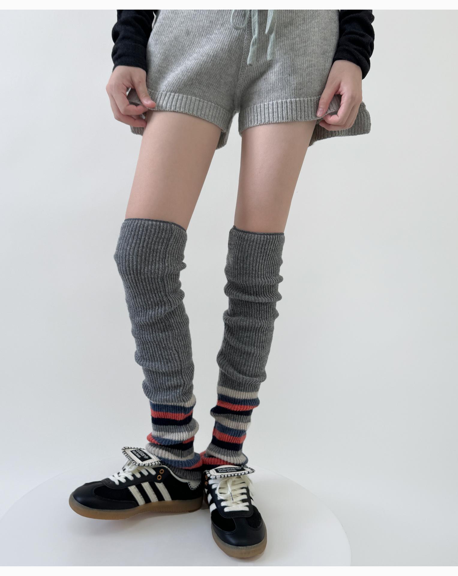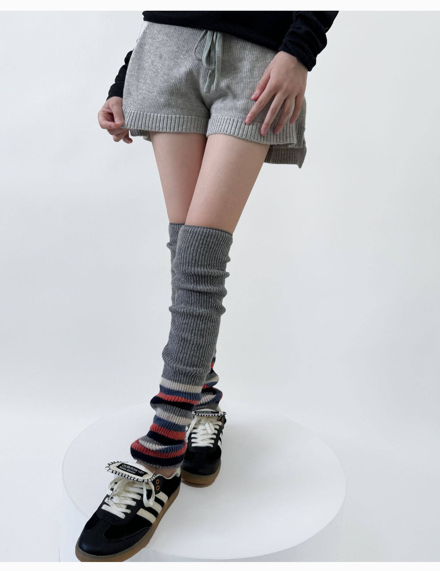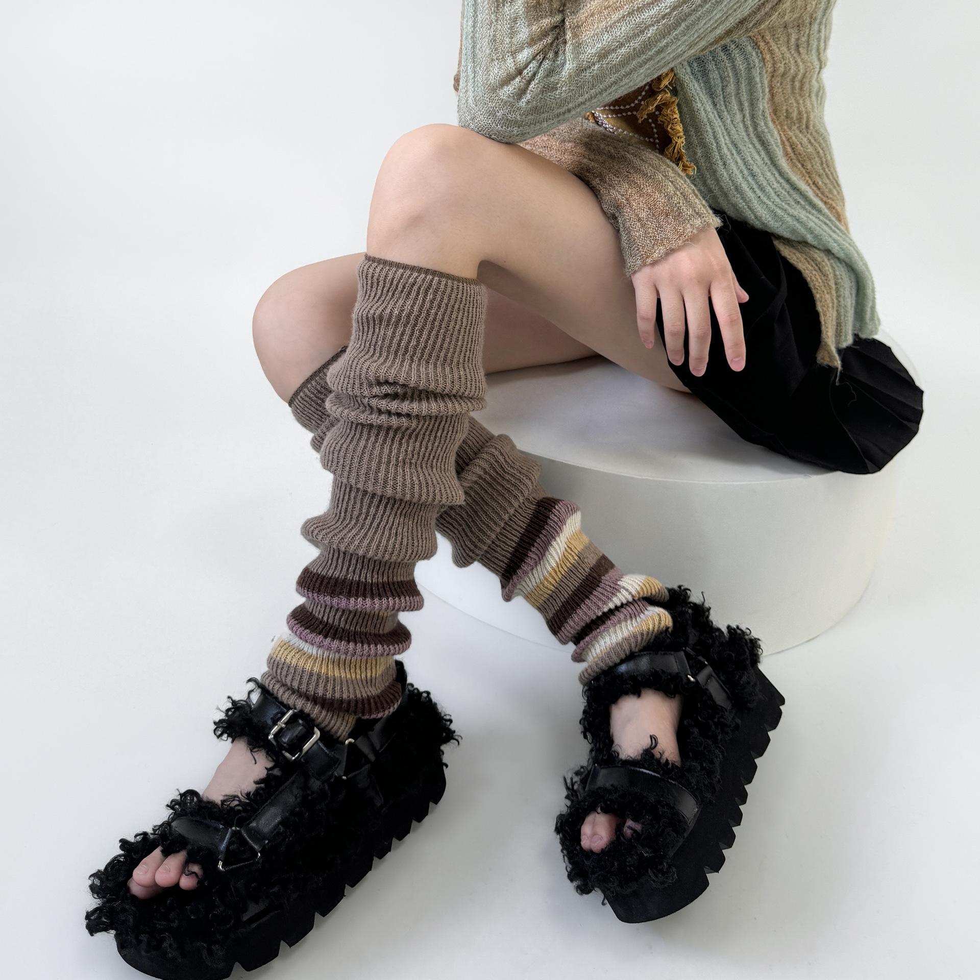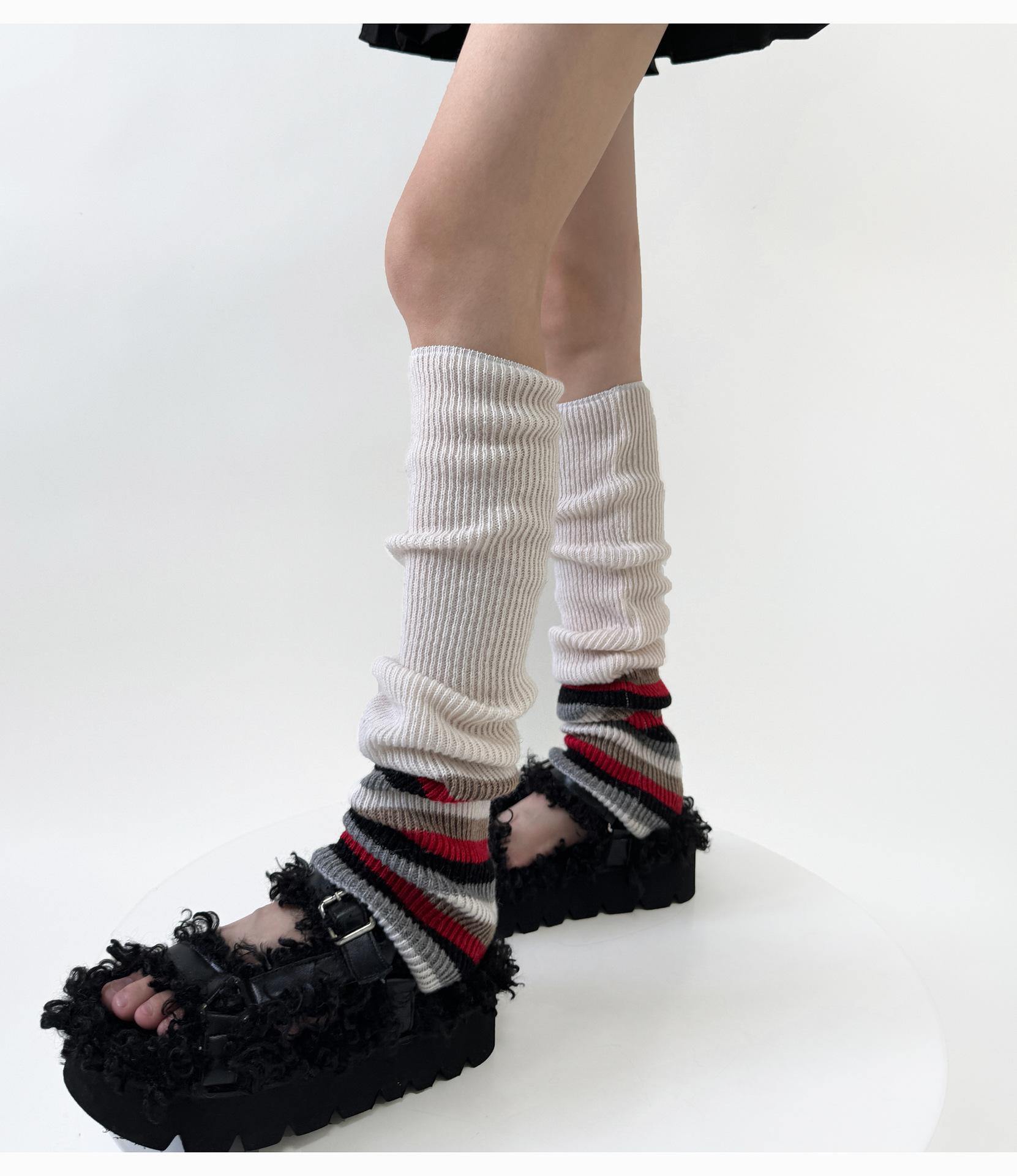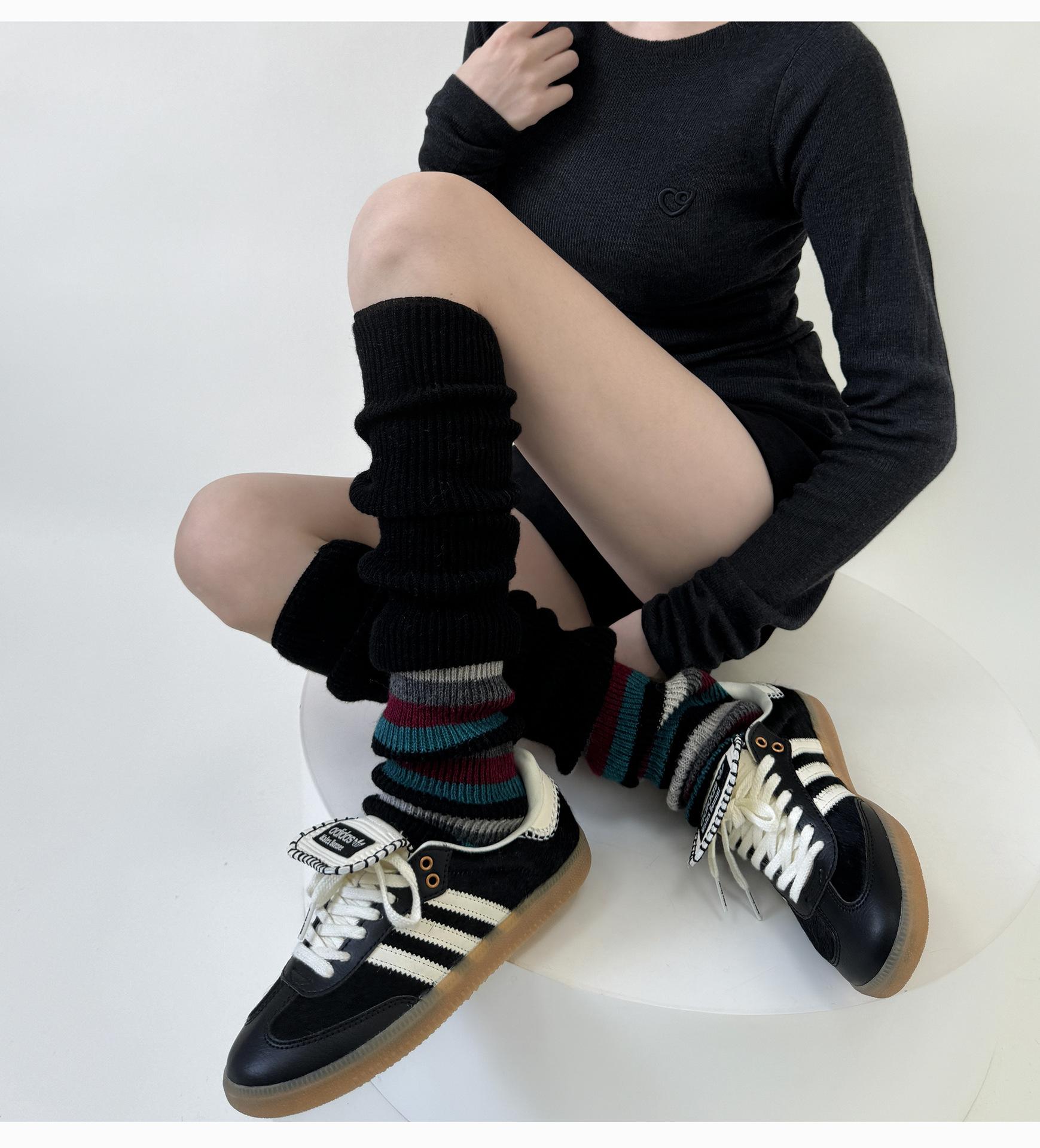 Calcetines de punto apilados, cálidos, de tiro alto, con costuras de rayas de colores japoneses, para otoño e invierno, por encima de la rodilla, para mujer