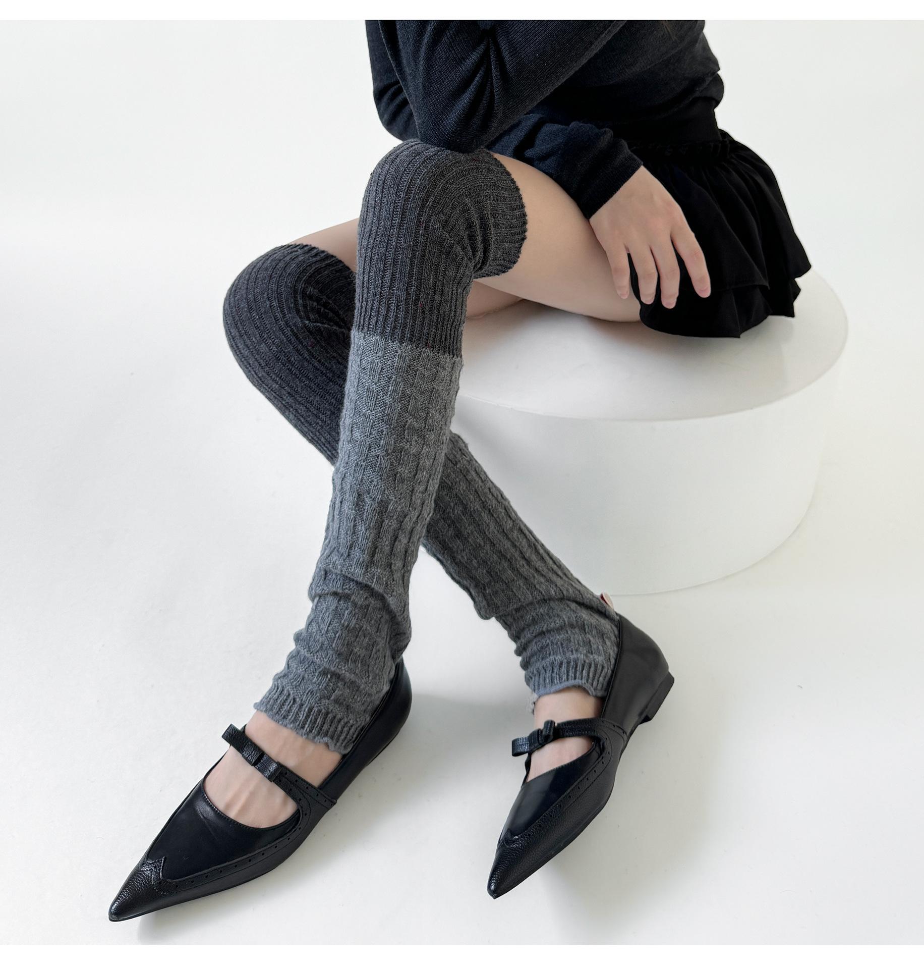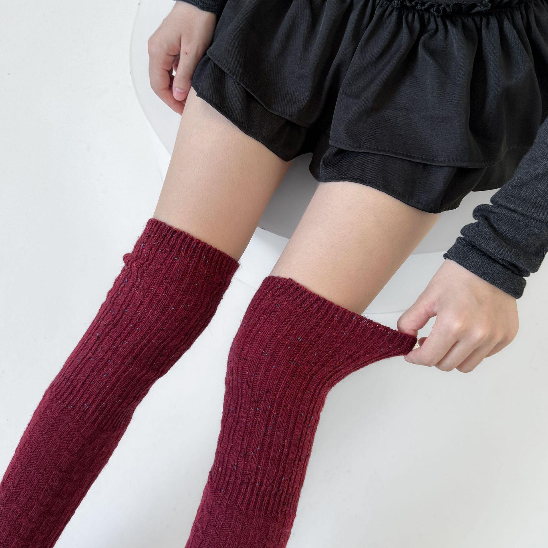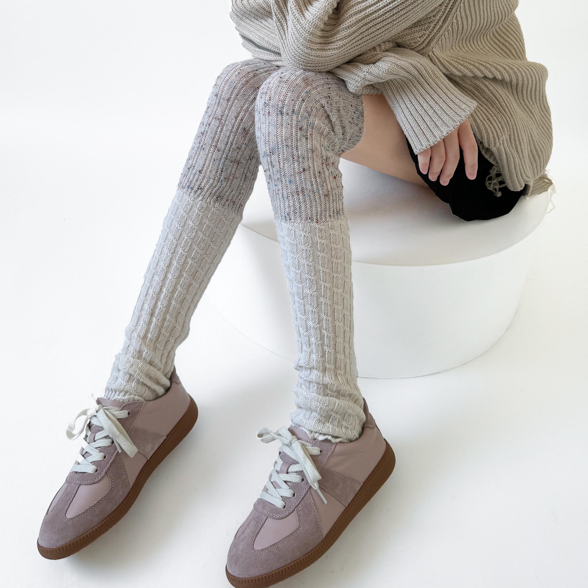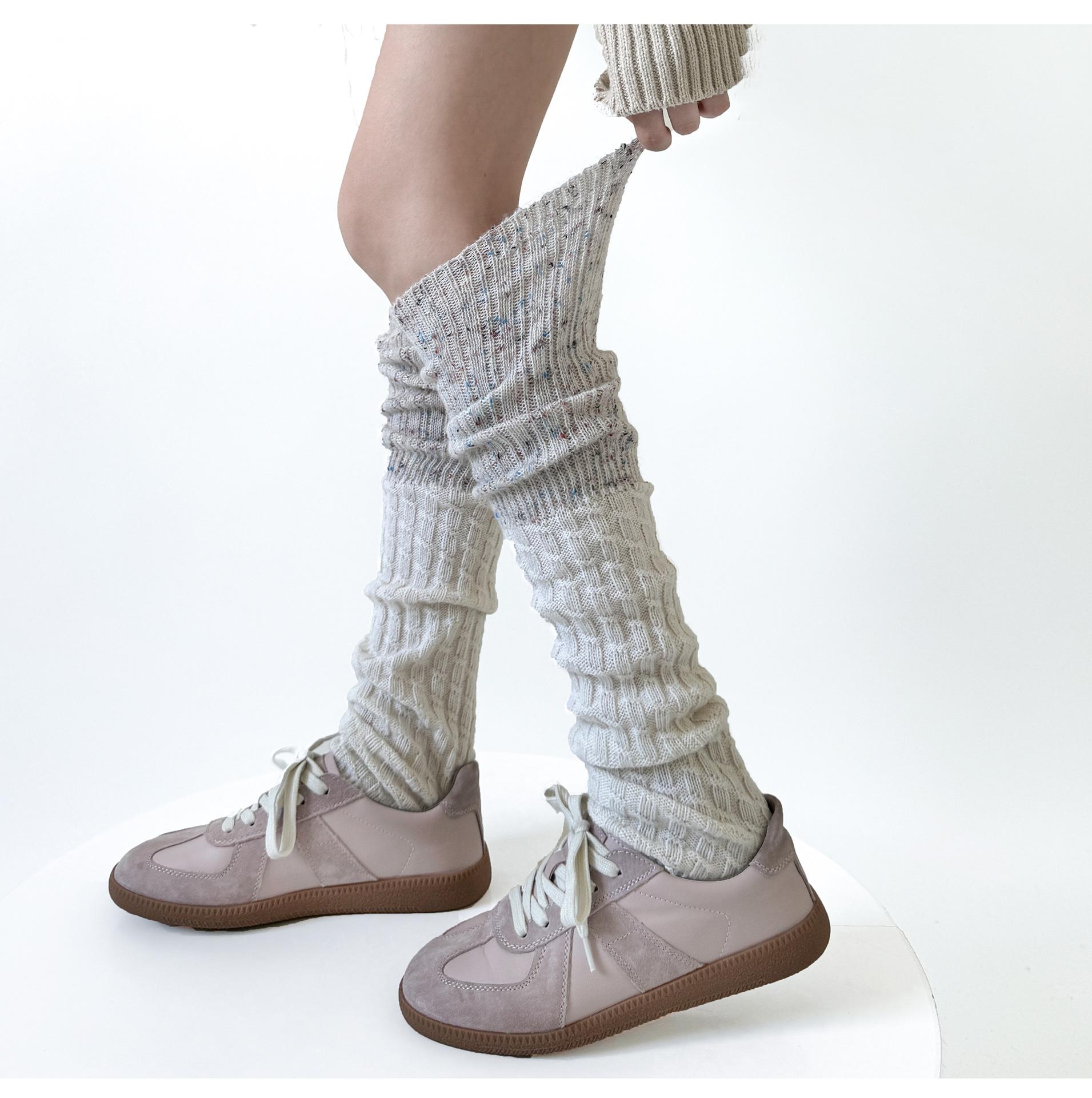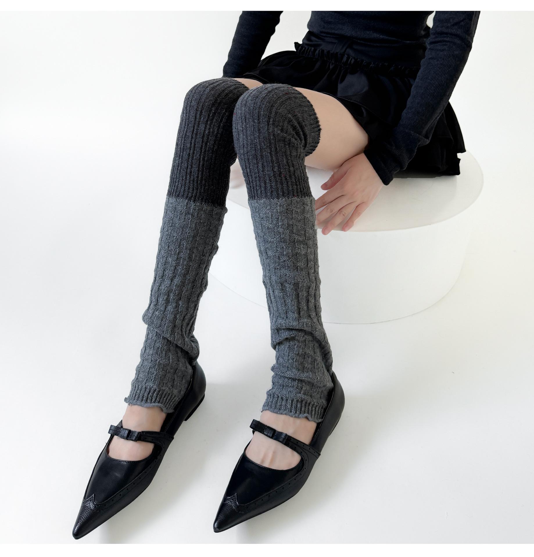 Otoño e Invierno Calcetines Distintivos de Color con Costuras de Punto de Lunares Set Trenzado Raya Vertical Cálido Rodillera Pierna Set Gris Rizo Retro Botas Set para Mujer