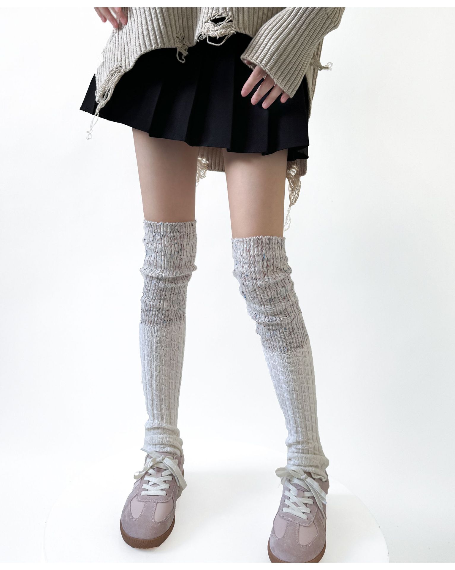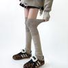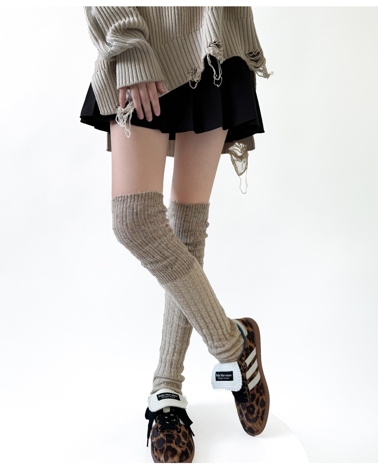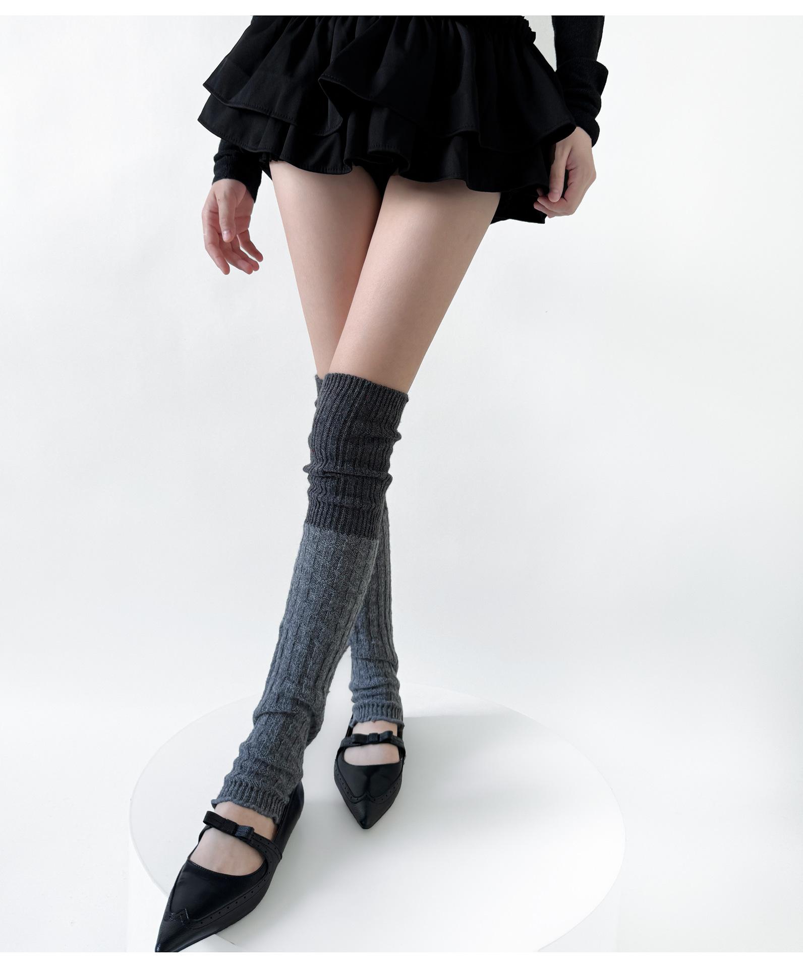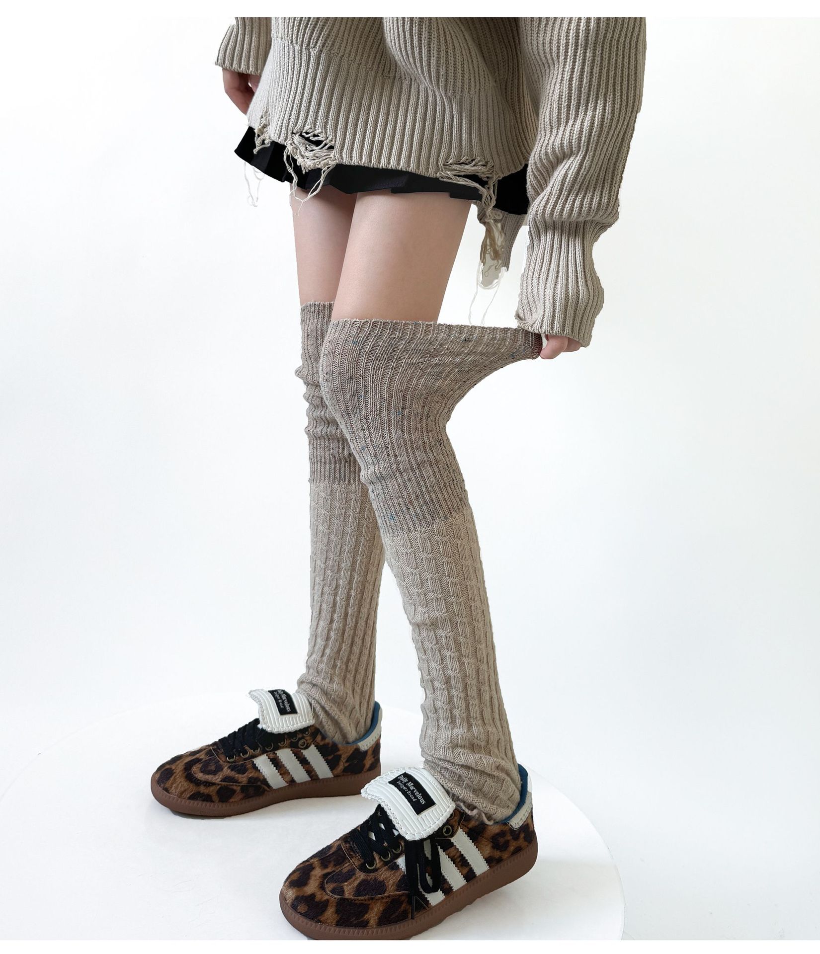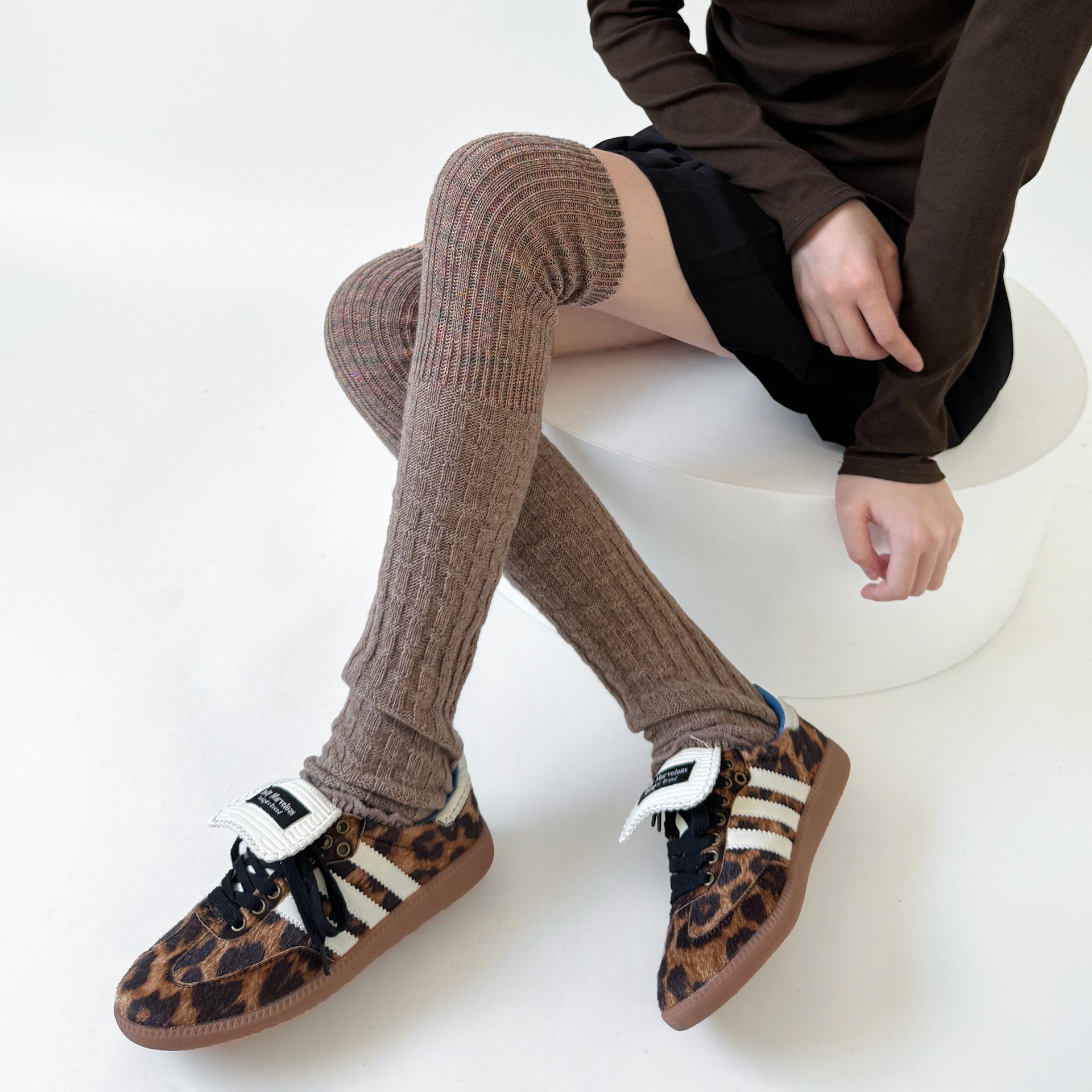 Otoño e Invierno Calcetines Distintivos de Color con Costuras de Punto de Lunares Set Trenzado Raya Vertical Cálido Rodillera Pierna Set Gris Rizo Retro Botas Set para Mujer