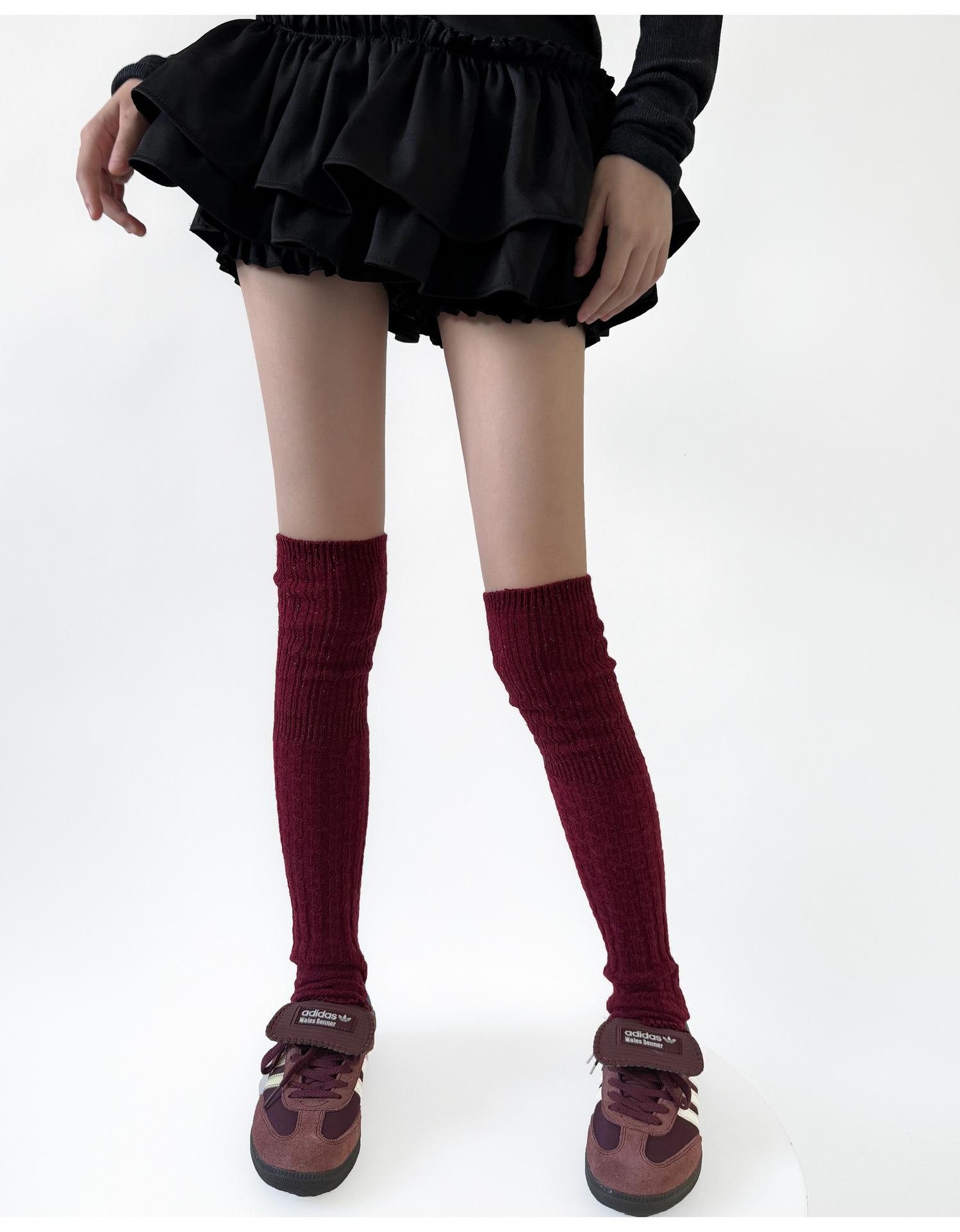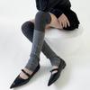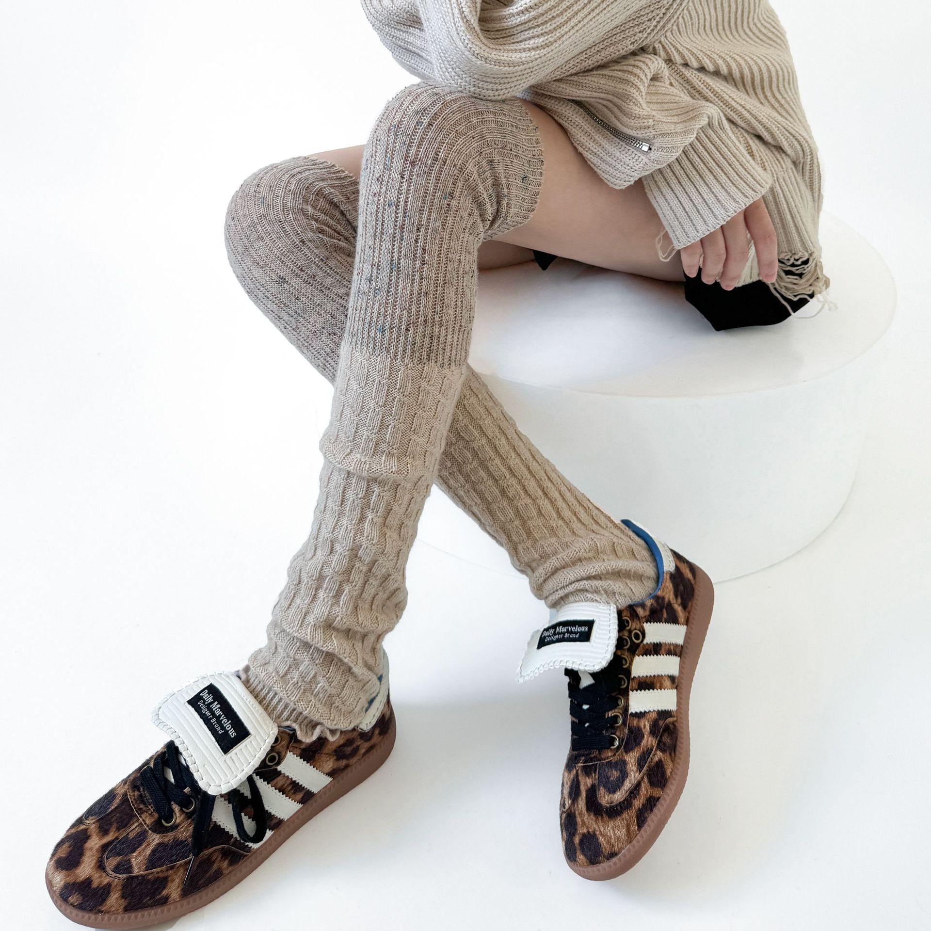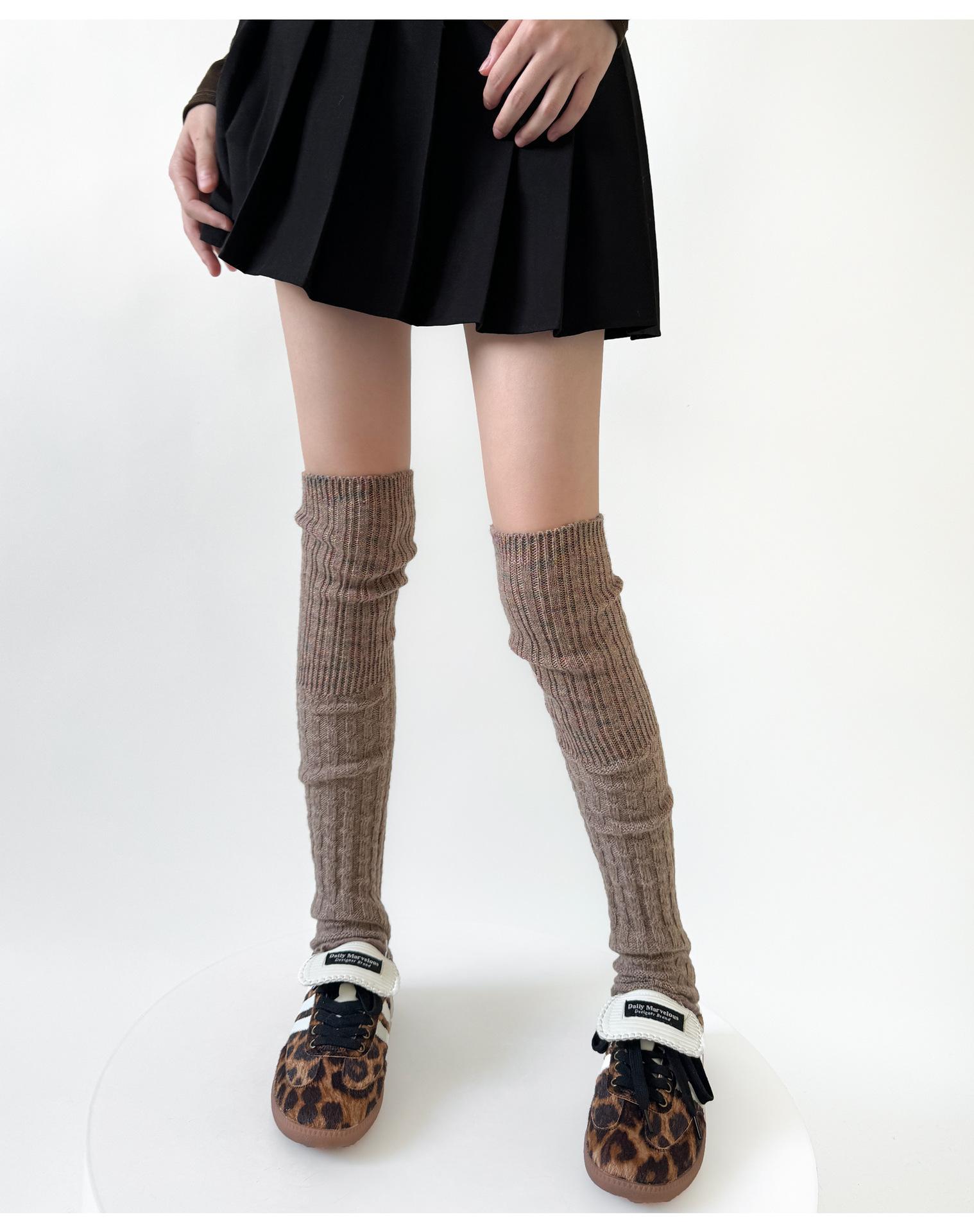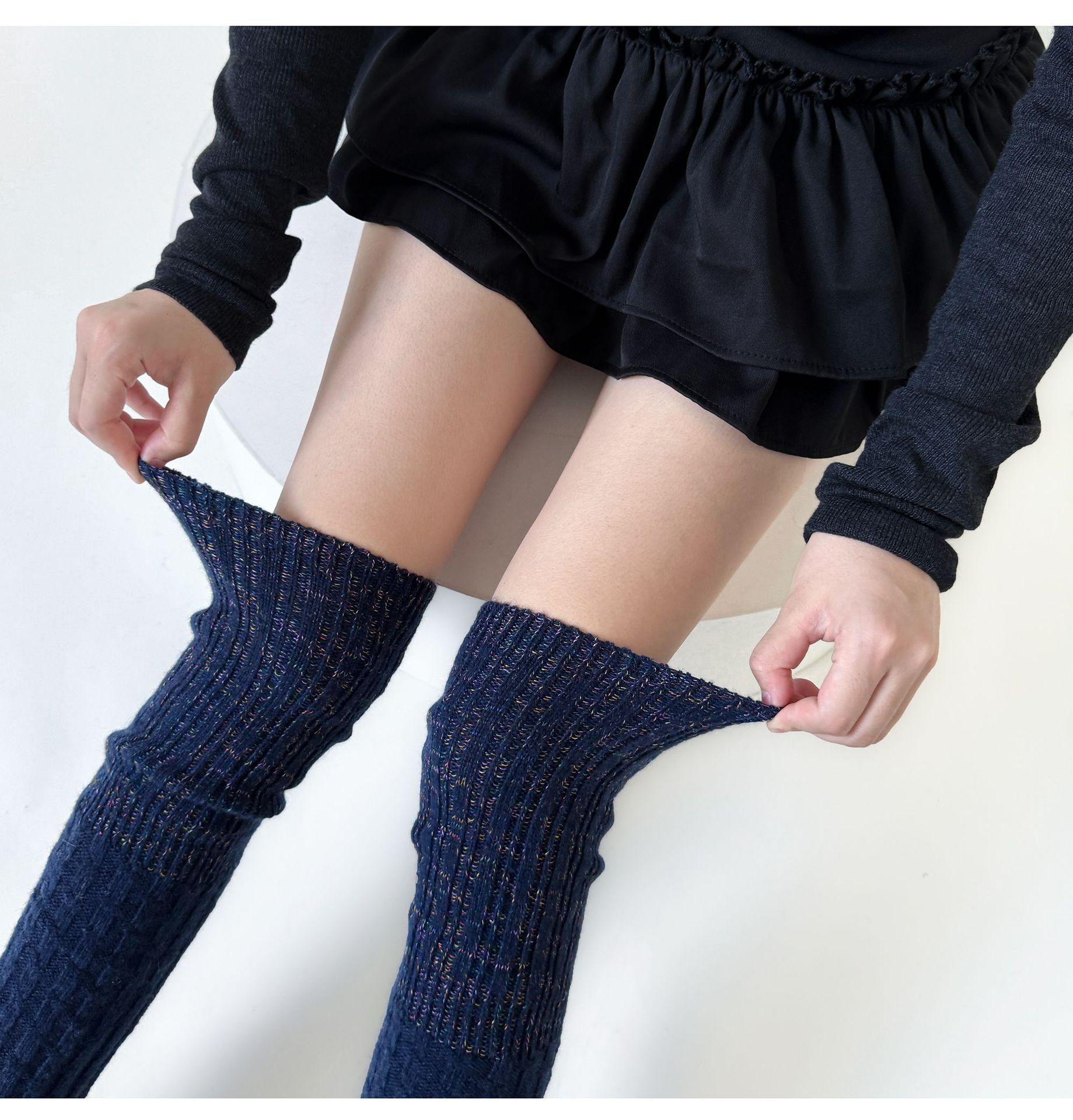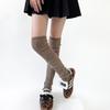 Otoño e Invierno Calcetines Distintivos de Color con Costuras de Punto de Lunares Set Trenzado Raya Vertical Cálido Rodillera Pierna Set Gris Rizo Retro Botas Set para Mujer