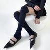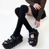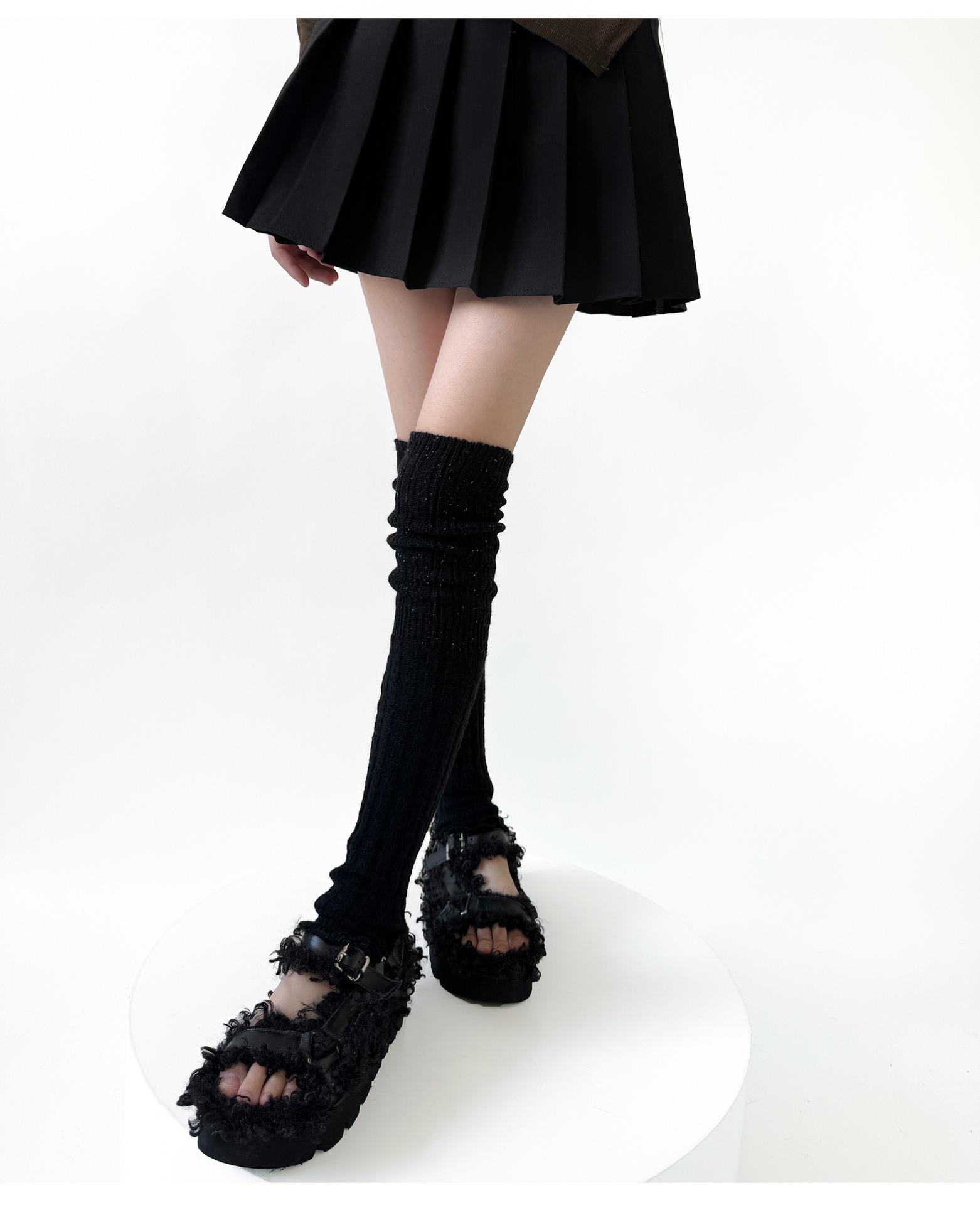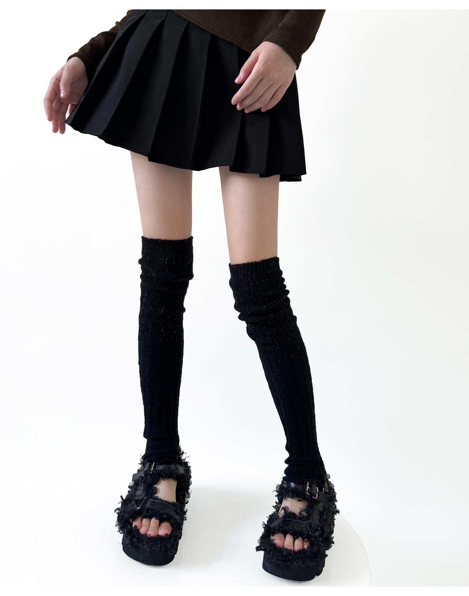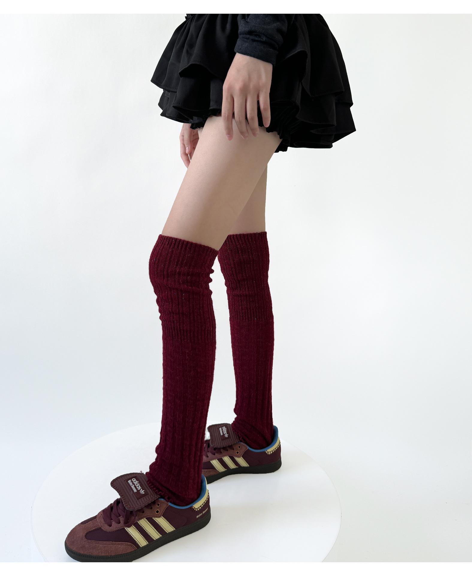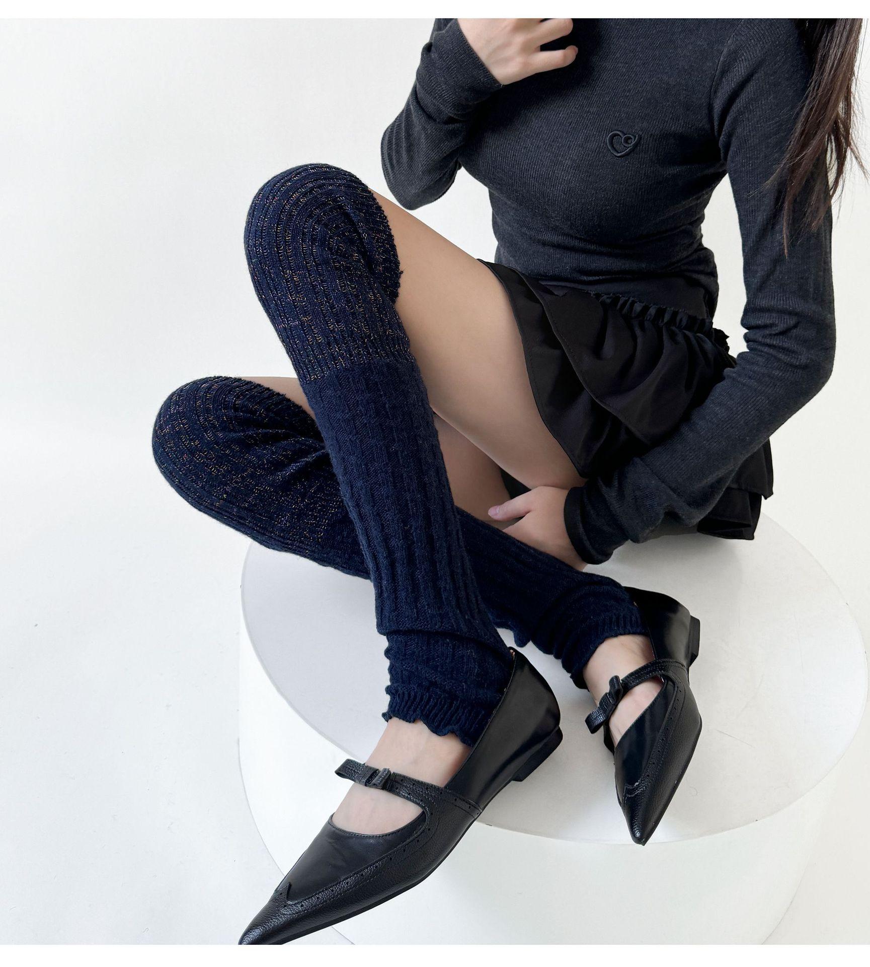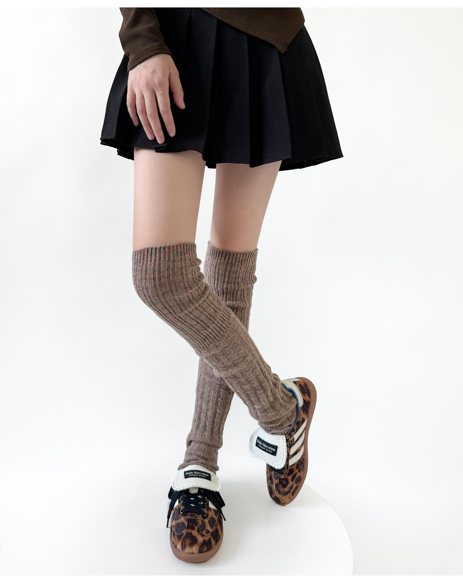 Otoño e Invierno Calcetines Distintivos de Color con Costuras de Punto de Lunares Set Trenzado Raya Vertical Cálido Rodillera Pierna Set Gris Rizo Retro Botas Set para Mujer