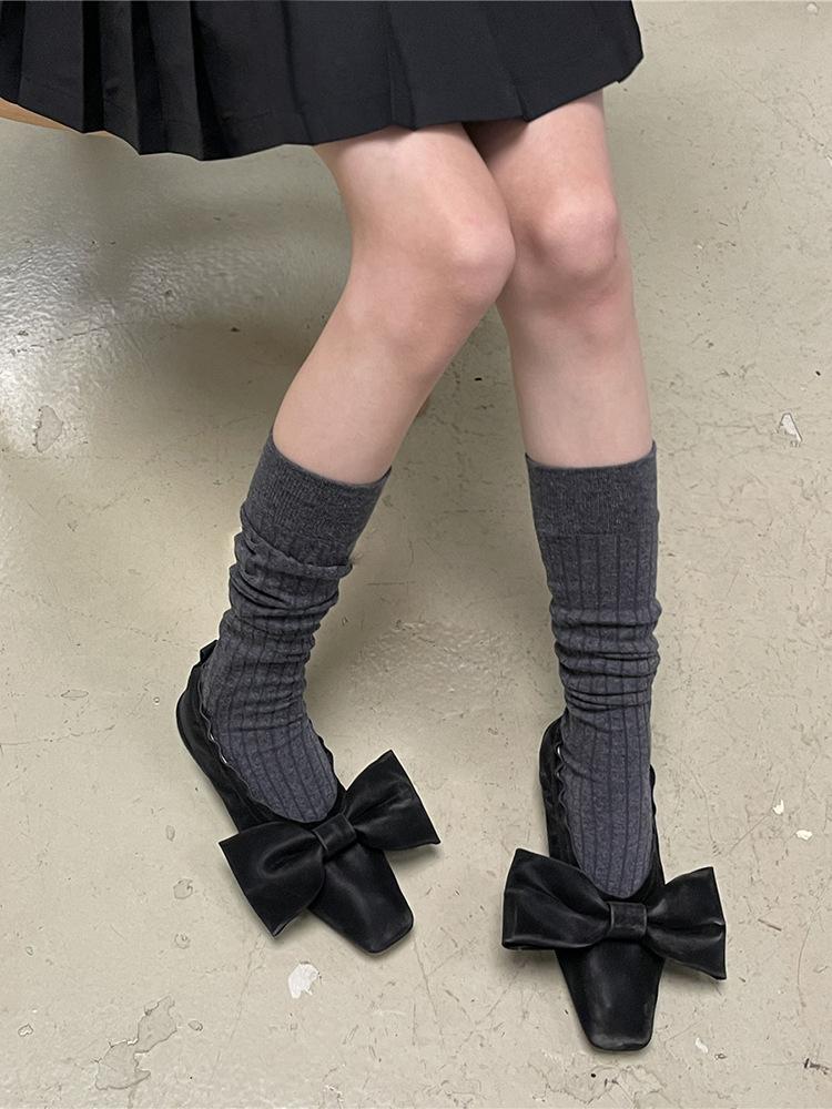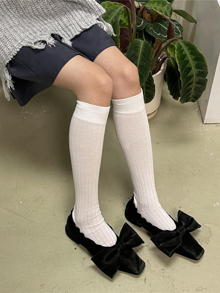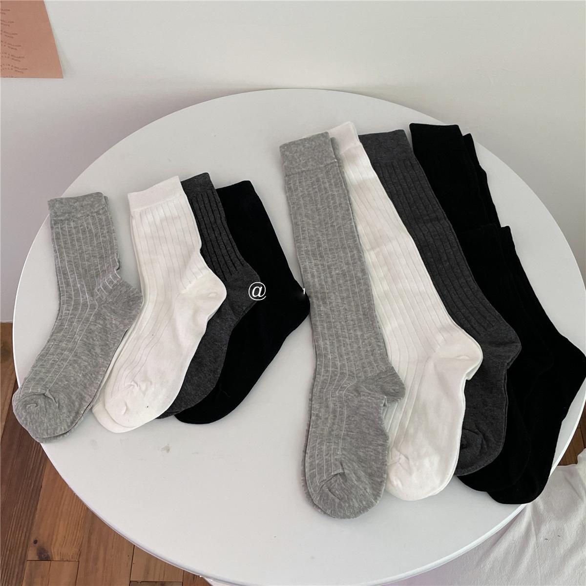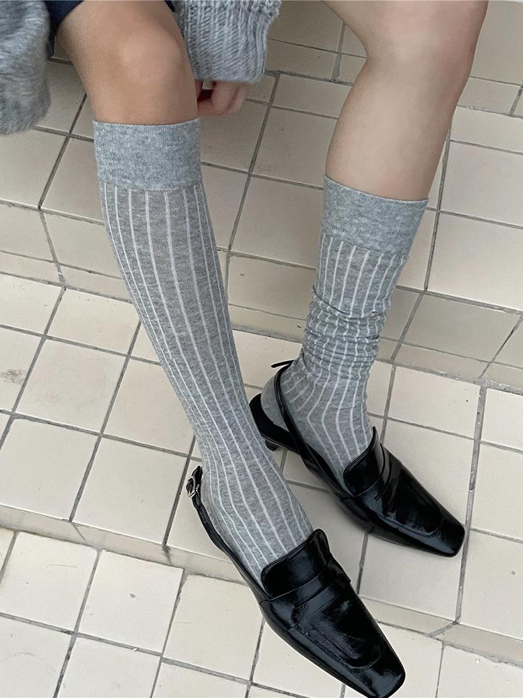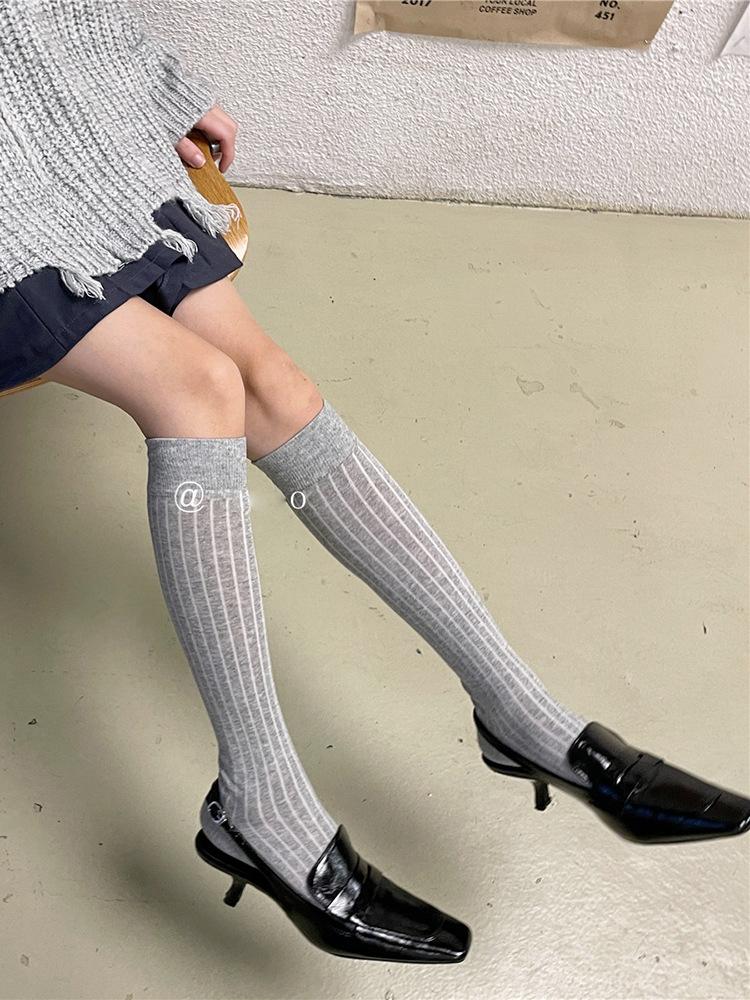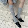 Calcetines finos de punto estilo japonés, sencillos, de longitud media, con rayas verticales, apilados en las piernas y hasta la rodilla, para primavera y verano, calcetines jk para mujer.