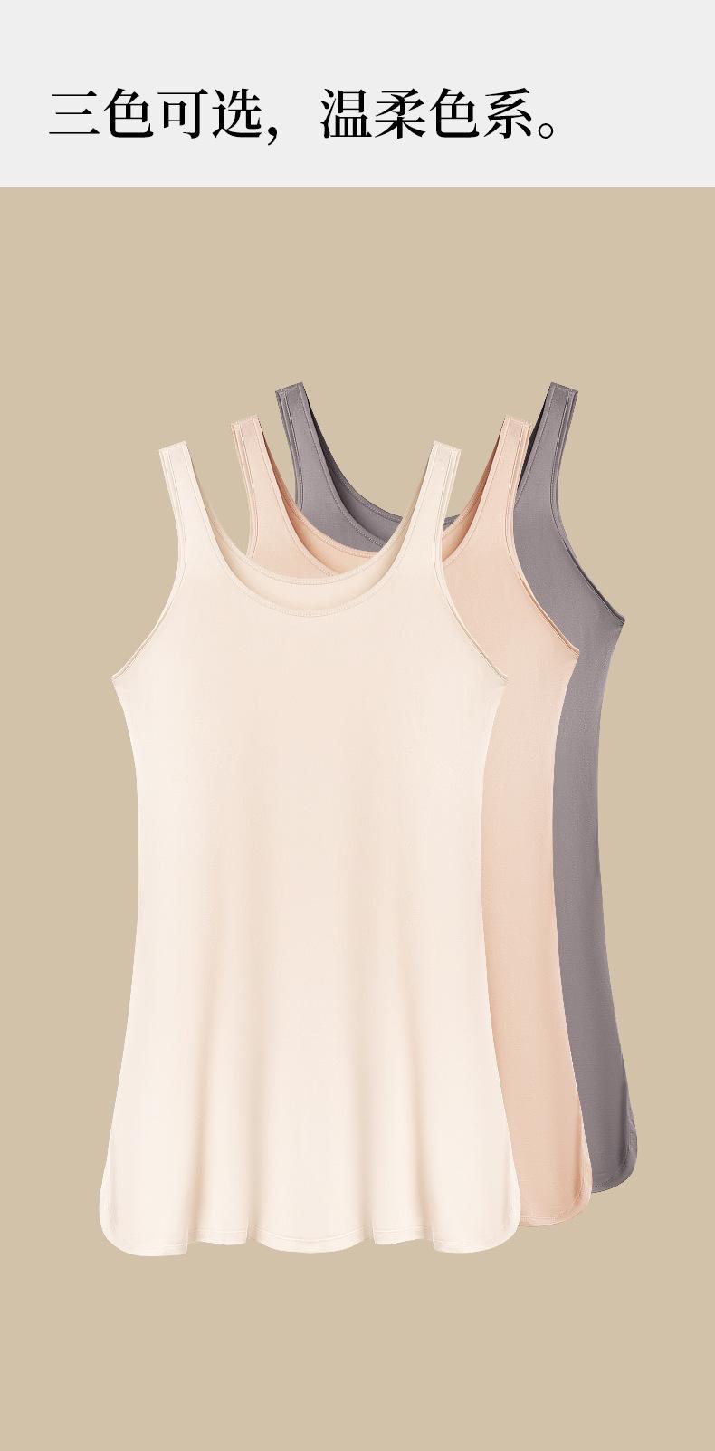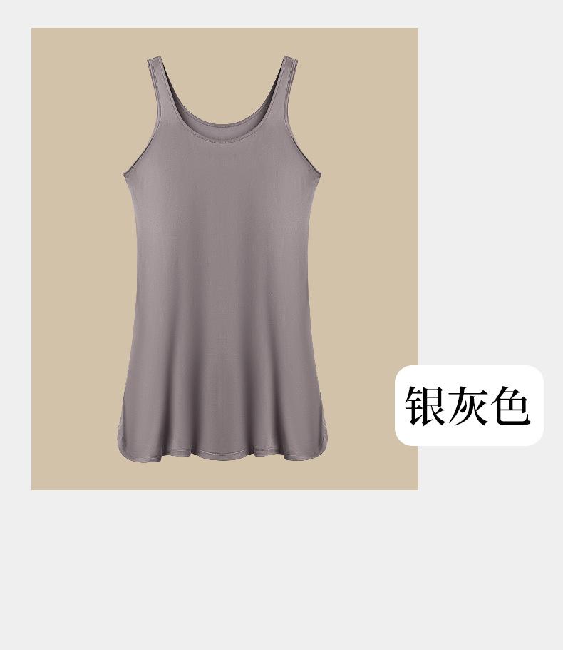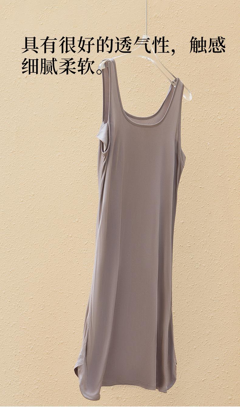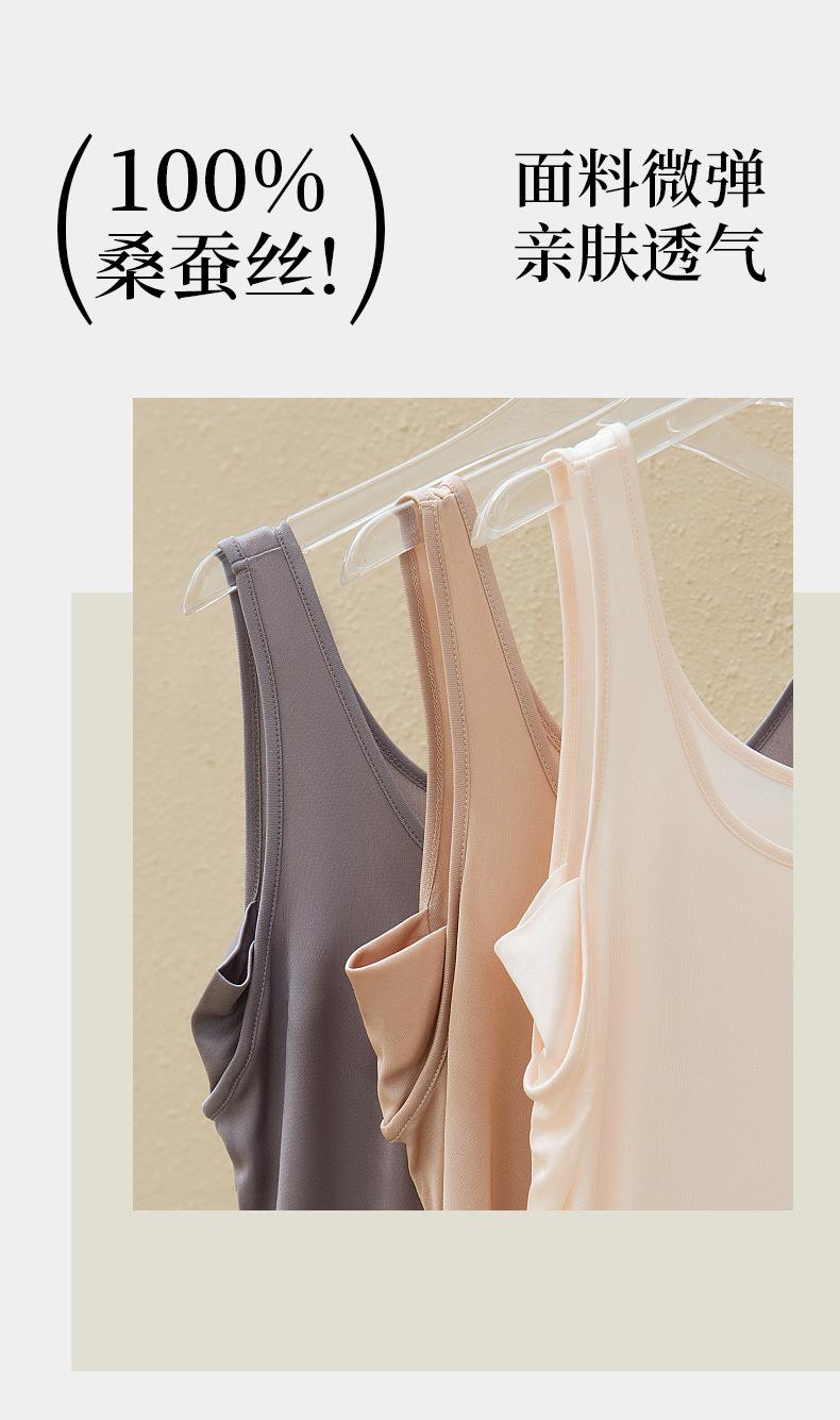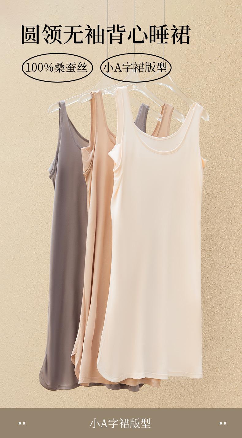 Camisón de seda de punto Tangge para primavera y verano, para mujer, cuello redondo, sin mangas, falda base de seda morera
