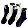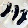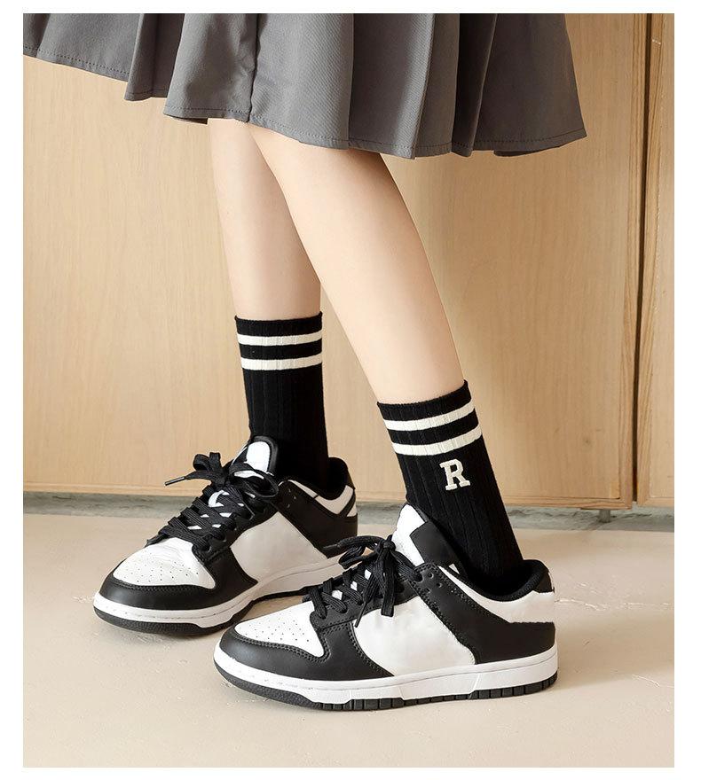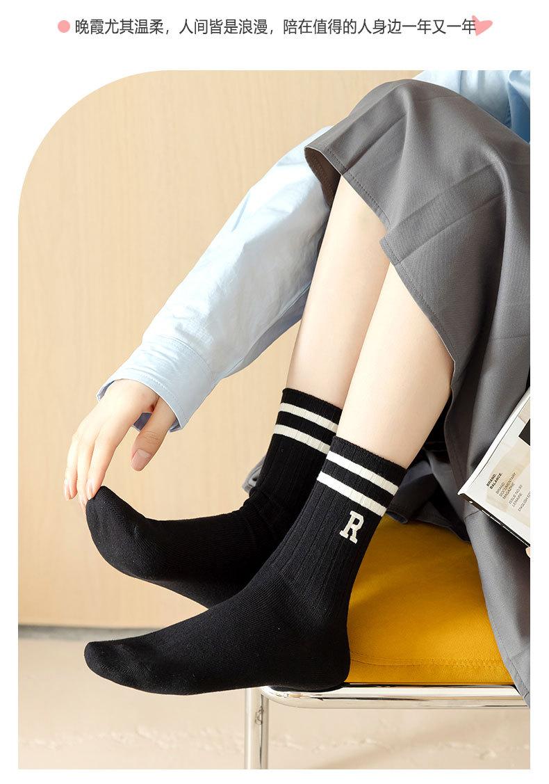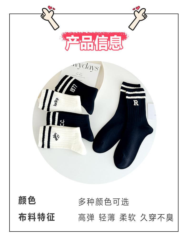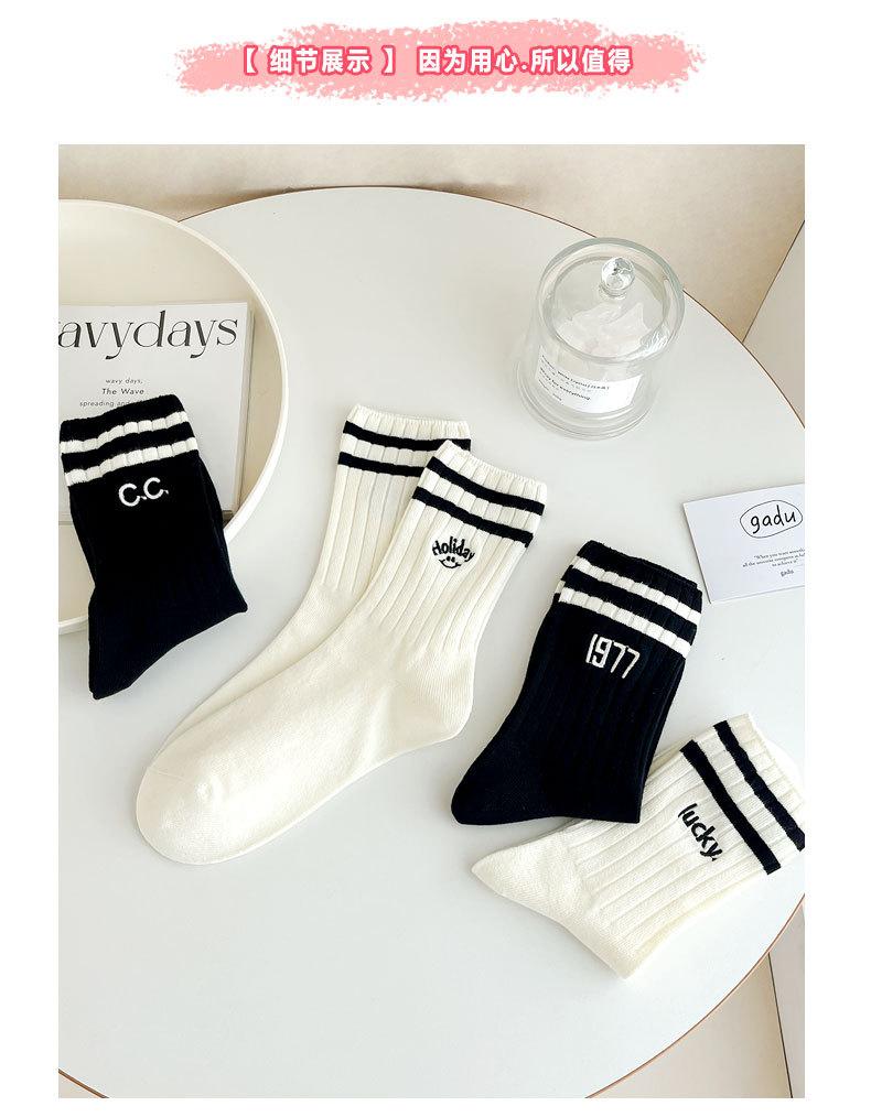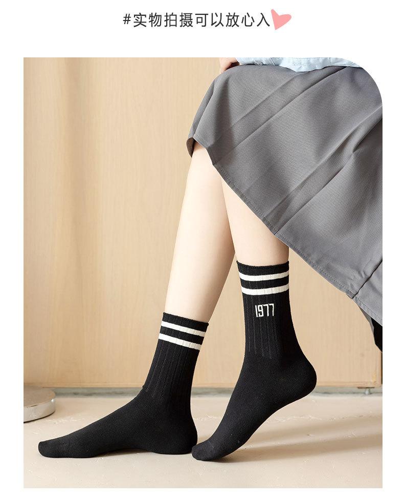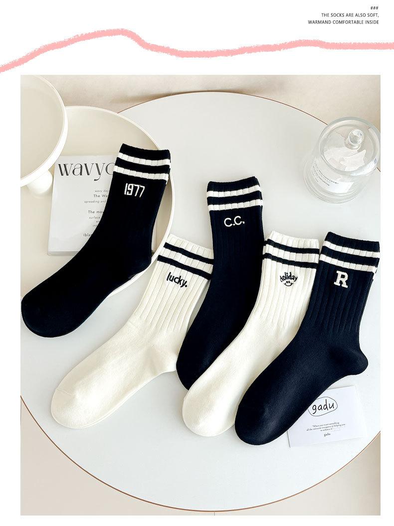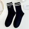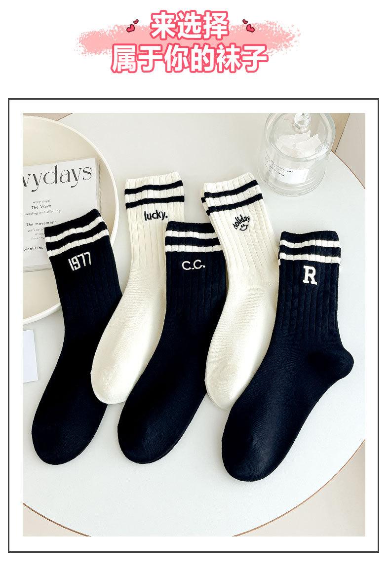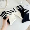 Calcetines de mujer a media pantorrilla calcetines a rayas con letras en blanco y negro estilo preppy calcetines de mujer otoño estilo coreano estilo japonés calcetines de felpa de color contrastante al por mayor