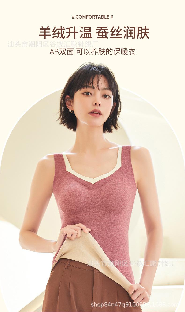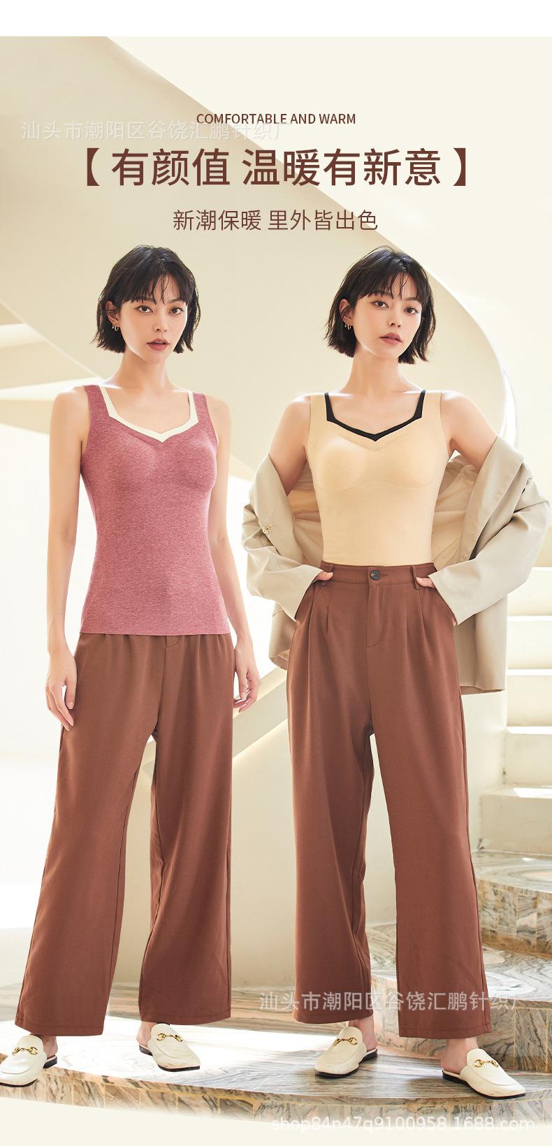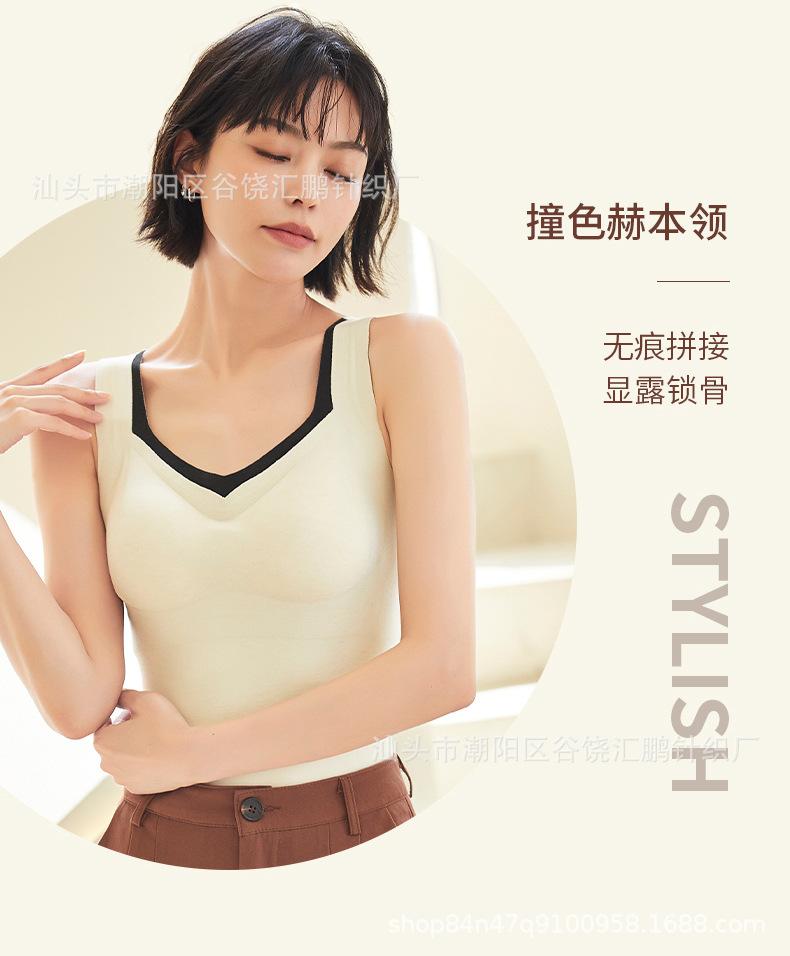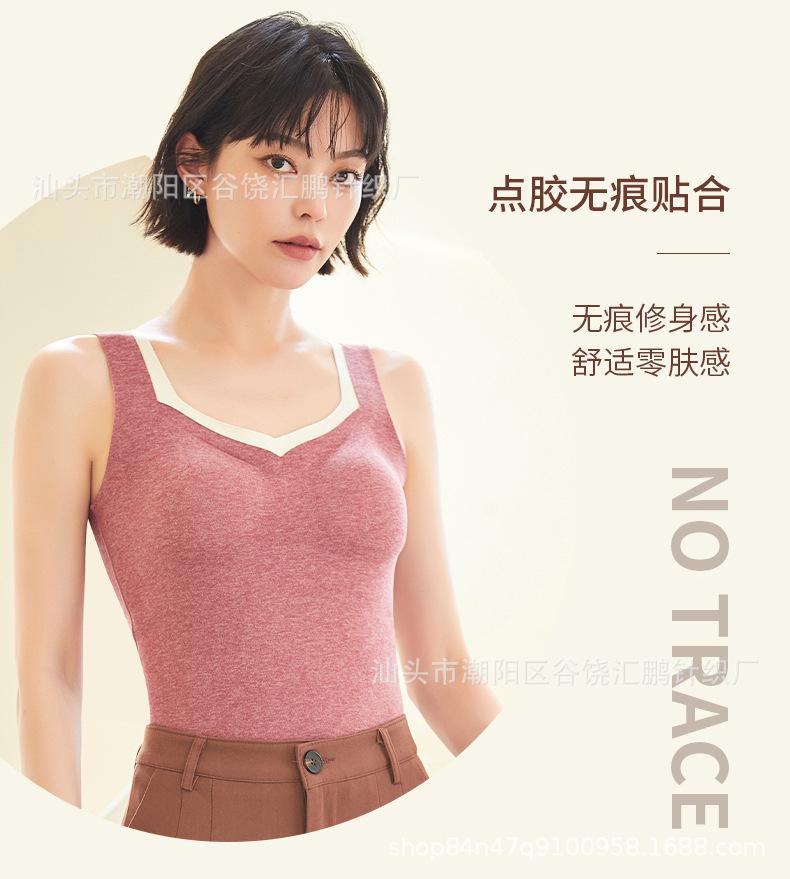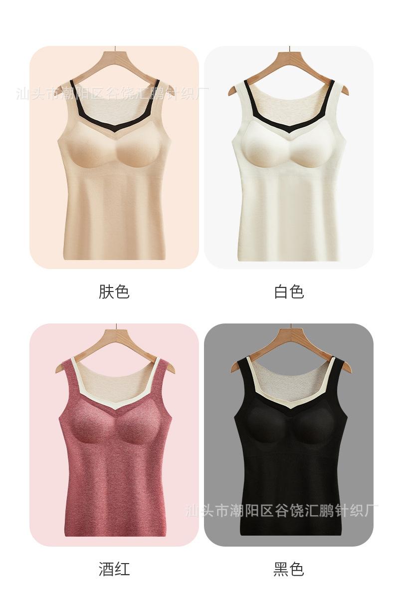 Ropa Interior Térmica de Terciopelo con Contraste de Color de Lana Cachemira para Mujer, Chaleco Autocalentable sin Costuras, Camiseta Base Ajustada, Ropa de Otoño con Almohadilla en el Pecho