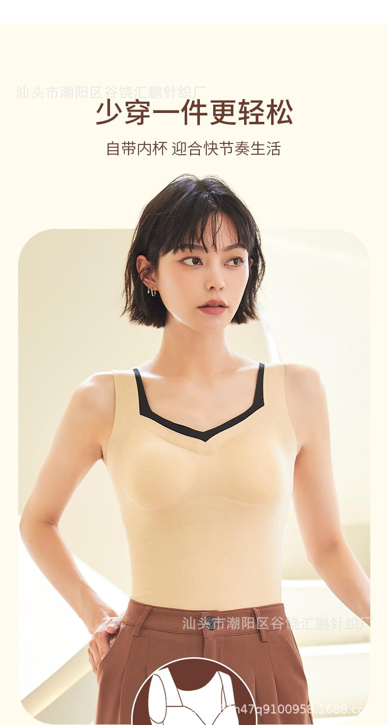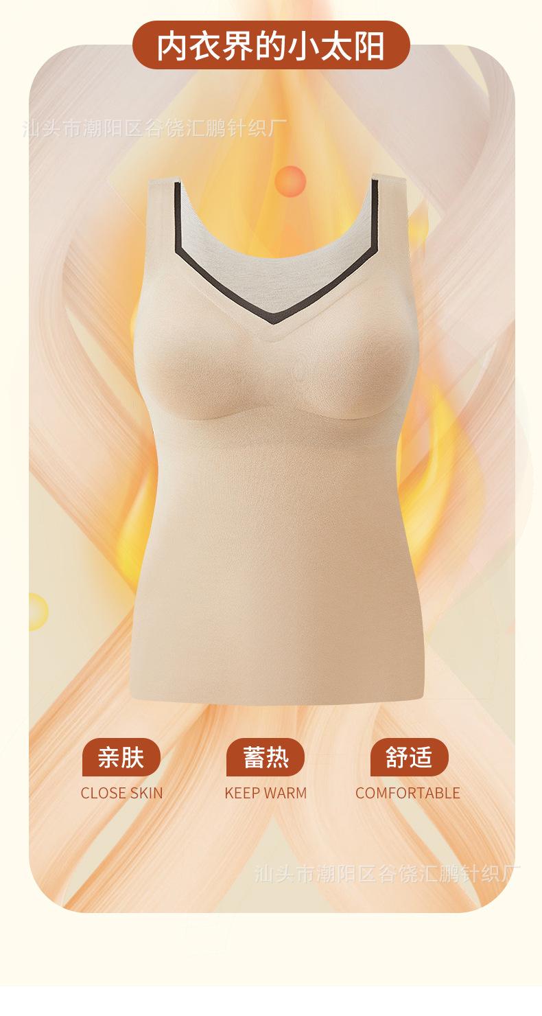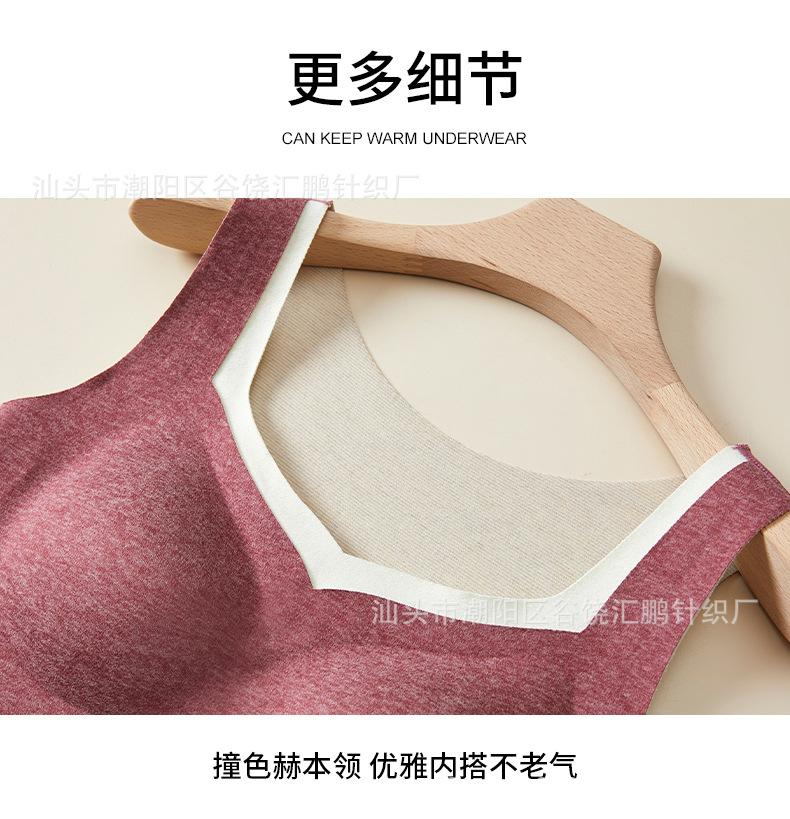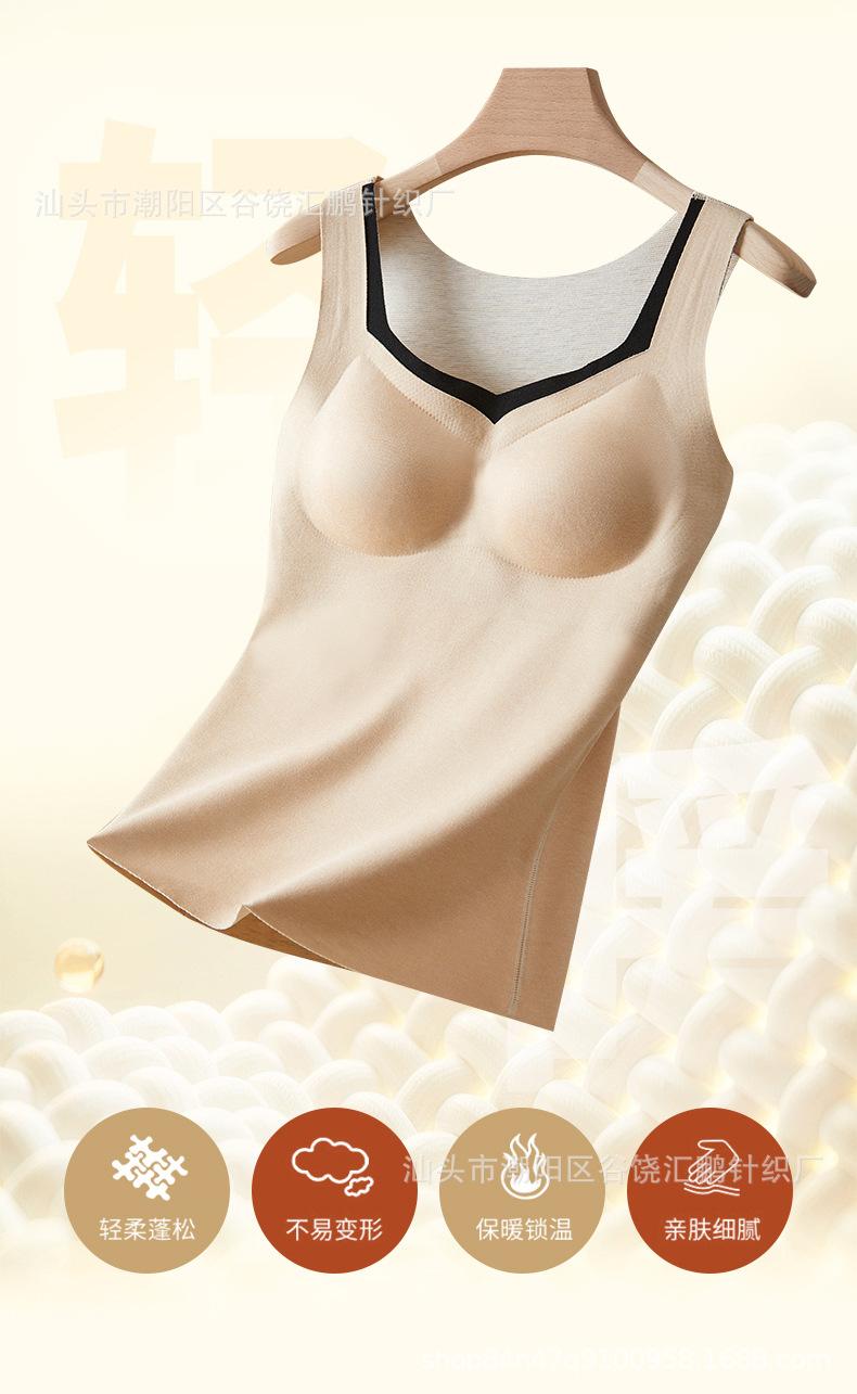 Ropa Interior Térmica de Terciopelo con Contraste de Color de Lana Cachemira para Mujer, Chaleco Autocalentable sin Costuras, Camiseta Base Ajustada, Ropa de Otoño con Almohadilla en el Pecho