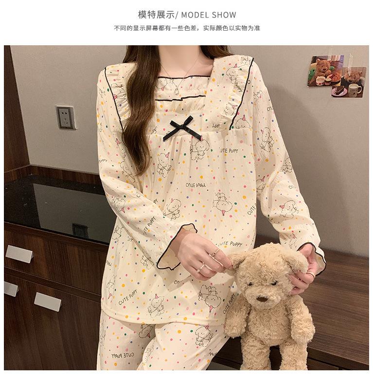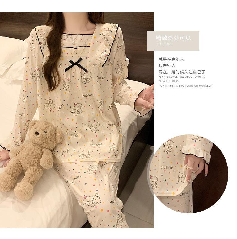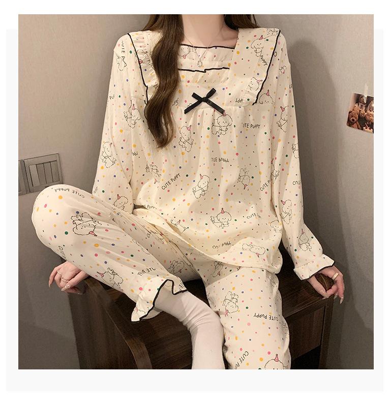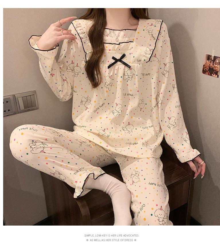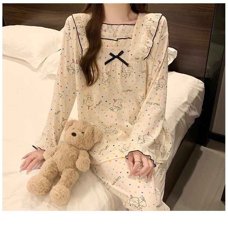 Pijamas nuevos de otoño para mujer, de algodón tejido en forma de nube, de manga larga, estilo princesa dulce, ropa para el hogar.