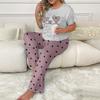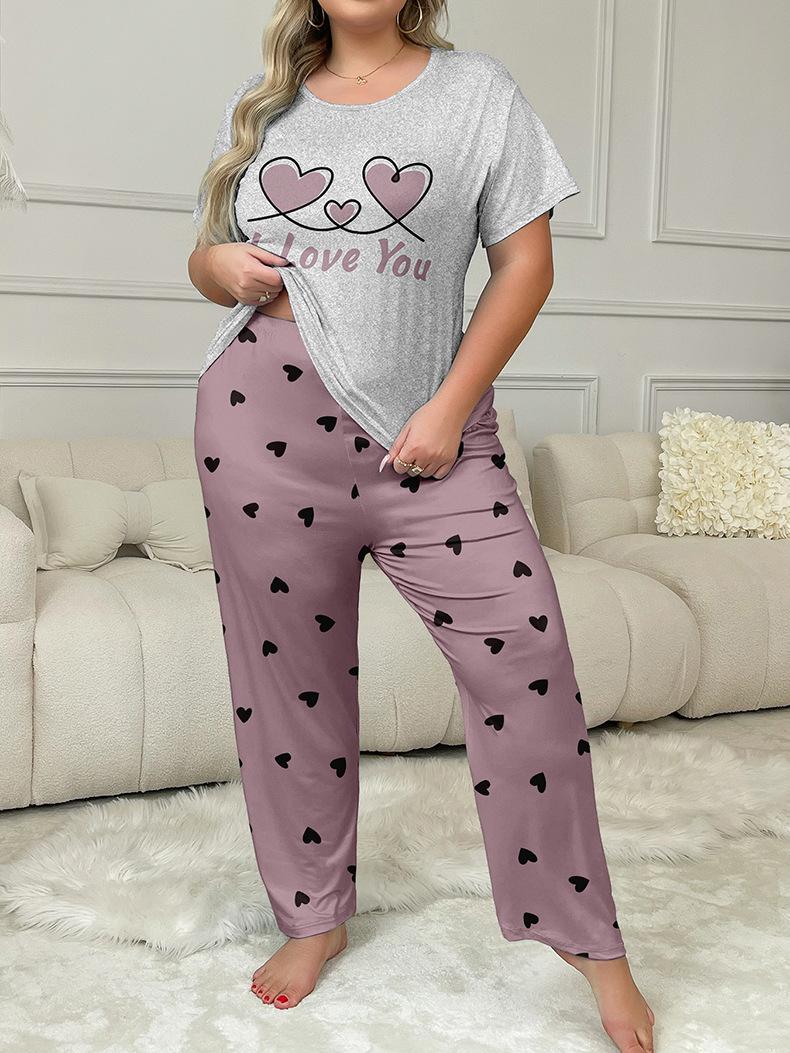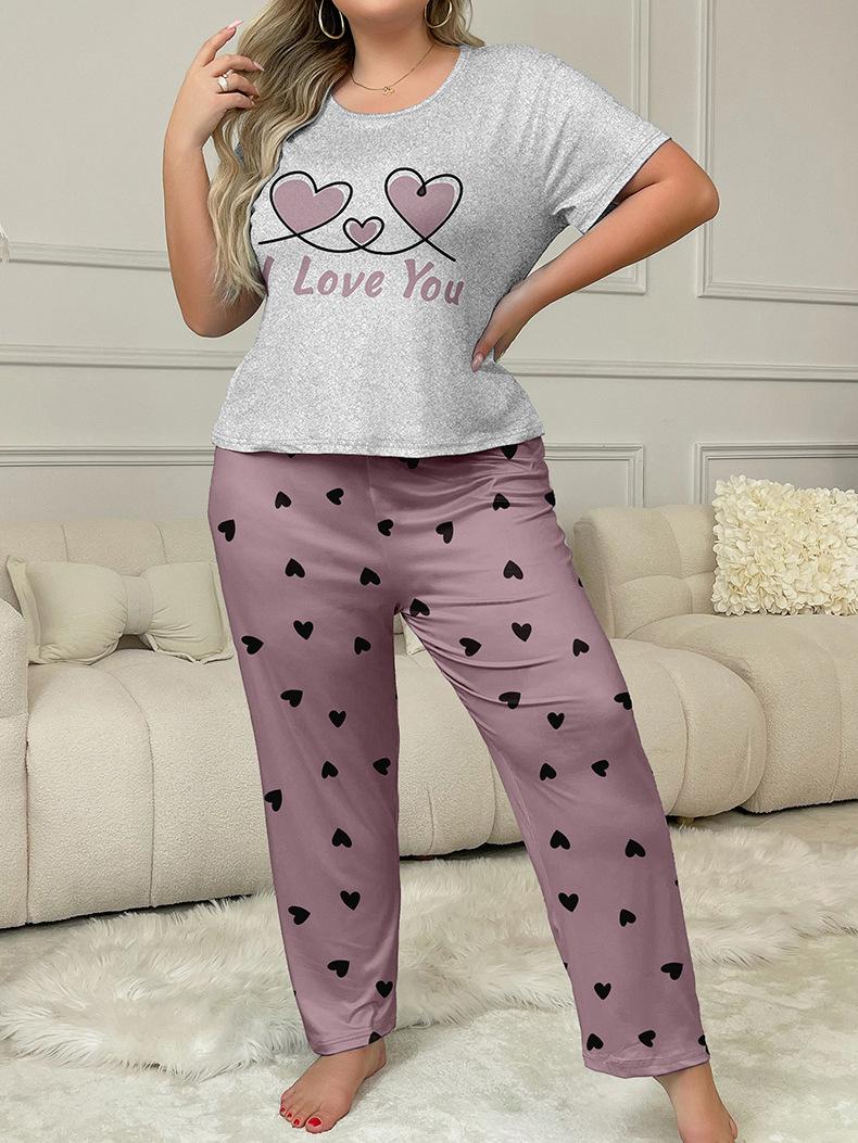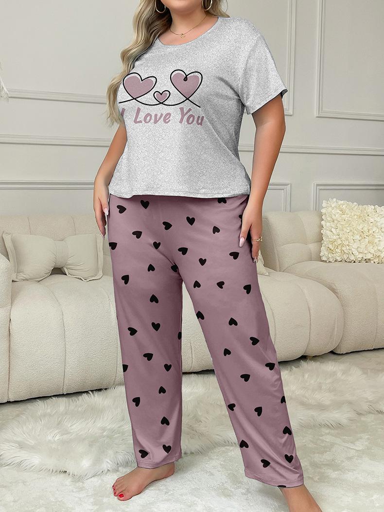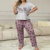 Estilo Nuevo Europeo y Americano Ropa de Casa de Dos Piezas Pantalones Estampados de Amor de Manga Corta Ropa Casual para Mujer