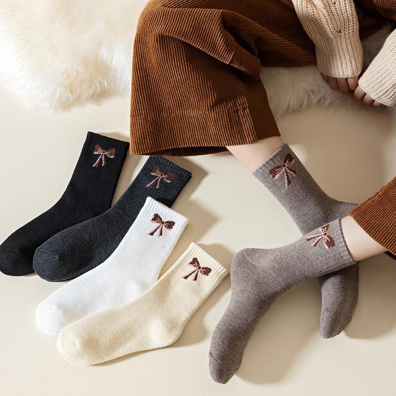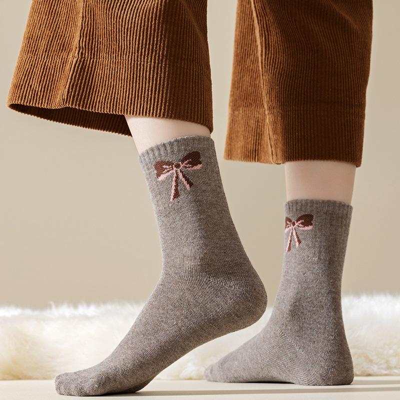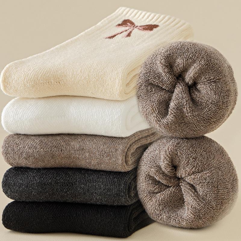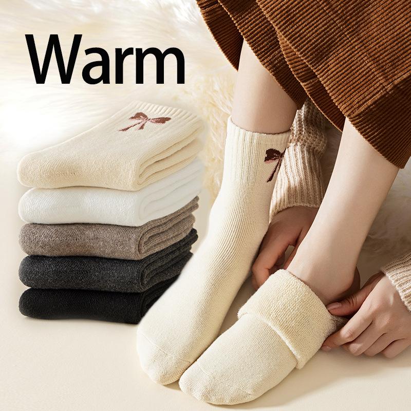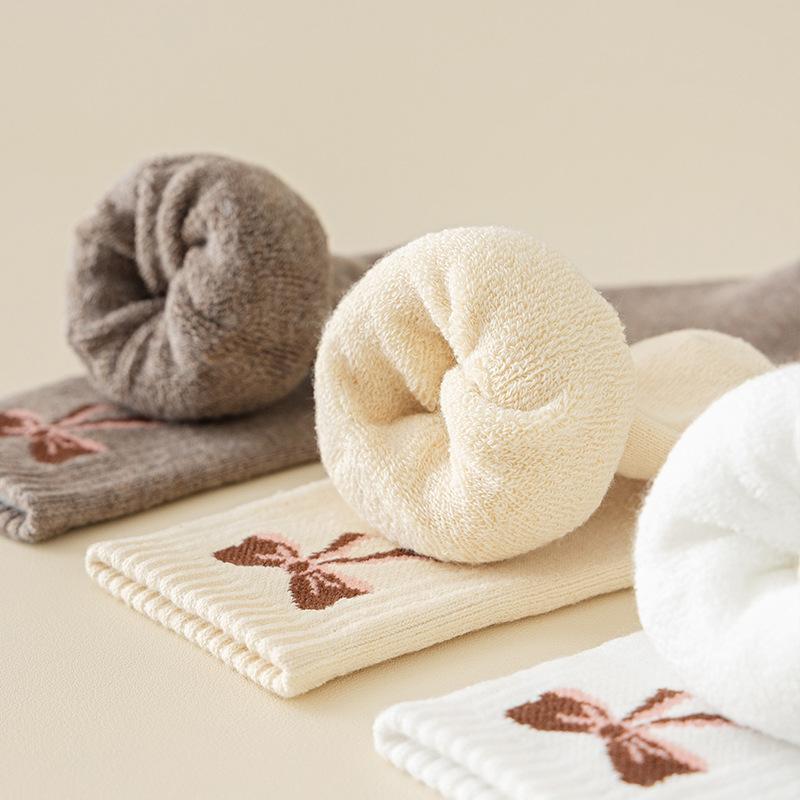 Calcetines con moño para mujer invierno con forro polar gruesos cálidos calcetines de felpa calcetines dulces para casa calcetines toalla resistentes al frío