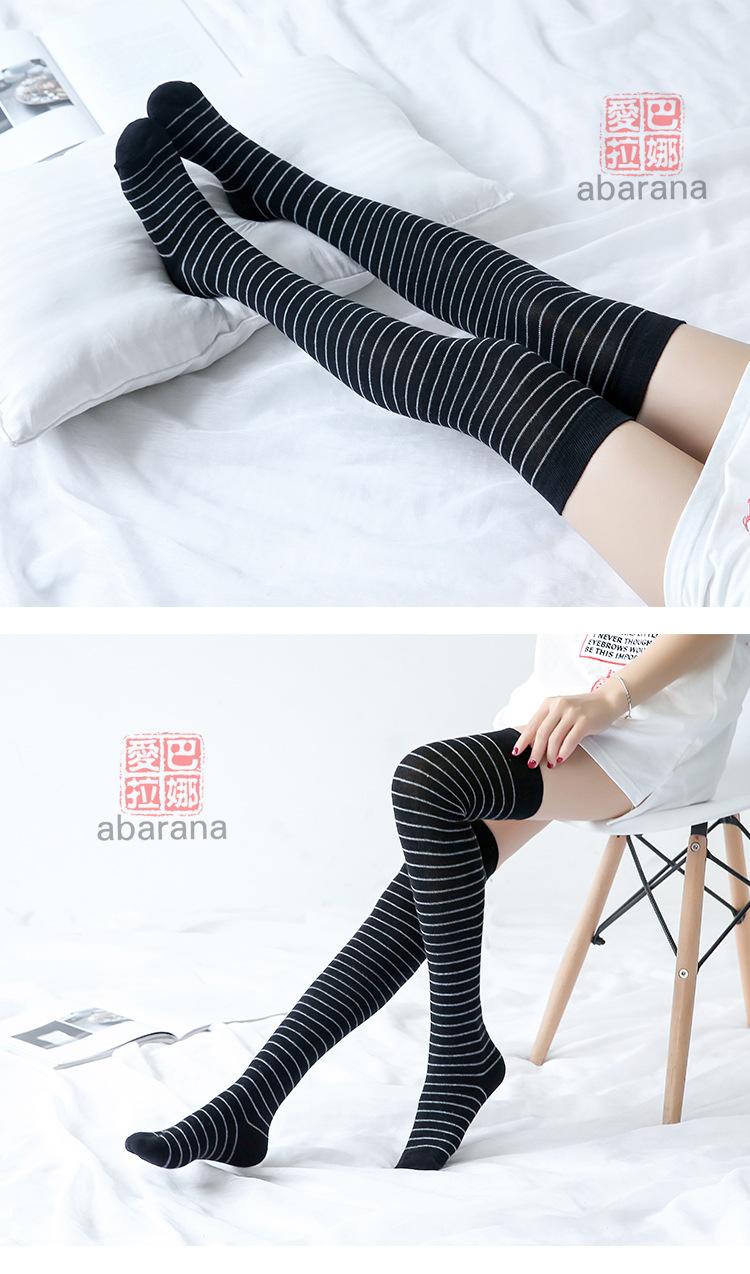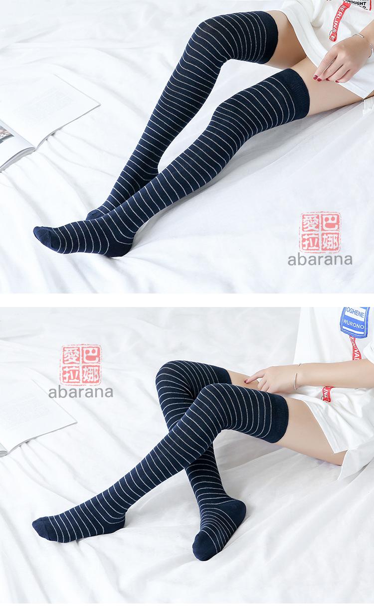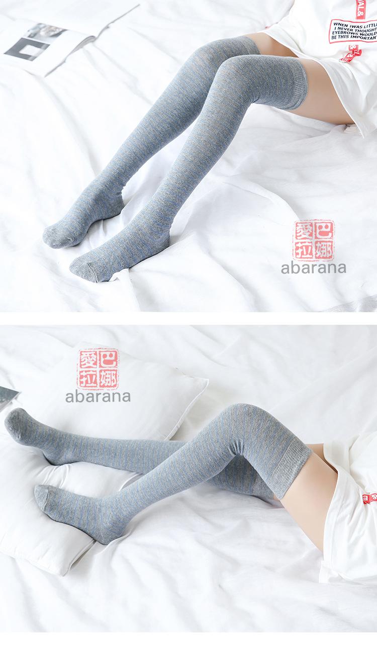 Calcetines altos de algodón a rayas por encima de la rodilla, venta al por mayor, calcetines japoneses por encima de la rodilla para mujer, transpirables, primavera y otoño.
