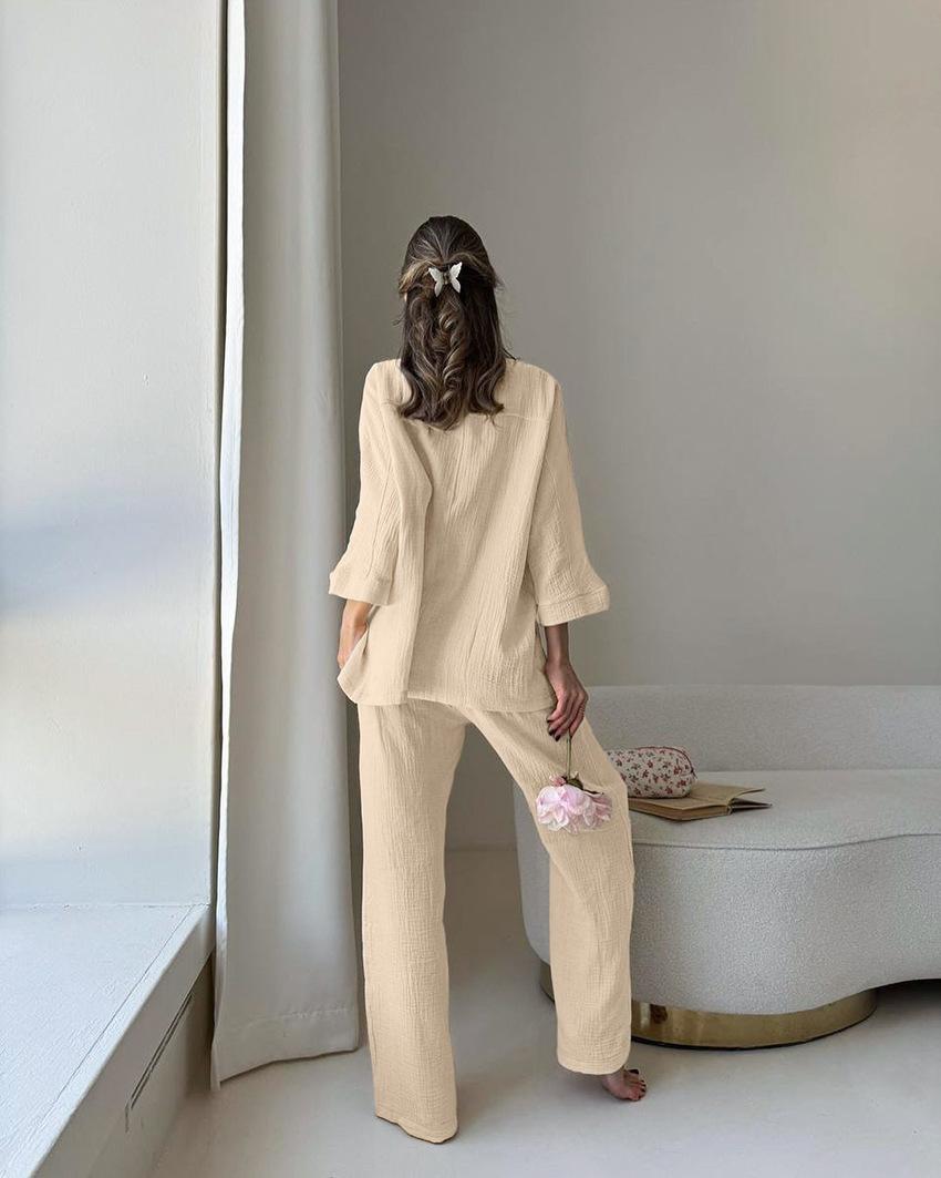 Pijamas de manga larga para mujer, de algodón, holgados, cómodos y transpirables, de otoño e invierno, de estilo europeo y americano, ropa de hogar transfronteriza, 2024