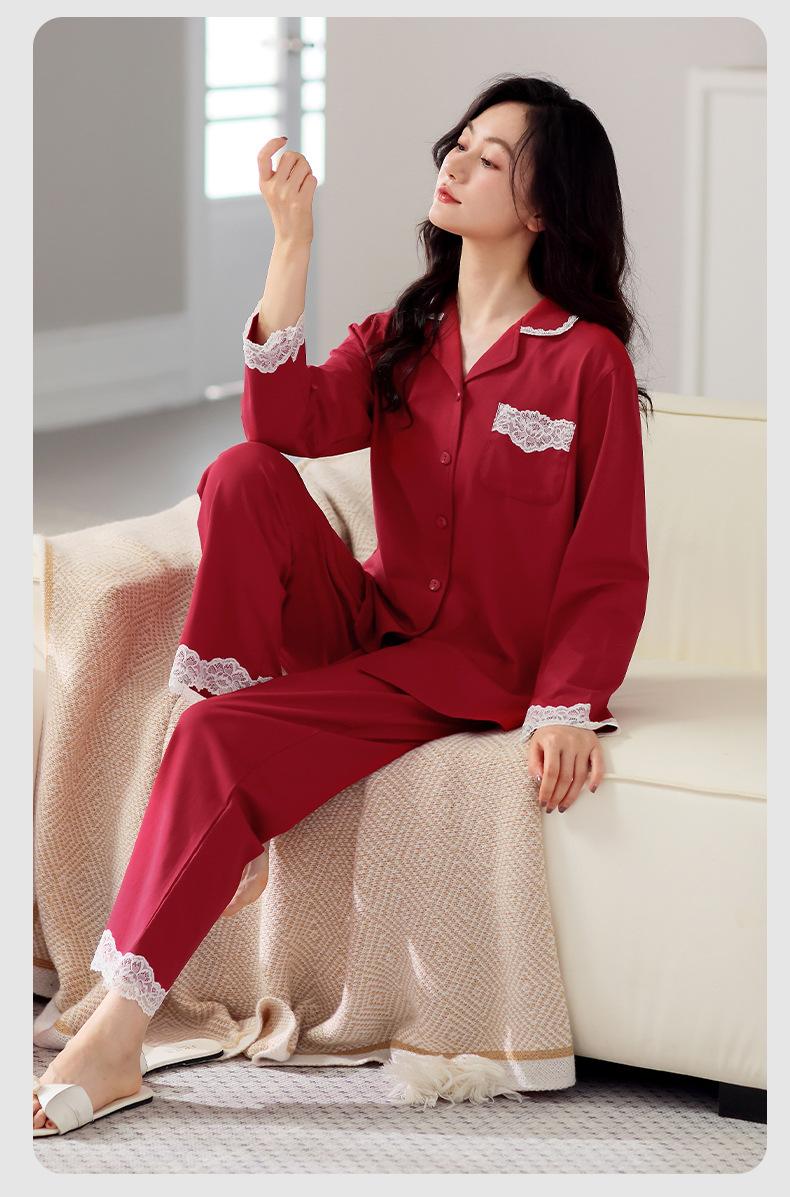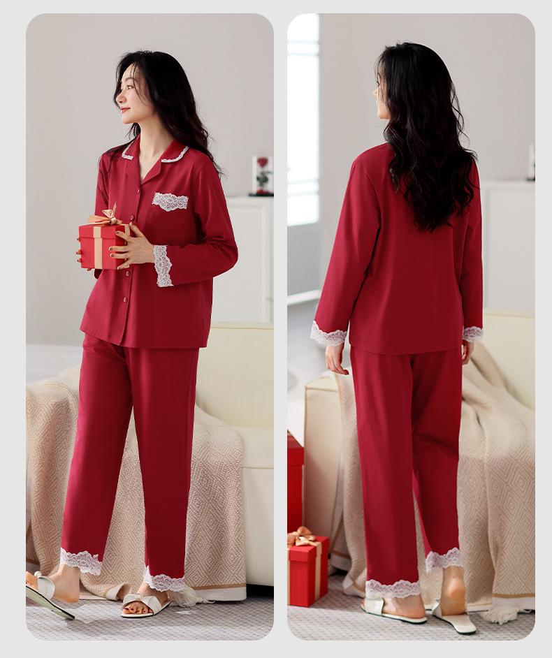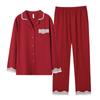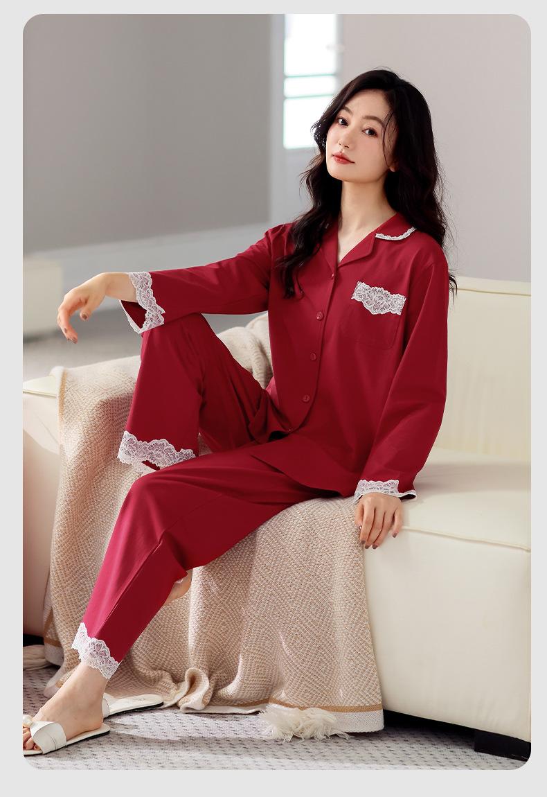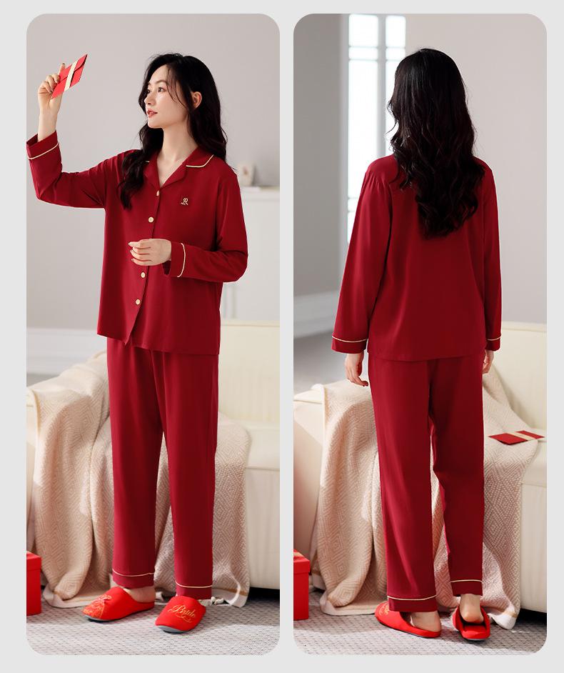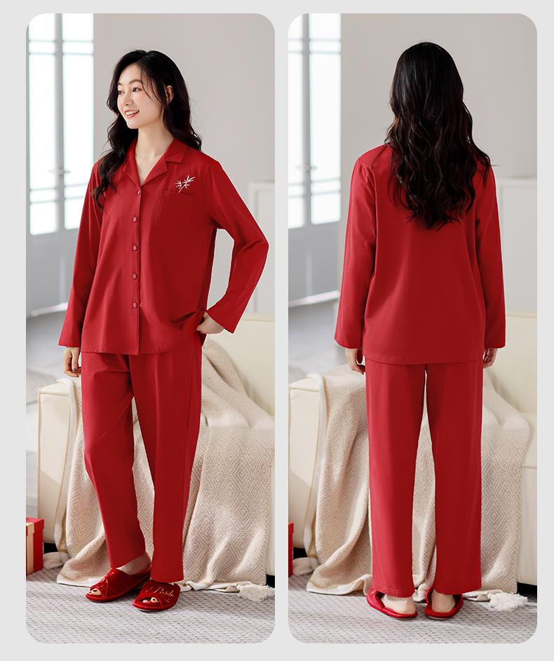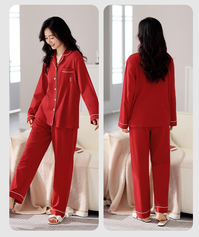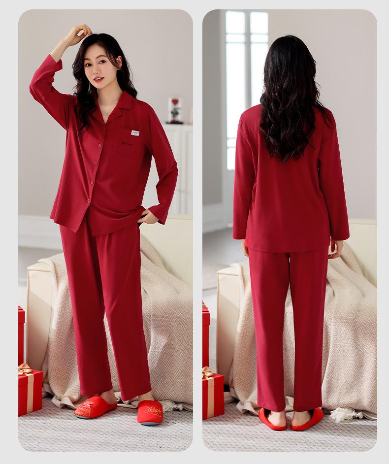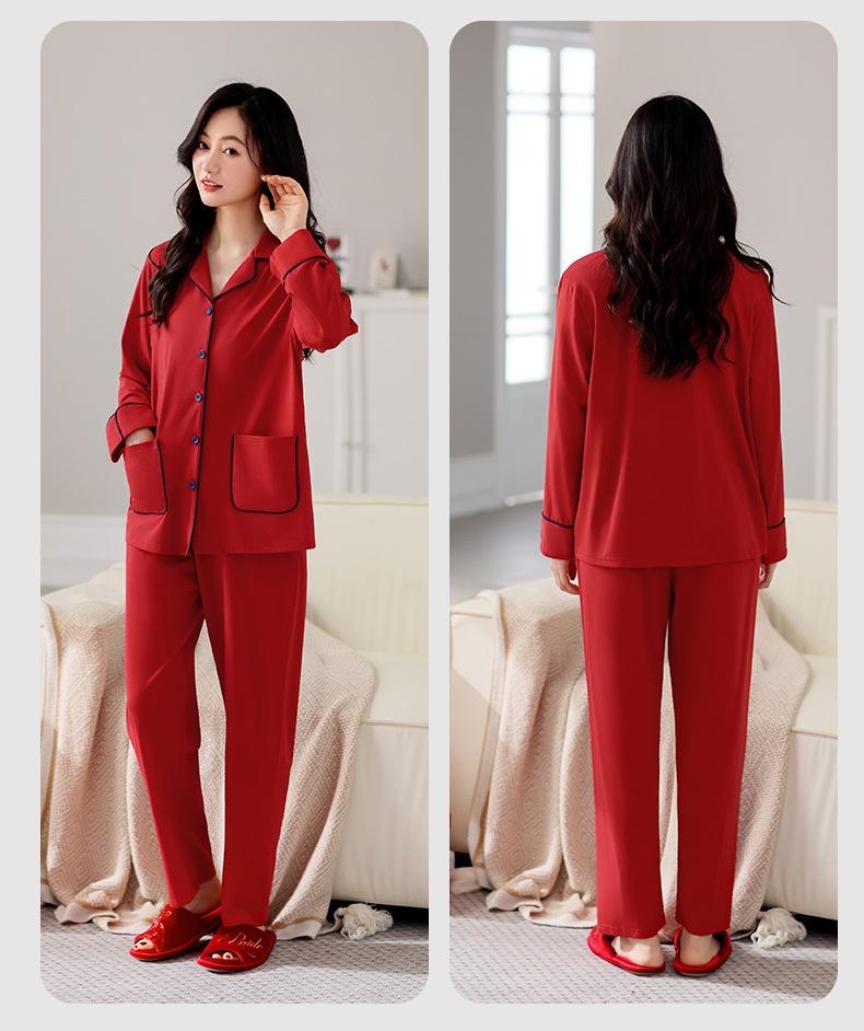 Pijama de algodón de manga larga para mujer, cárdigan holgado, informal, para el hogar, para primavera y otoño, color rojo