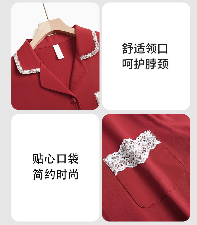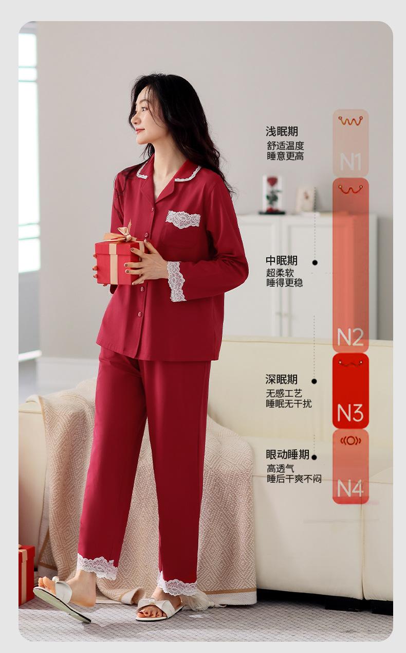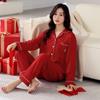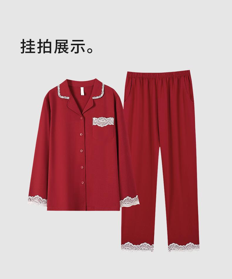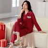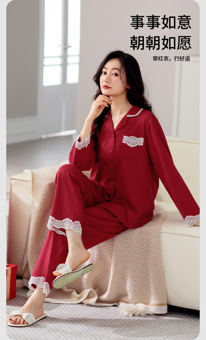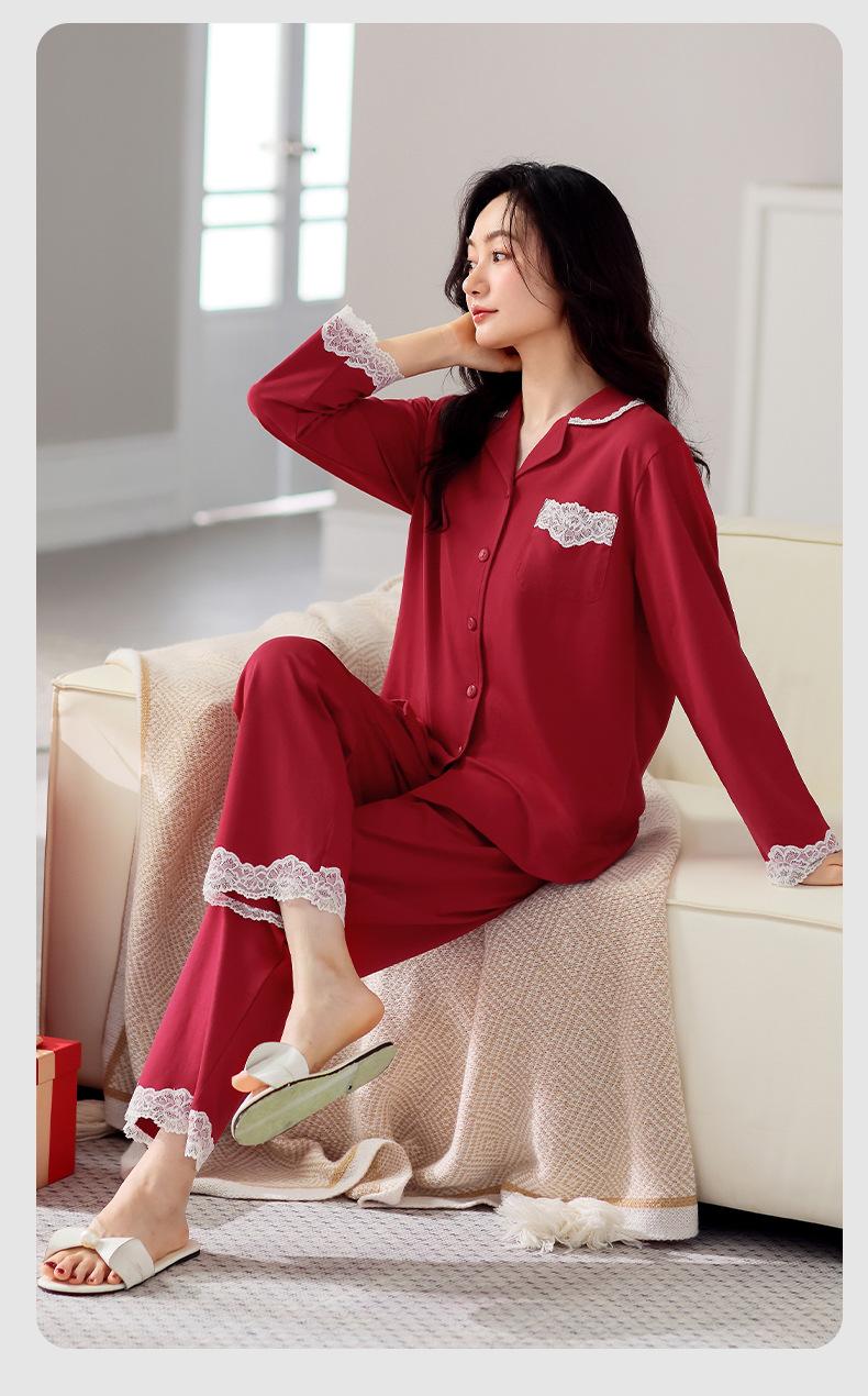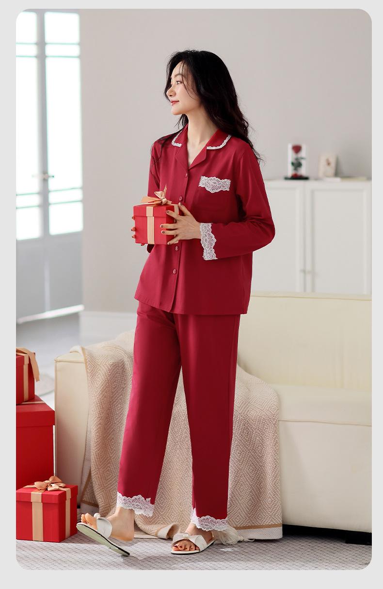 Pijama de algodón de manga larga para mujer, cárdigan holgado, informal, para el hogar, para primavera y otoño, color rojo