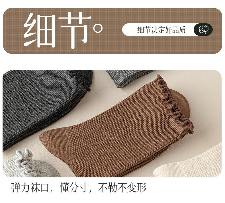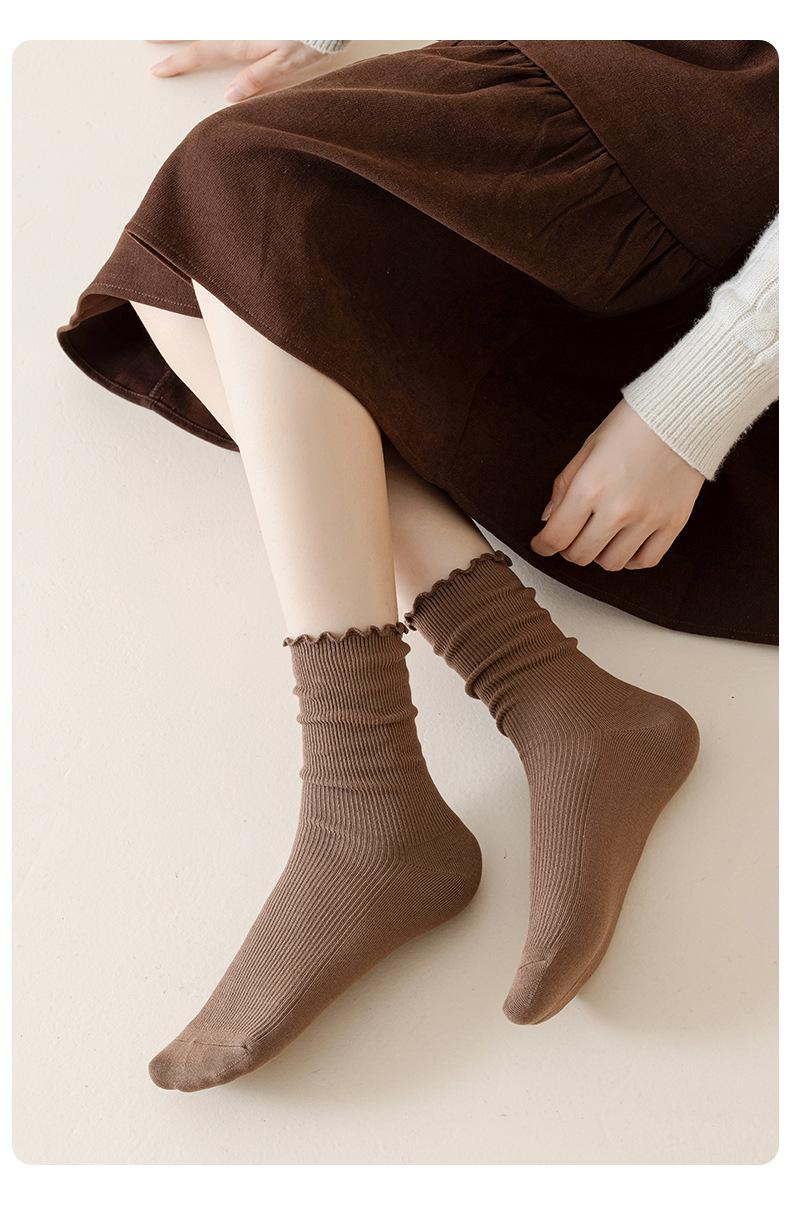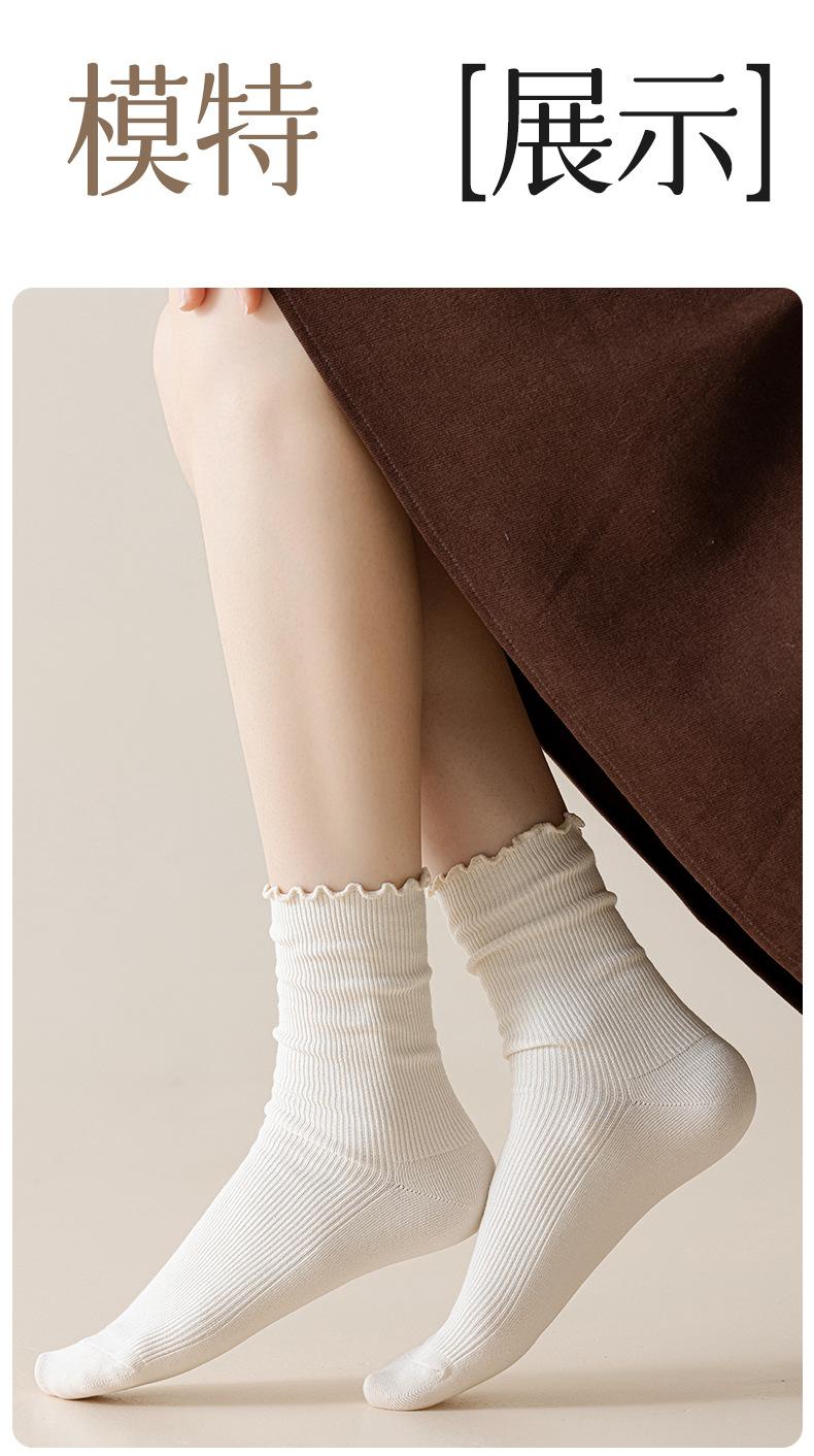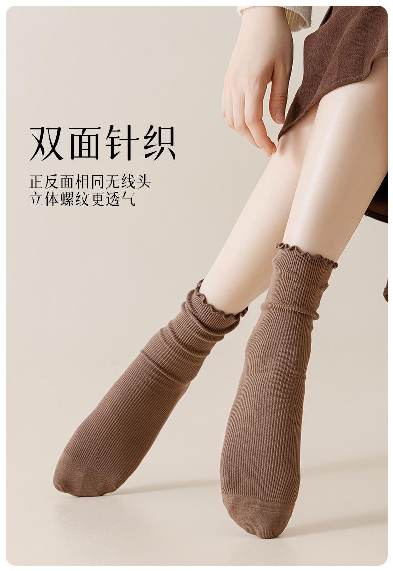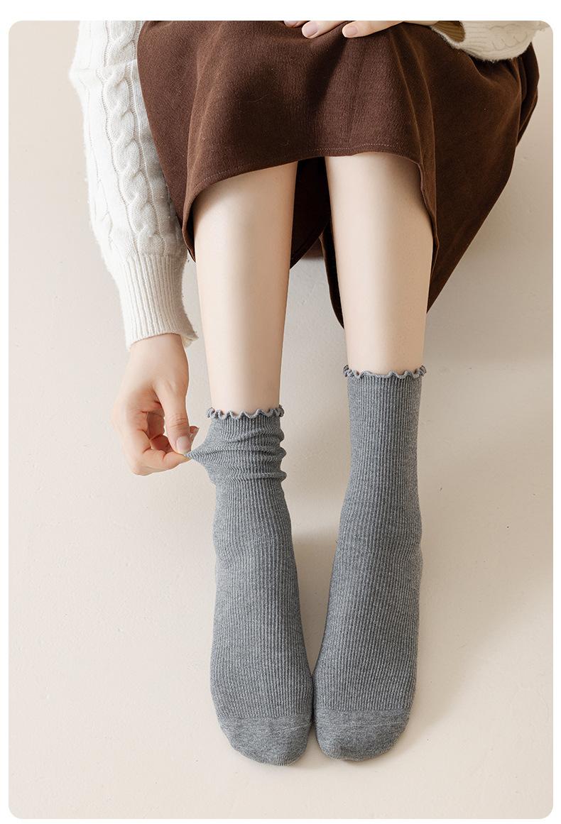 Calcetines de Otoño e Invierno de Oreja de Madera para Mujer, Calcetines de Algodón de Doble Aguja de Media Caña, Calcetines de Algodón para Mujer, Calcetines Cálidos de Encaje Sueltos