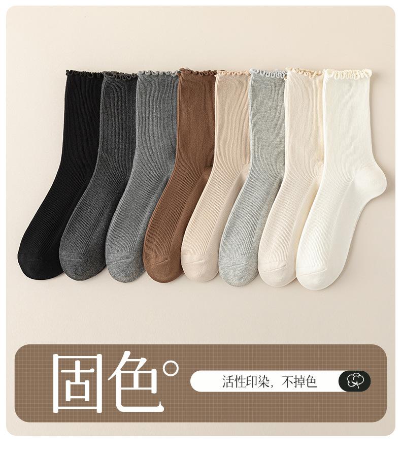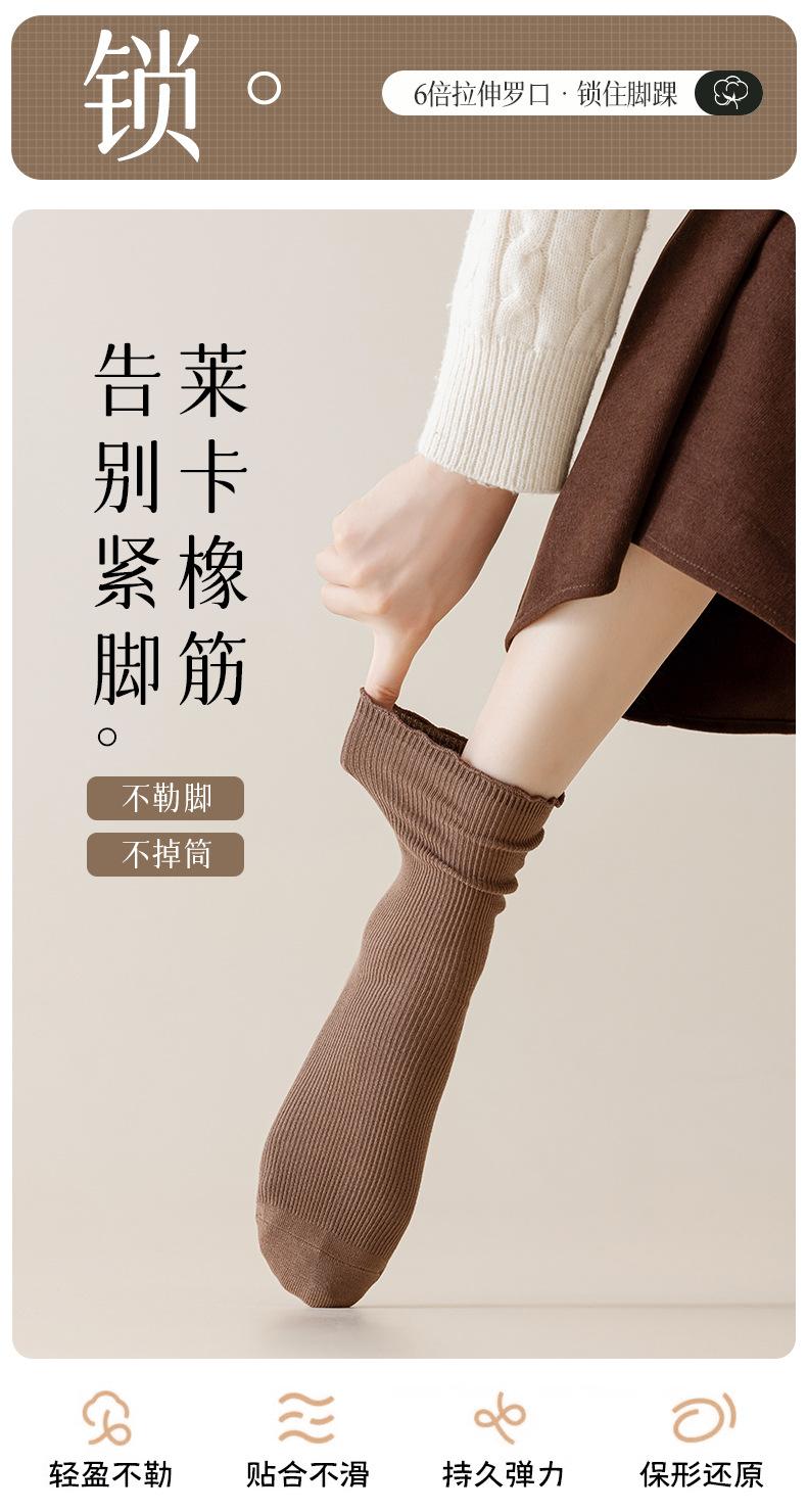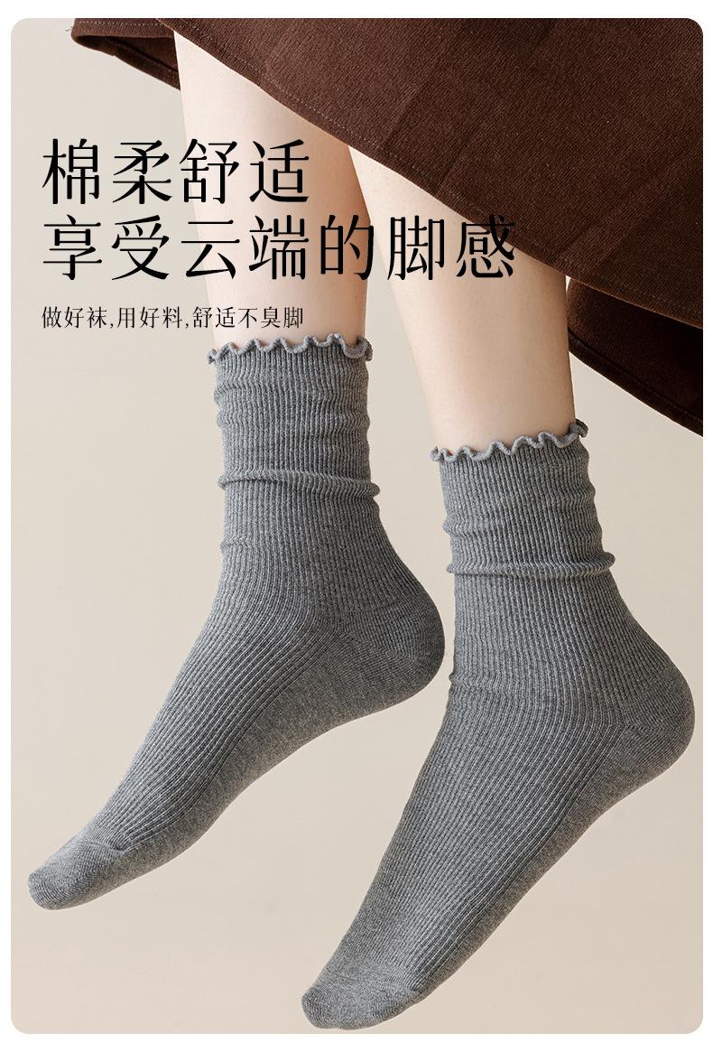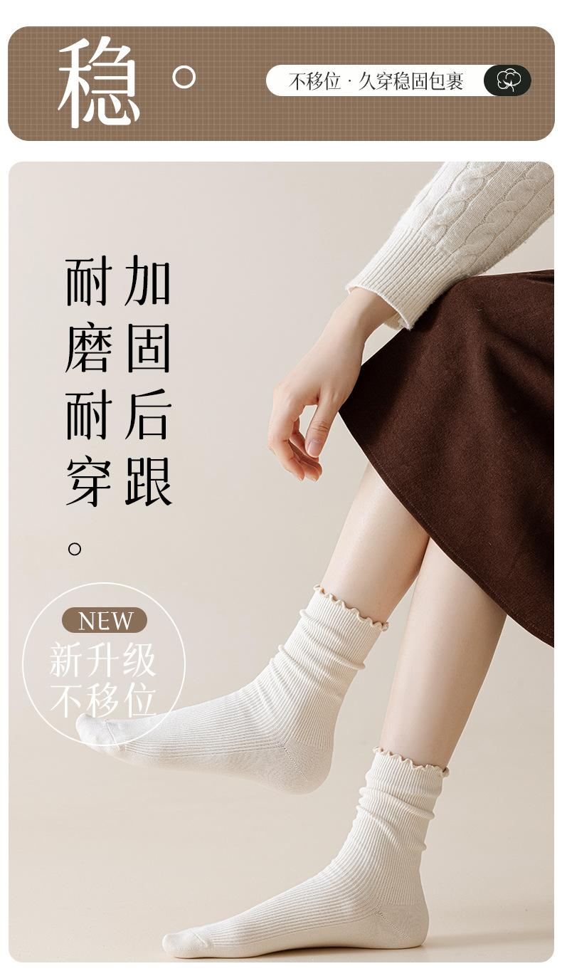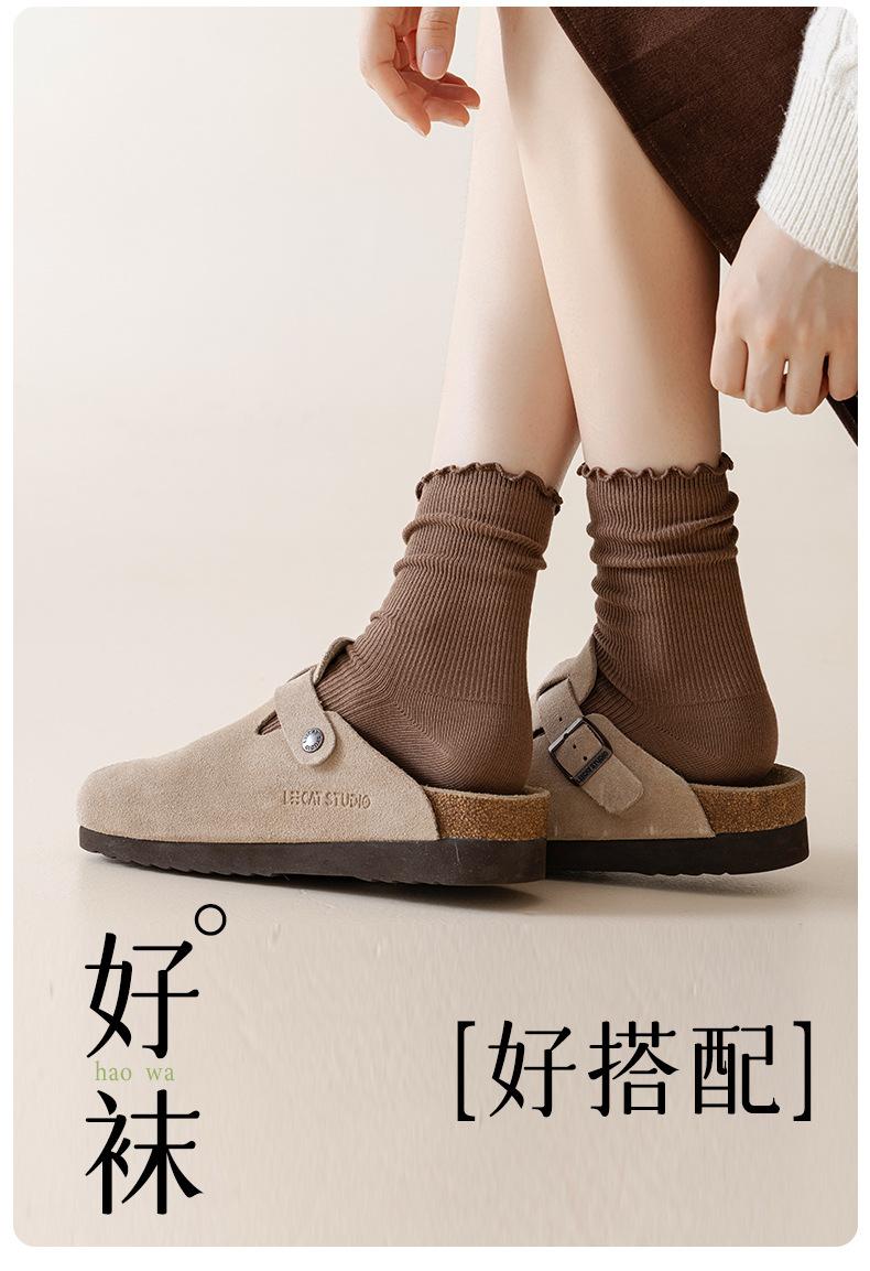 Calcetines de Otoño e Invierno de Oreja de Madera para Mujer, Calcetines de Algodón de Doble Aguja de Media Caña, Calcetines de Algodón para Mujer, Calcetines Cálidos de Encaje Sueltos