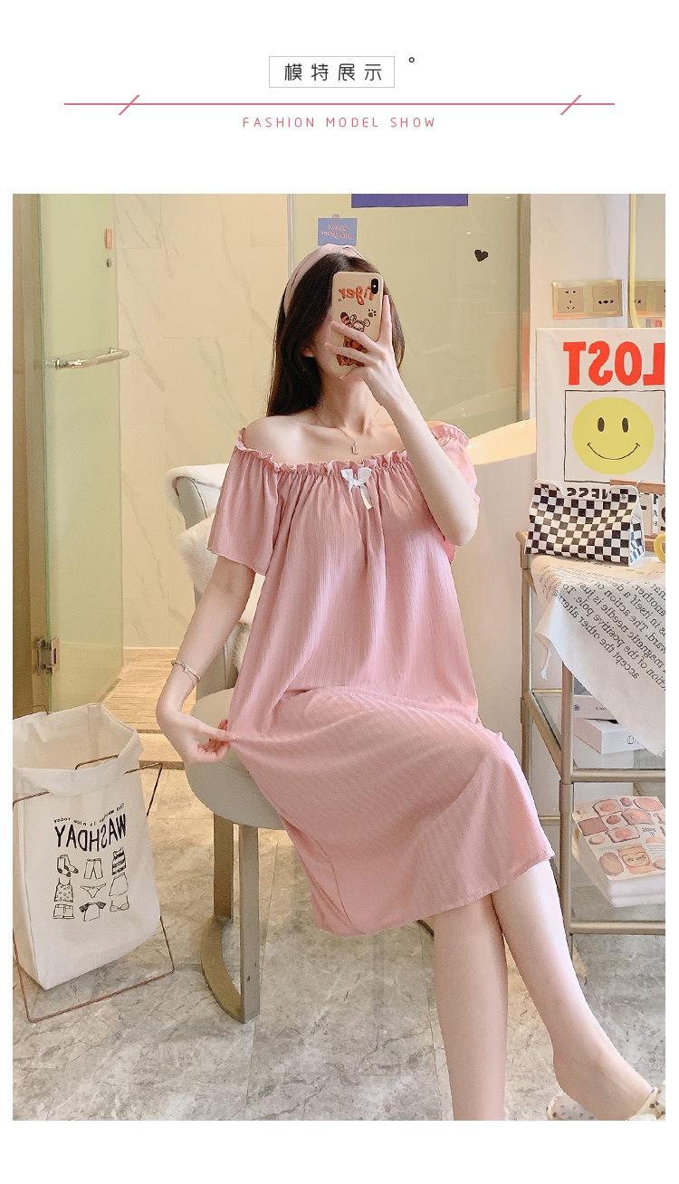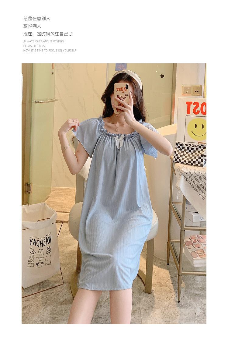 Camisón de verano de manga corta con dibujos animados, pijama sencillo, holgado, para mujer, talla grande, talla mediana, sencillo, largo, ropa de casa dulce para mujer