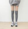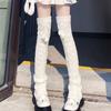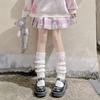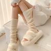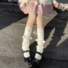 Calcetines largos apilados con bolas de pelo blanco para mujer, de otoño e invierno, tejidos a mano, cálidos, tipo Lolita, protectores de piernas gruesos para niña JK