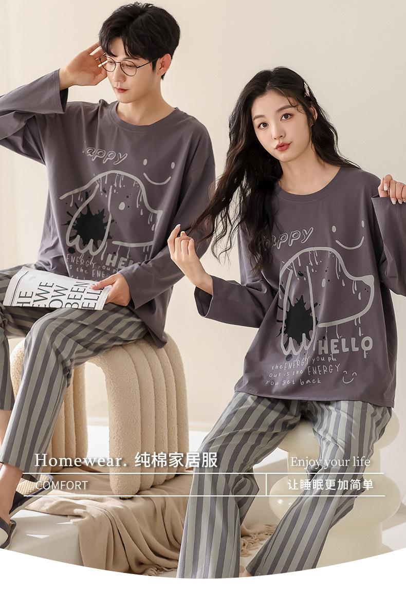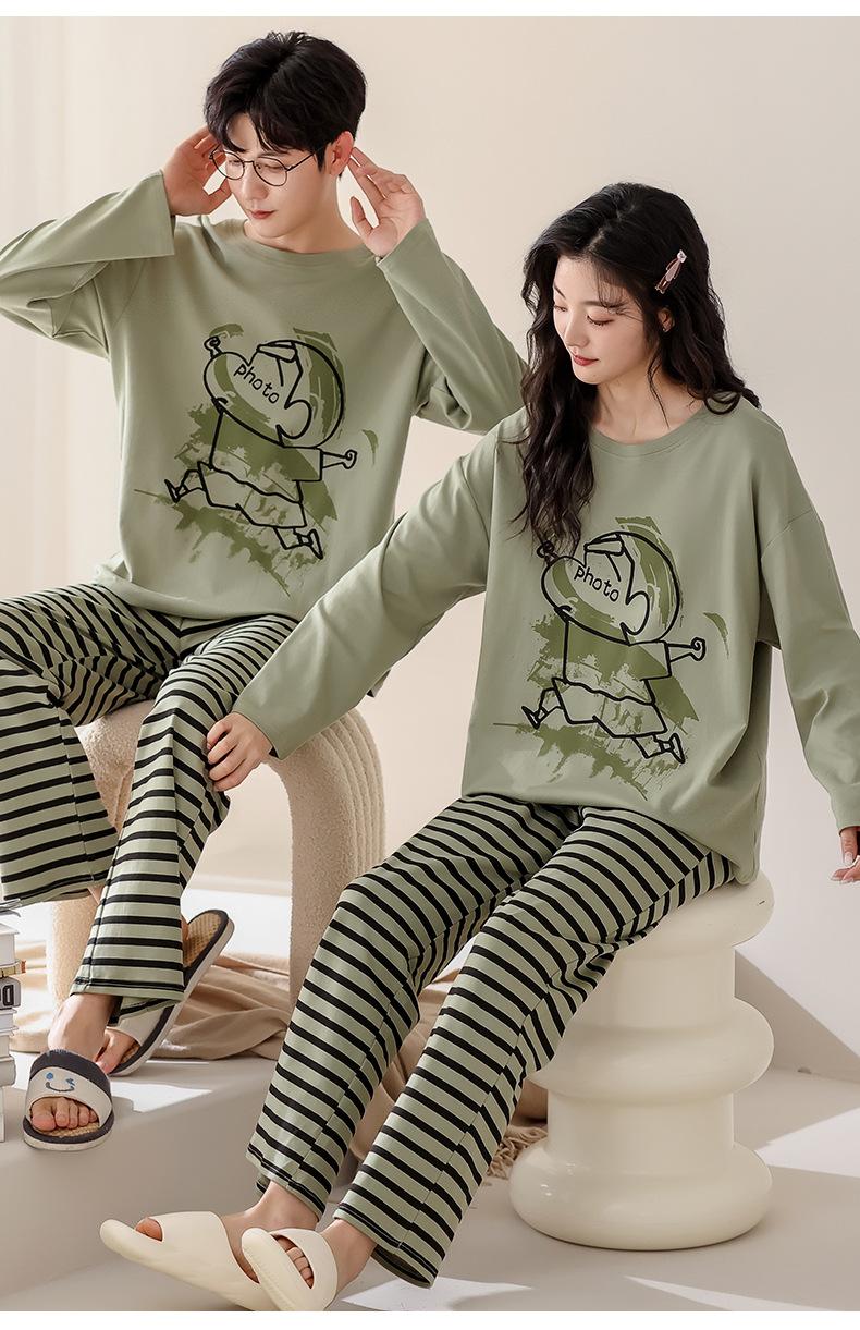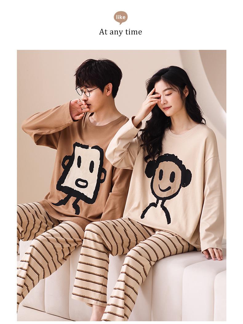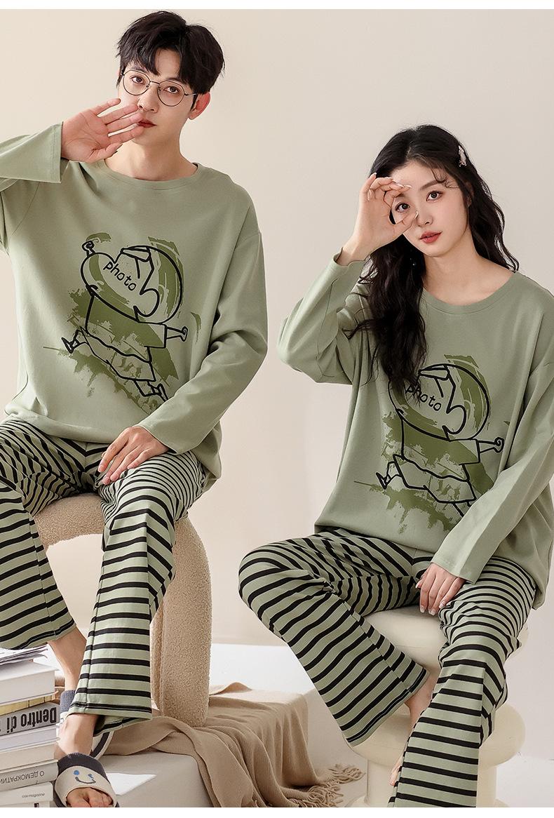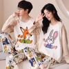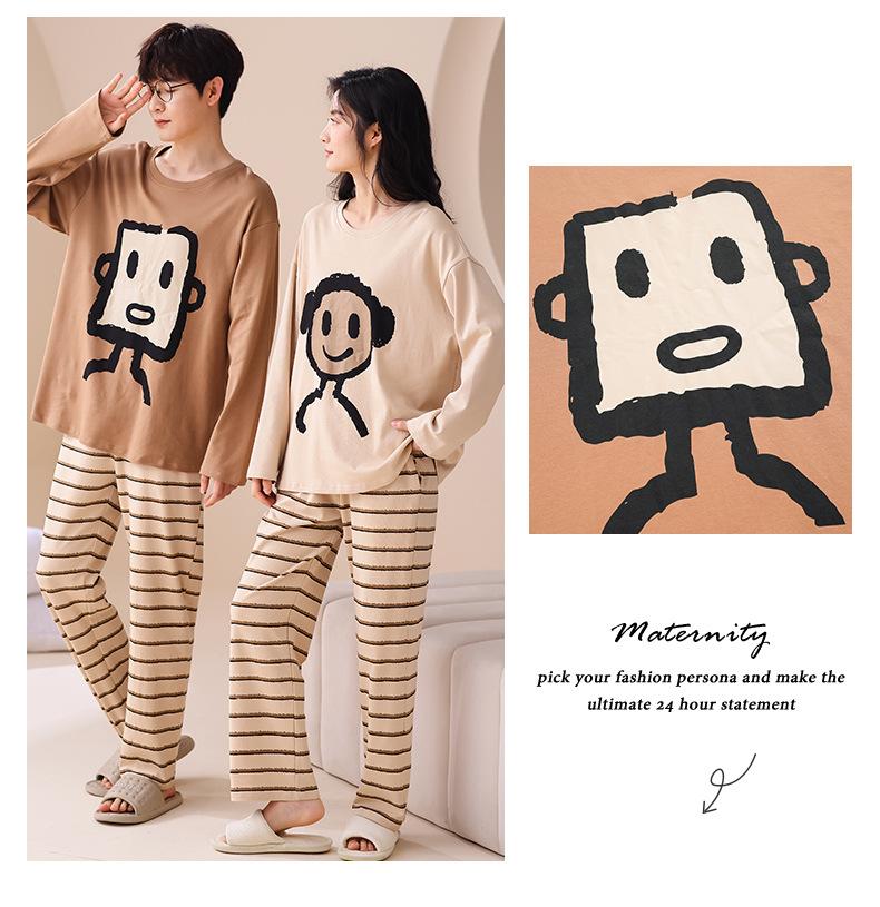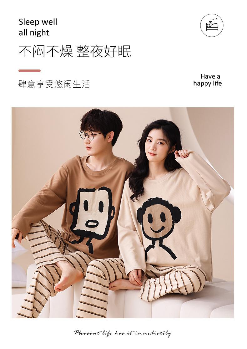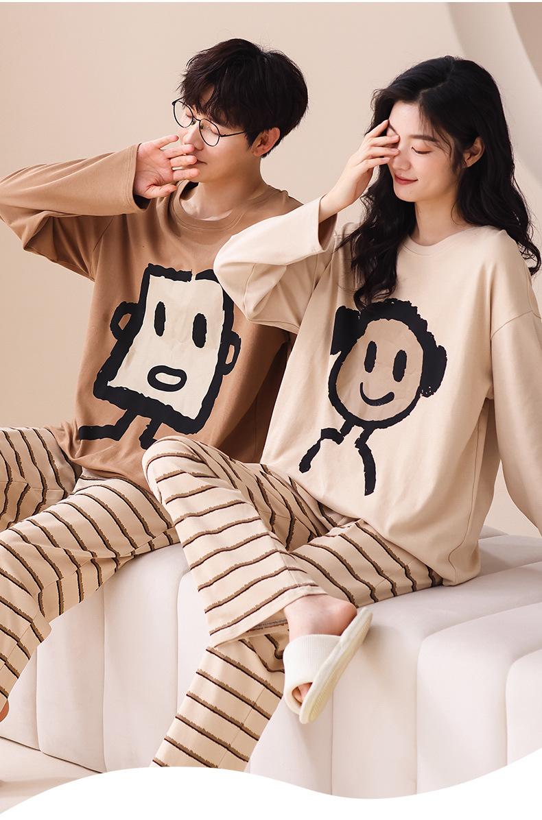 Pijama de Primavera y Otoño para Mujer de Algodón Puro de Manga Larga y Pantalón Largo, Moderno, de Dibujos Animados para Pareja, Ropa de Casa, Conjunto de Dos Piezas