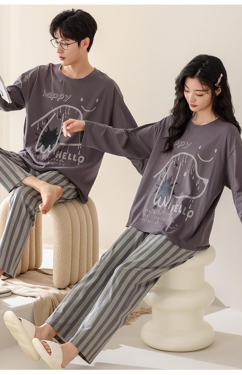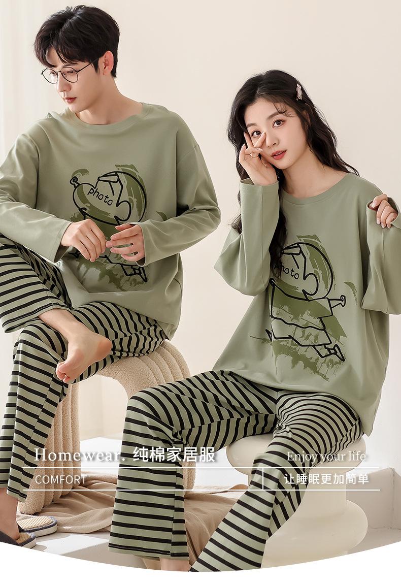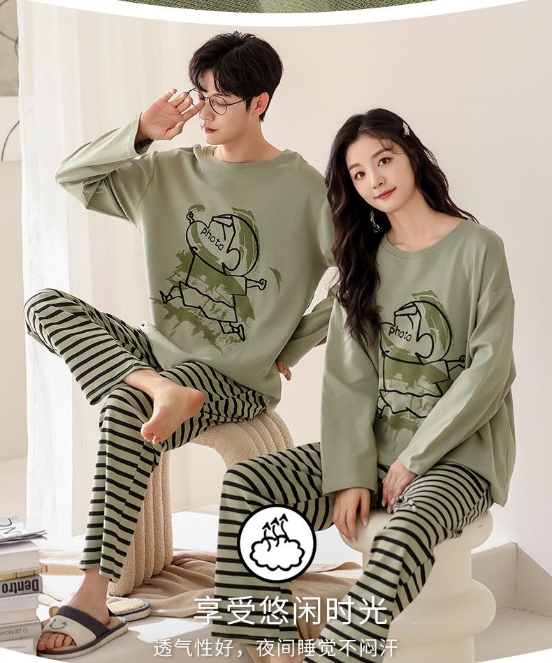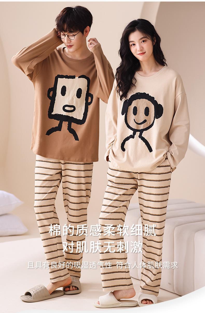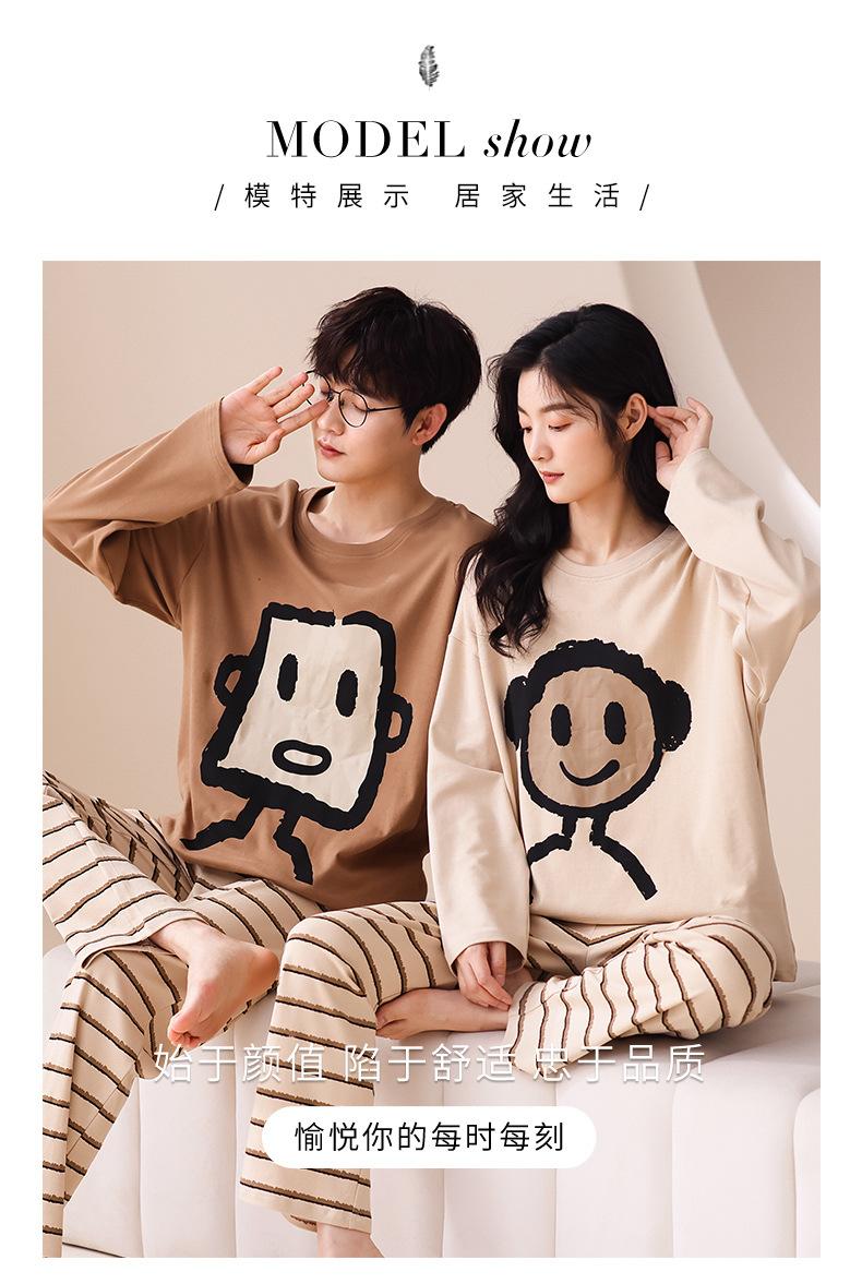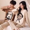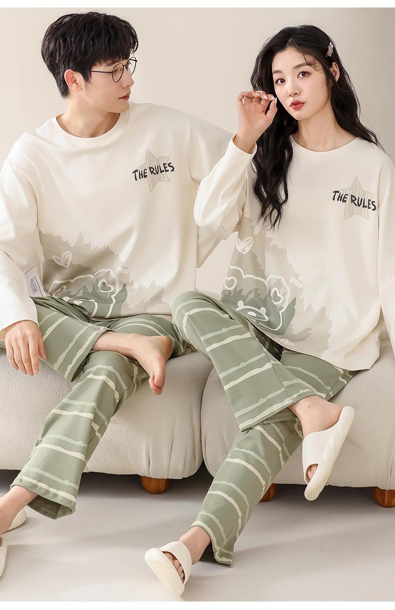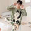 Pijama de Primavera y Otoño para Mujer de Algodón Puro de Manga Larga y Pantalón Largo, Moderno, de Dibujos Animados para Pareja, Ropa de Casa, Conjunto de Dos Piezas