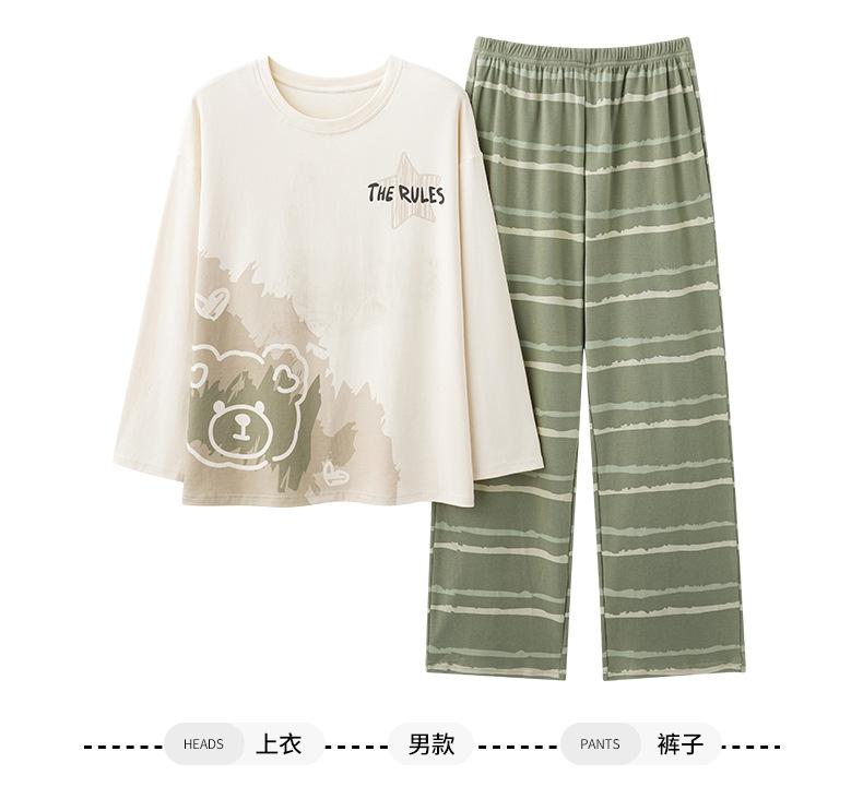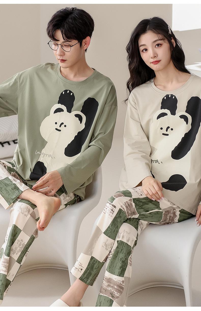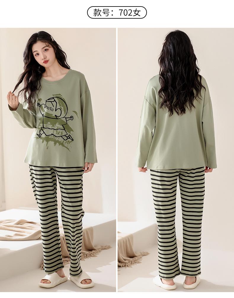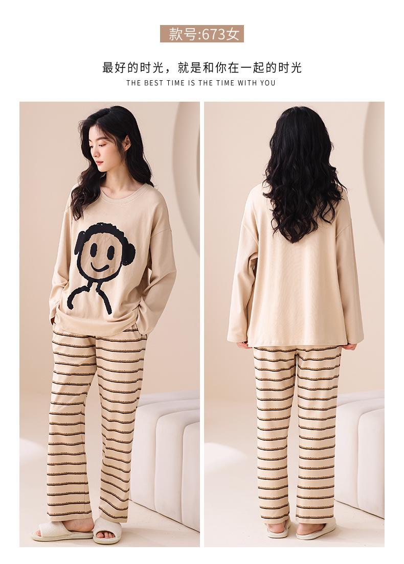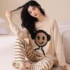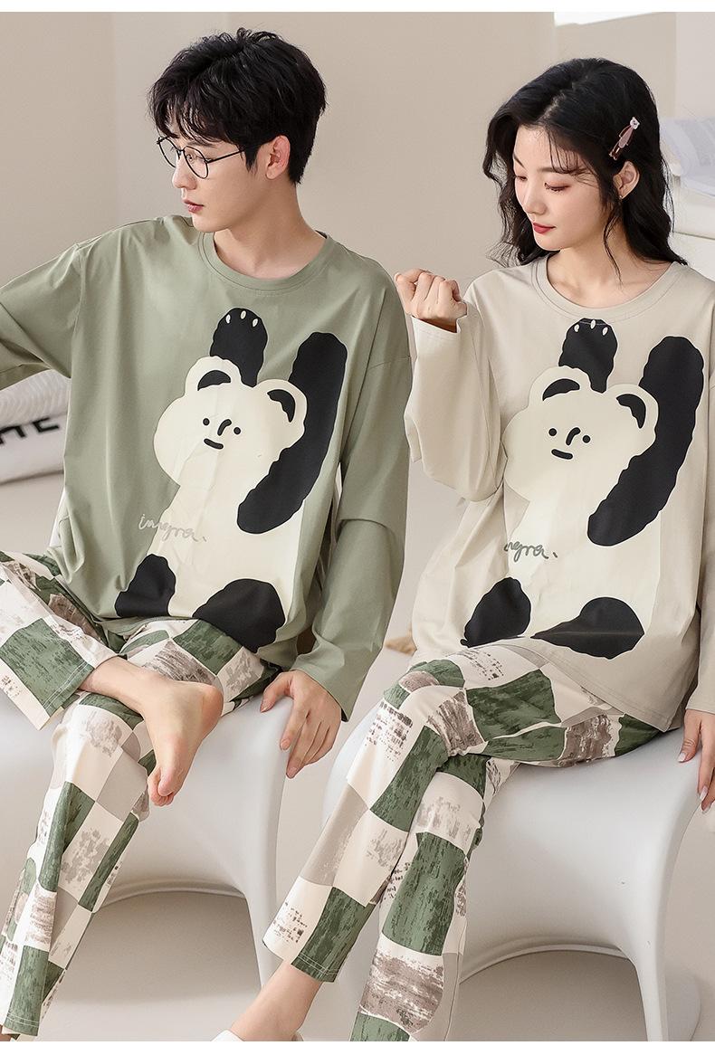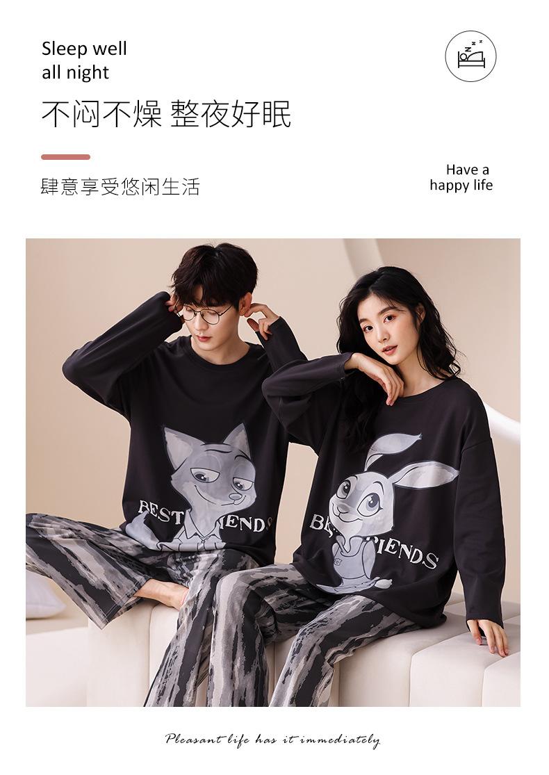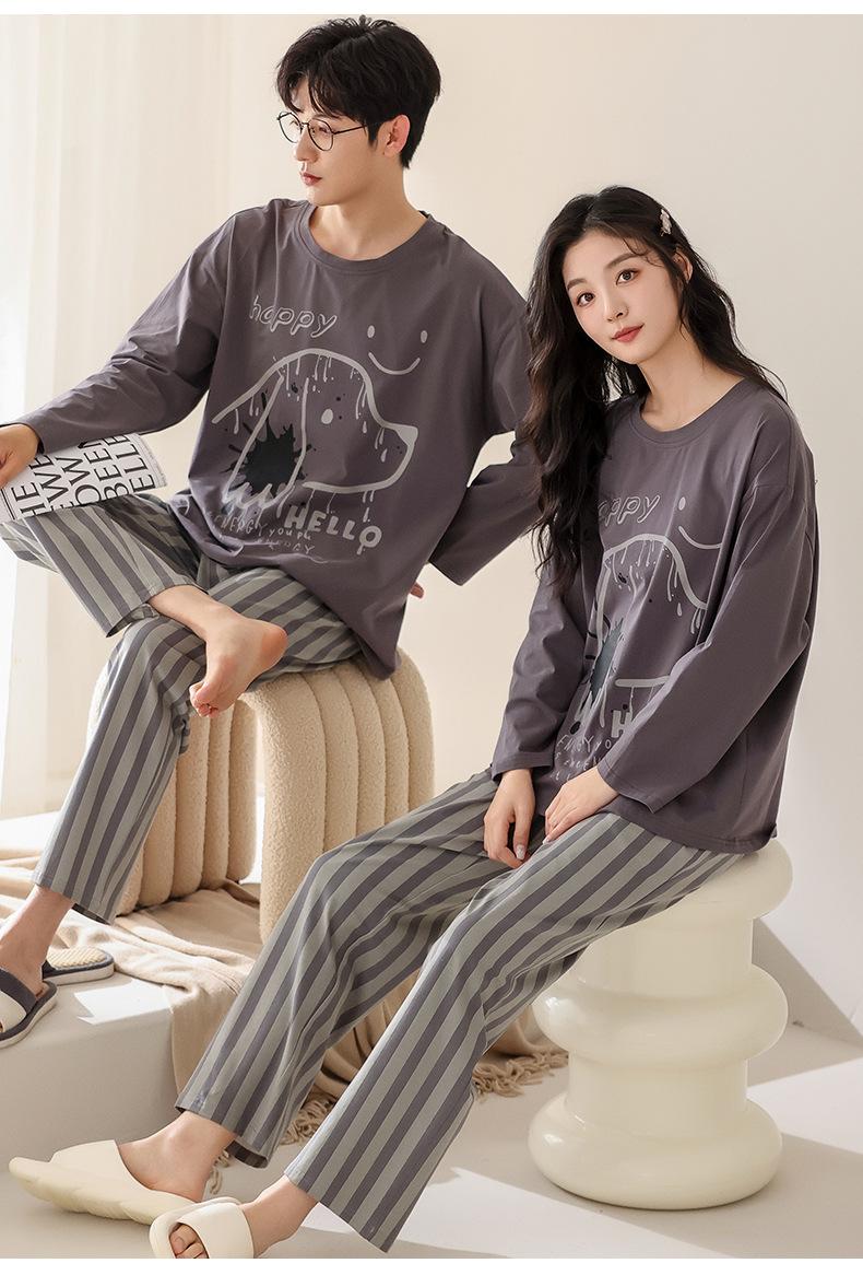 Pijama de Primavera y Otoño para Mujer de Algodón Puro de Manga Larga y Pantalón Largo, Moderno, de Dibujos Animados para Pareja, Ropa de Casa, Conjunto de Dos Piezas
