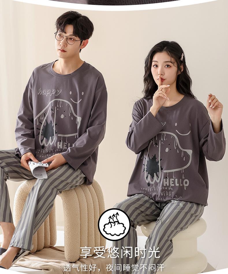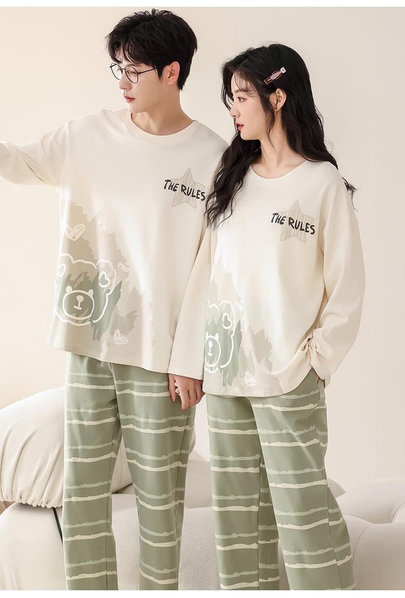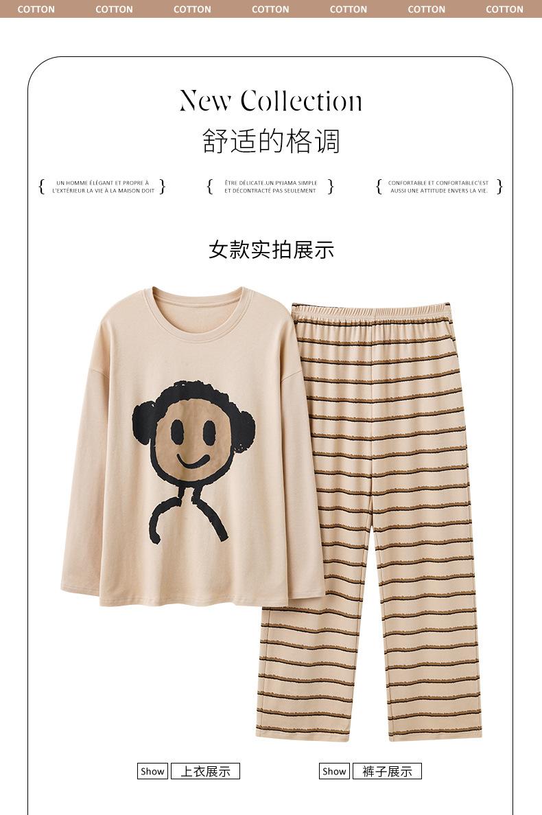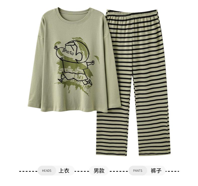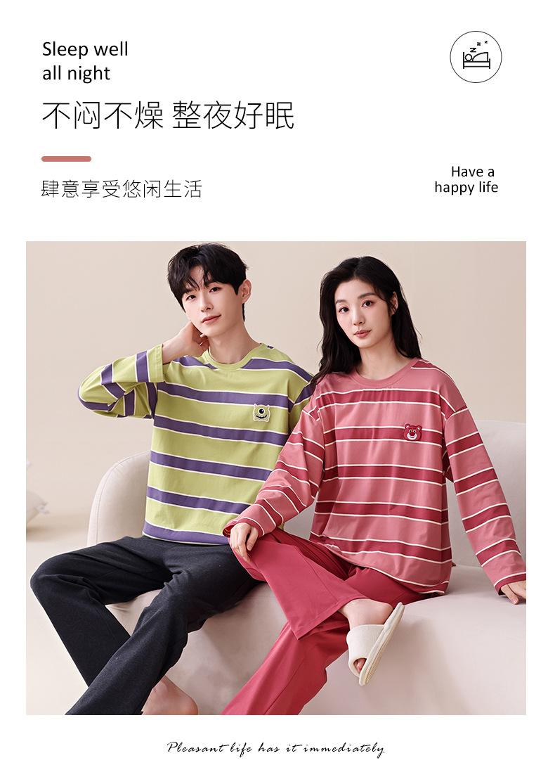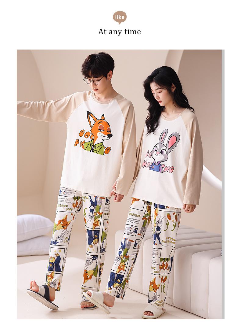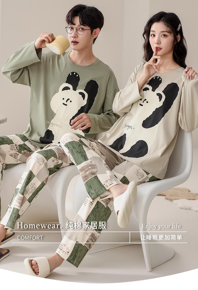 Pijama de Primavera y Otoño para Mujer de Algodón Puro de Manga Larga y Pantalón Largo, Moderno, de Dibujos Animados para Pareja, Ropa de Casa, Conjunto de Dos Piezas