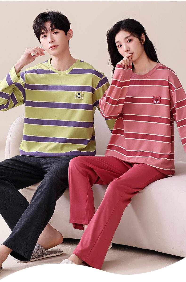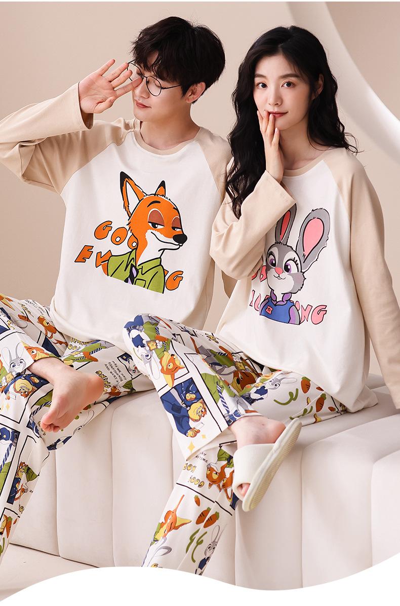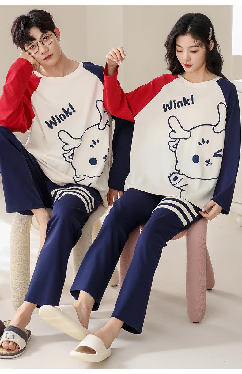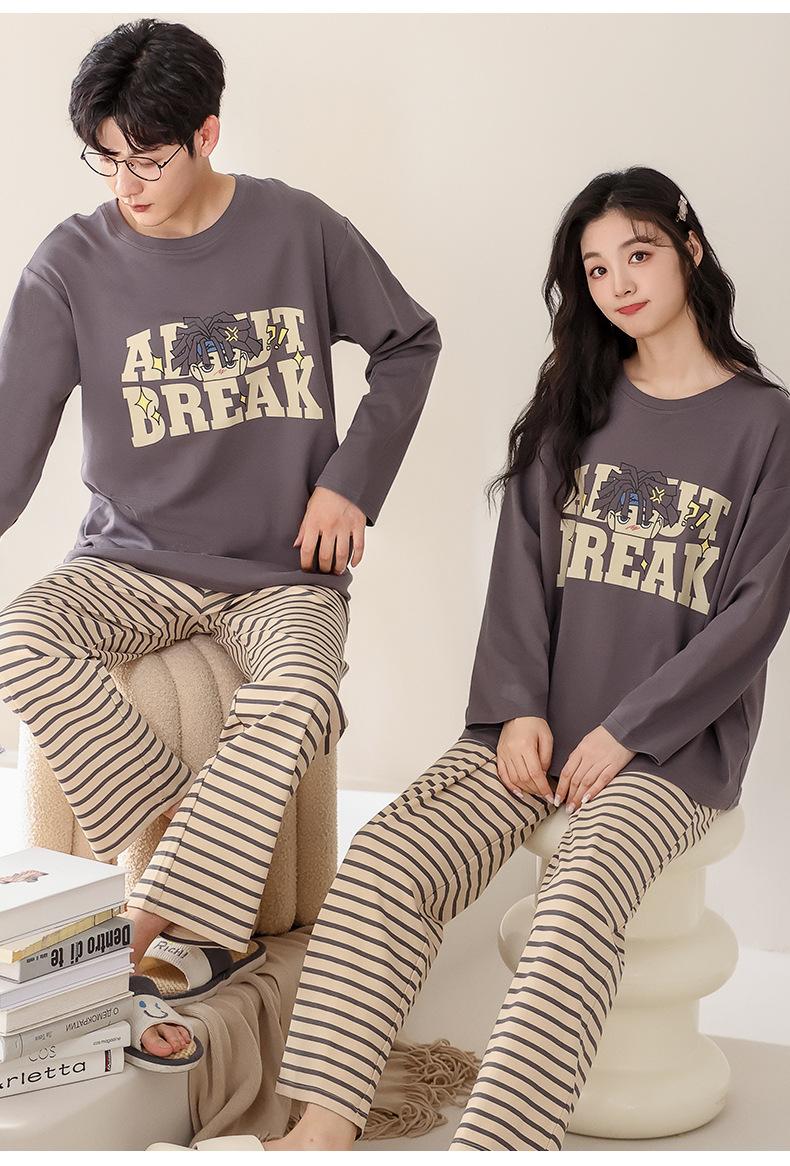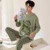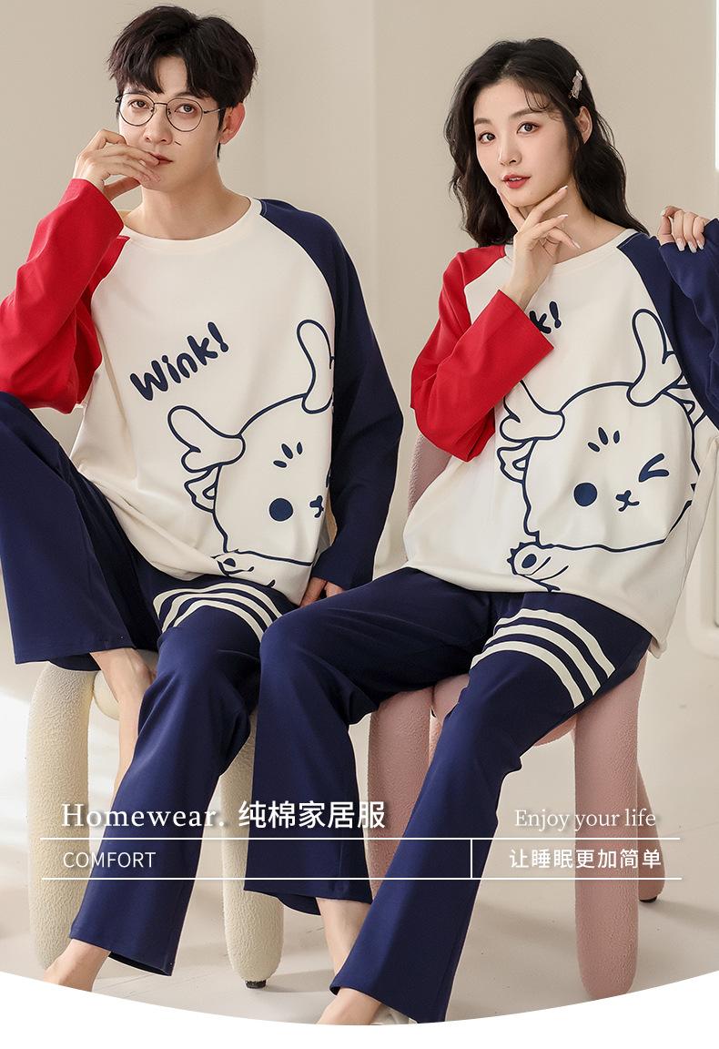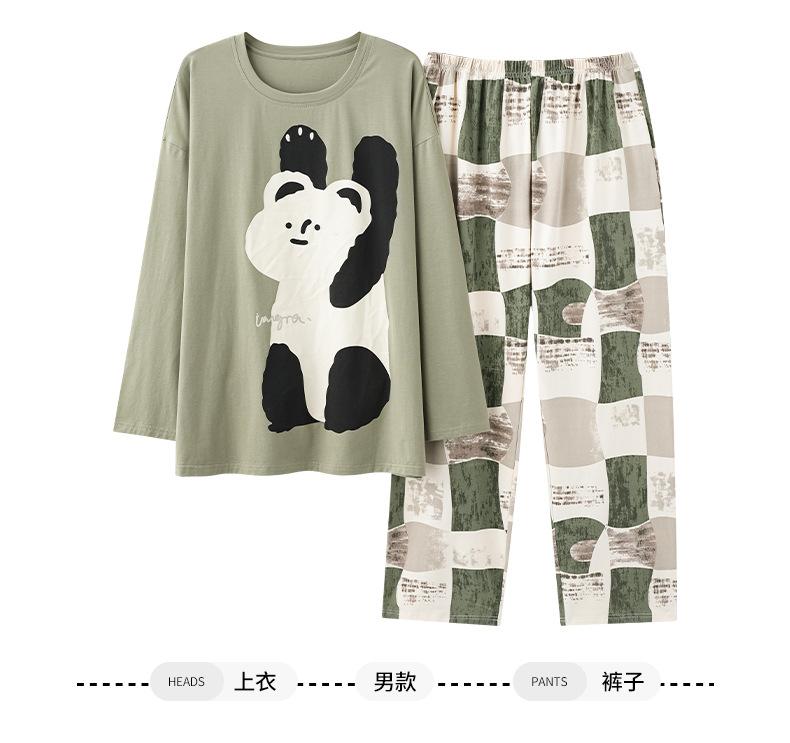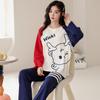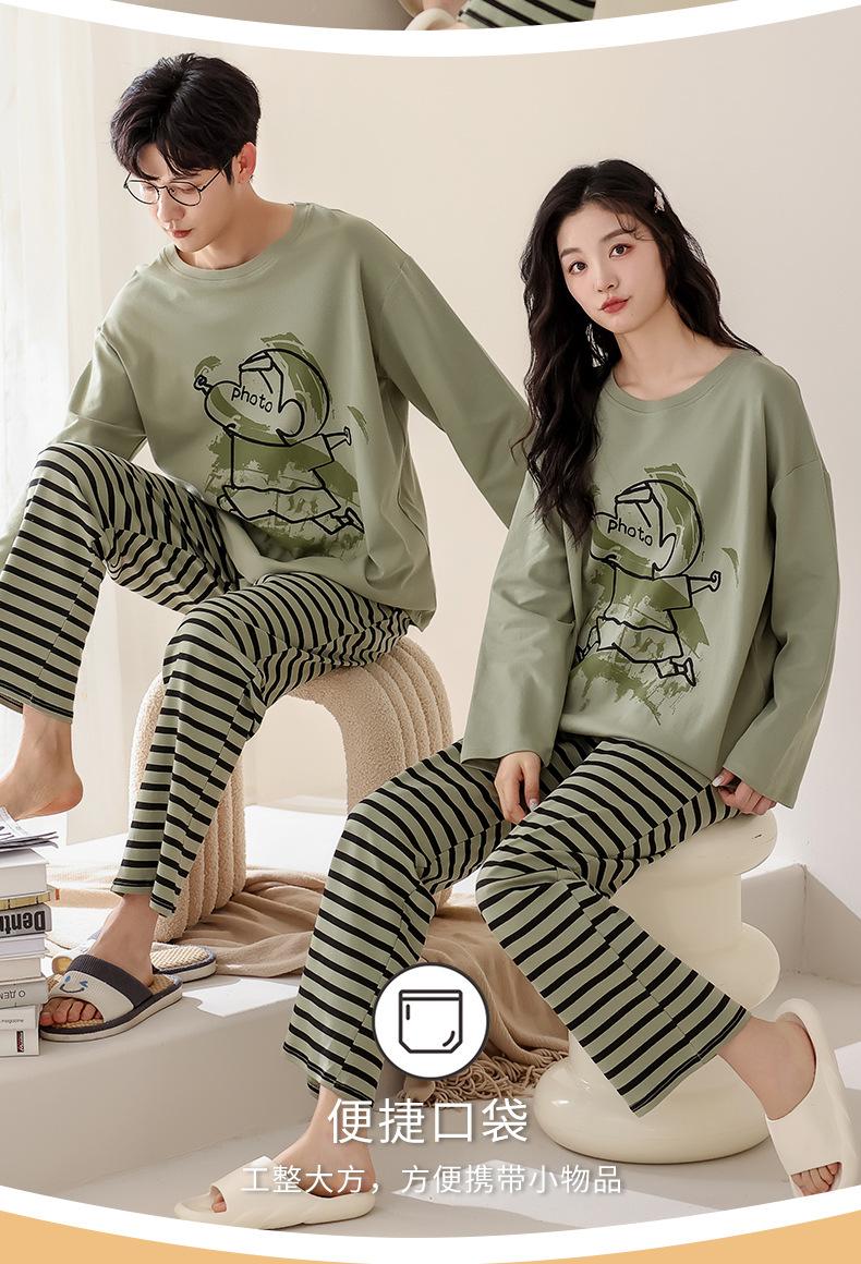 Pijama de Primavera y Otoño para Mujer de Algodón Puro de Manga Larga y Pantalón Largo, Moderno, de Dibujos Animados para Pareja, Ropa de Casa, Conjunto de Dos Piezas