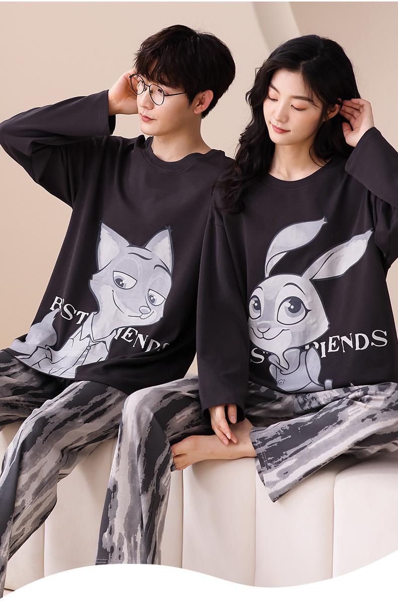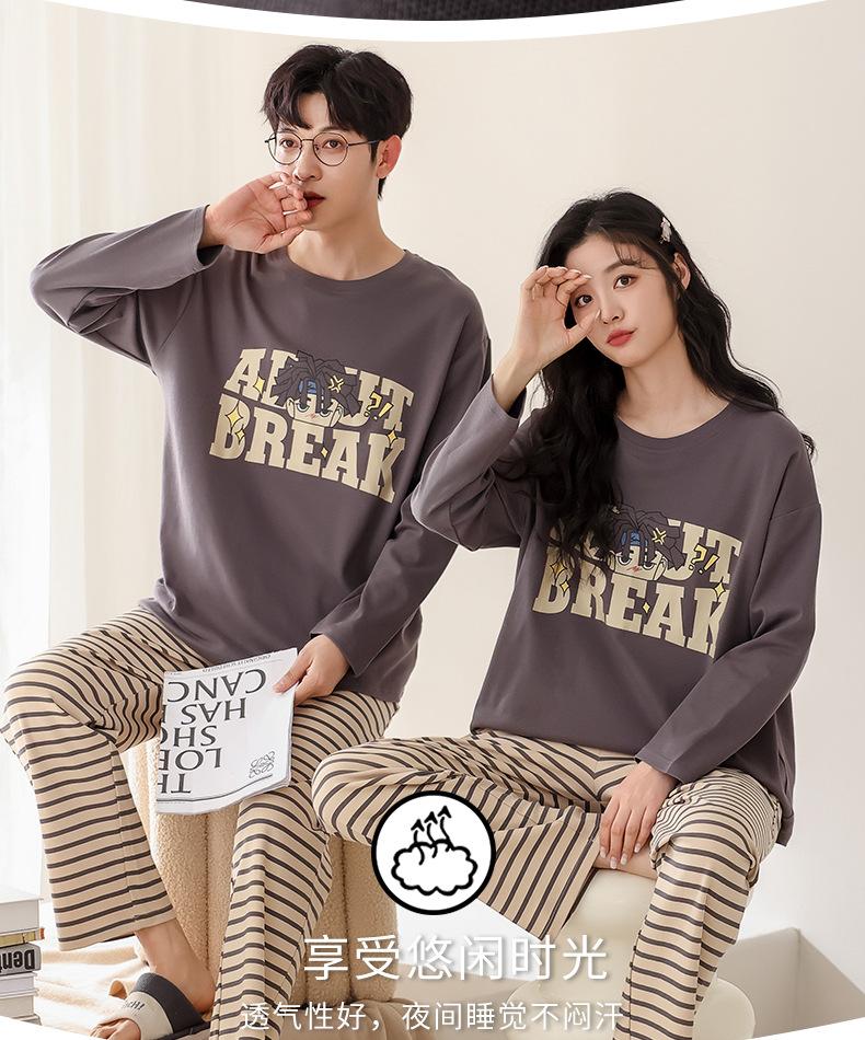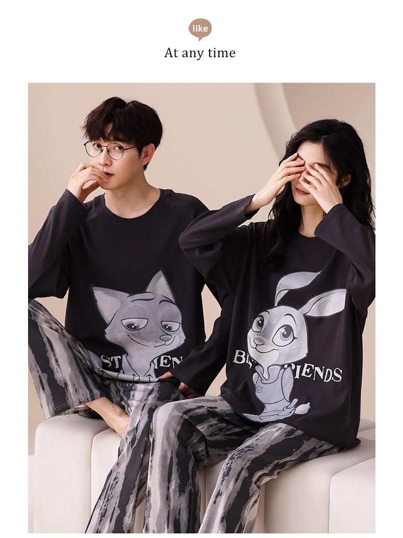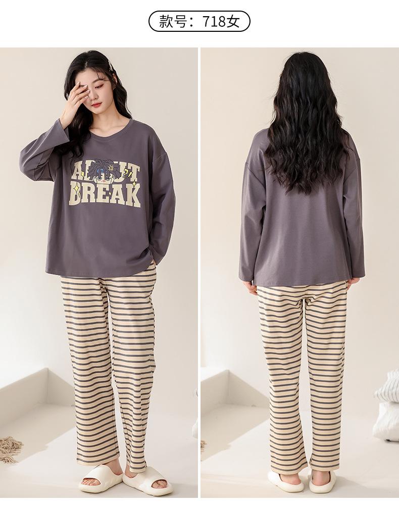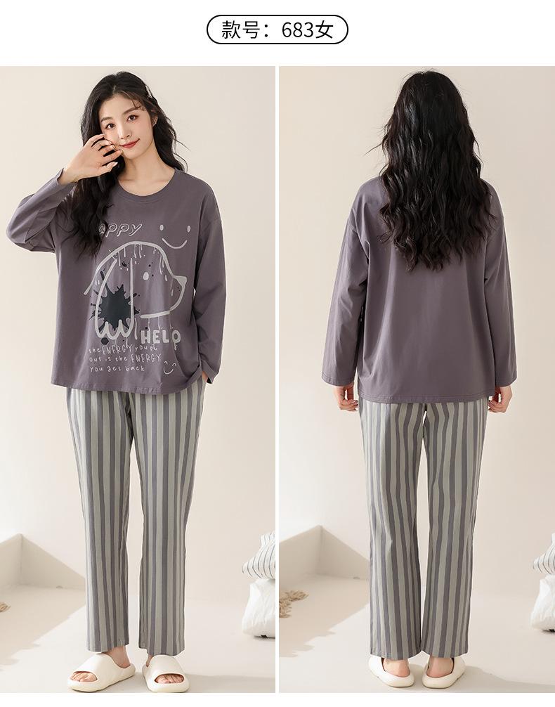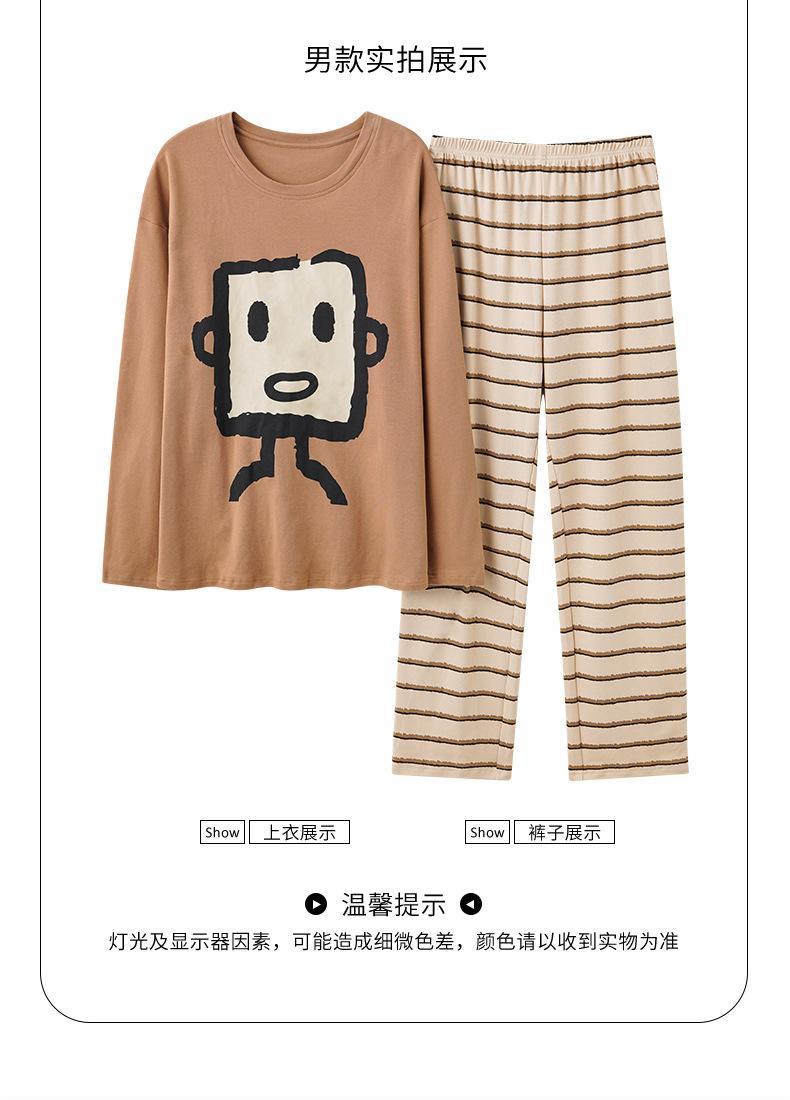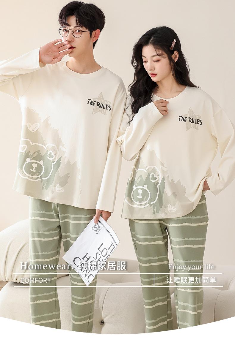 Pijama de Primavera y Otoño para Mujer de Algodón Puro de Manga Larga y Pantalón Largo, Moderno, de Dibujos Animados para Pareja, Ropa de Casa, Conjunto de Dos Piezas