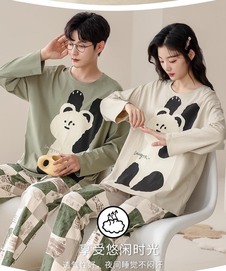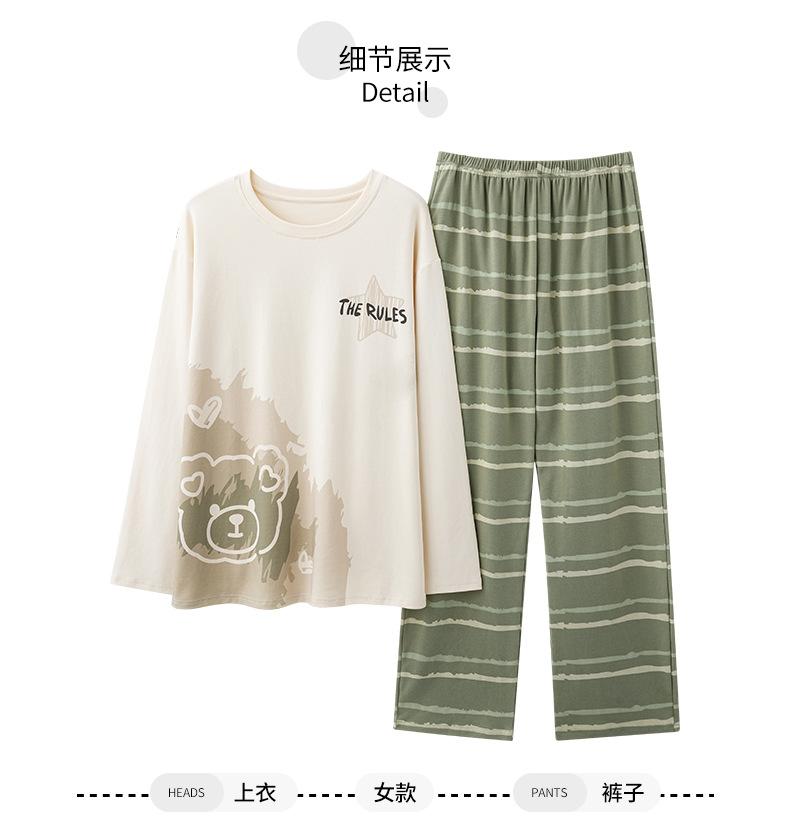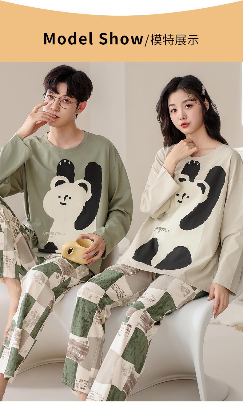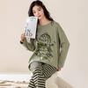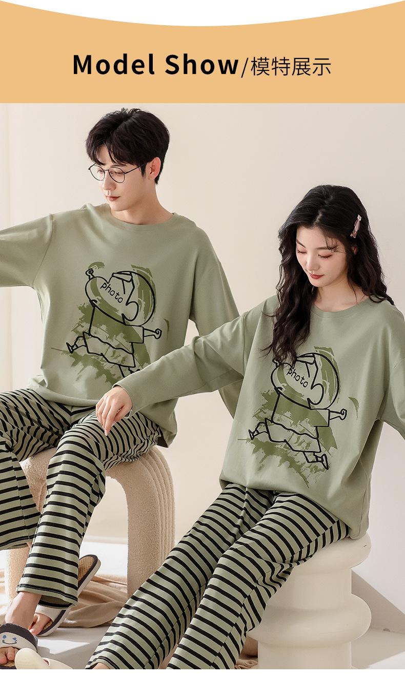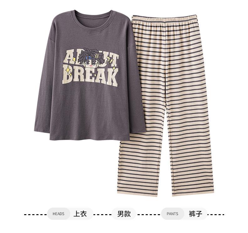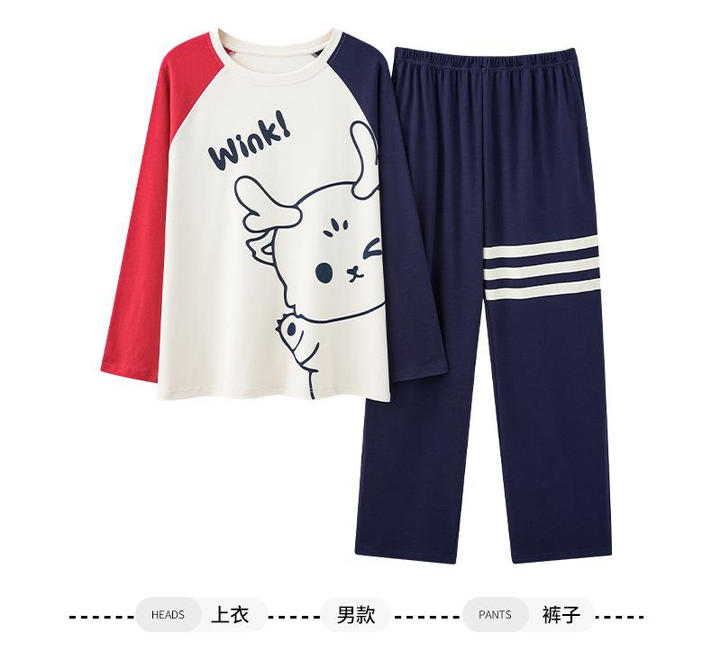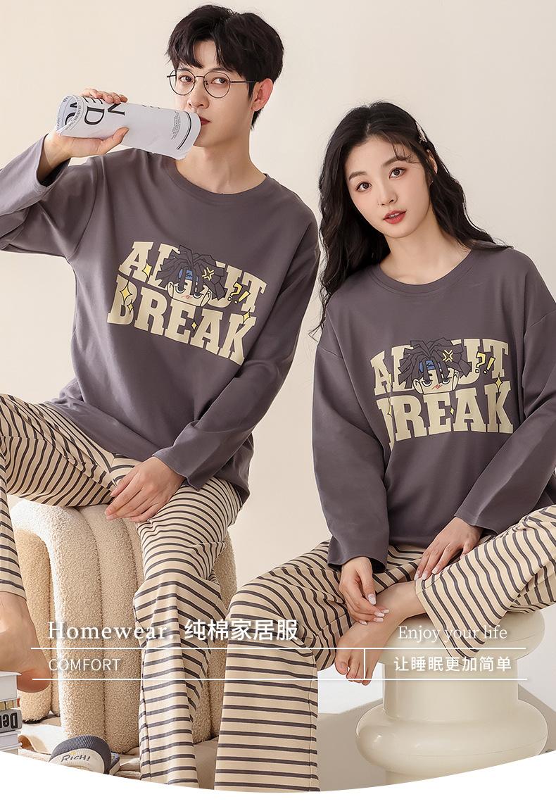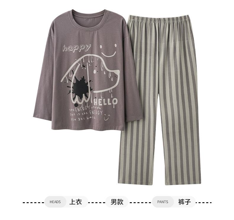 Pijama de Primavera y Otoño para Mujer de Algodón Puro de Manga Larga y Pantalón Largo, Moderno, de Dibujos Animados para Pareja, Ropa de Casa, Conjunto de Dos Piezas