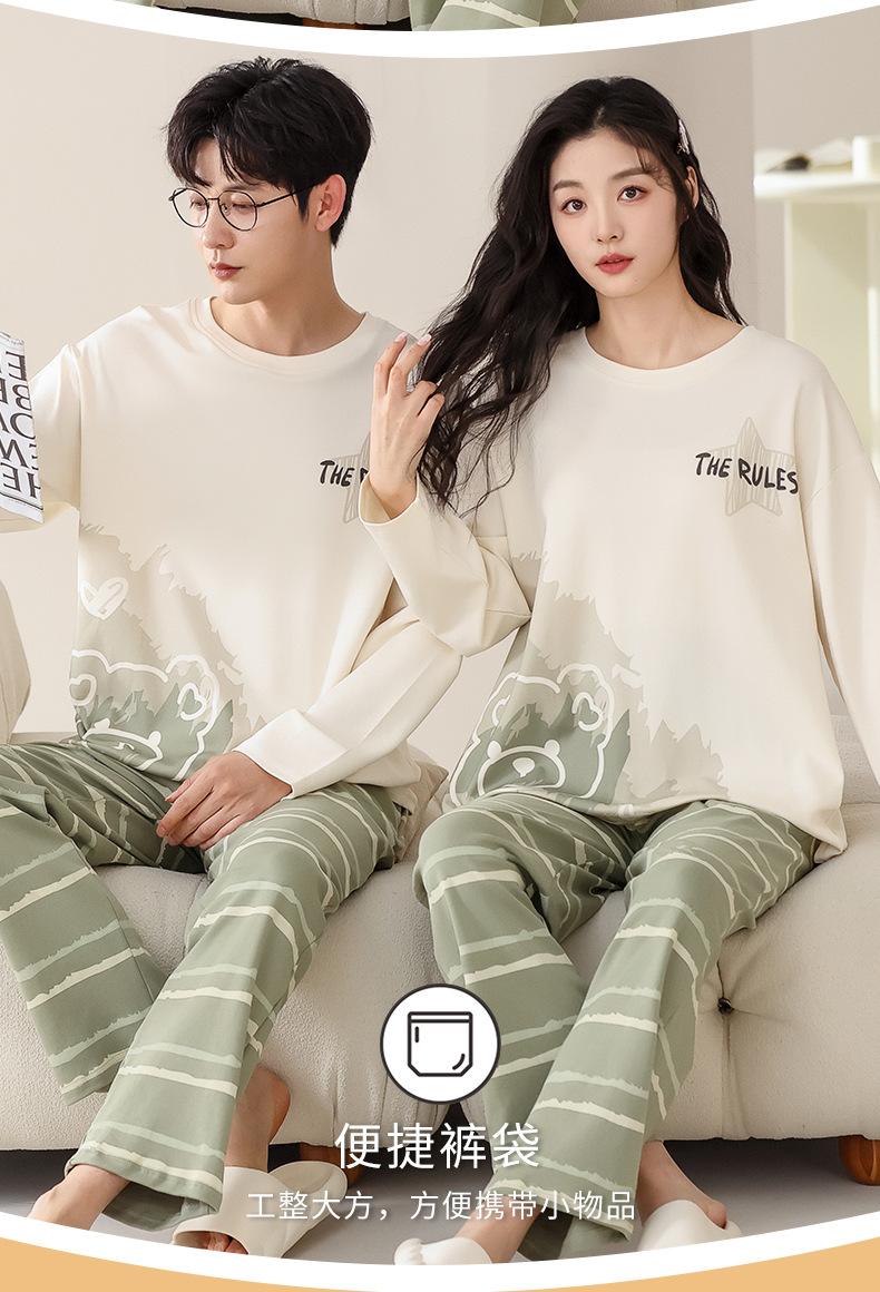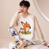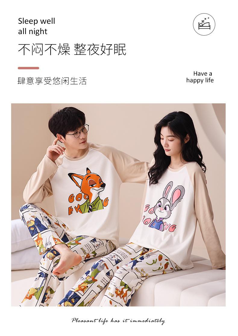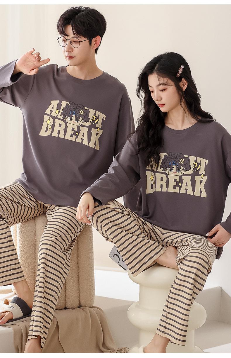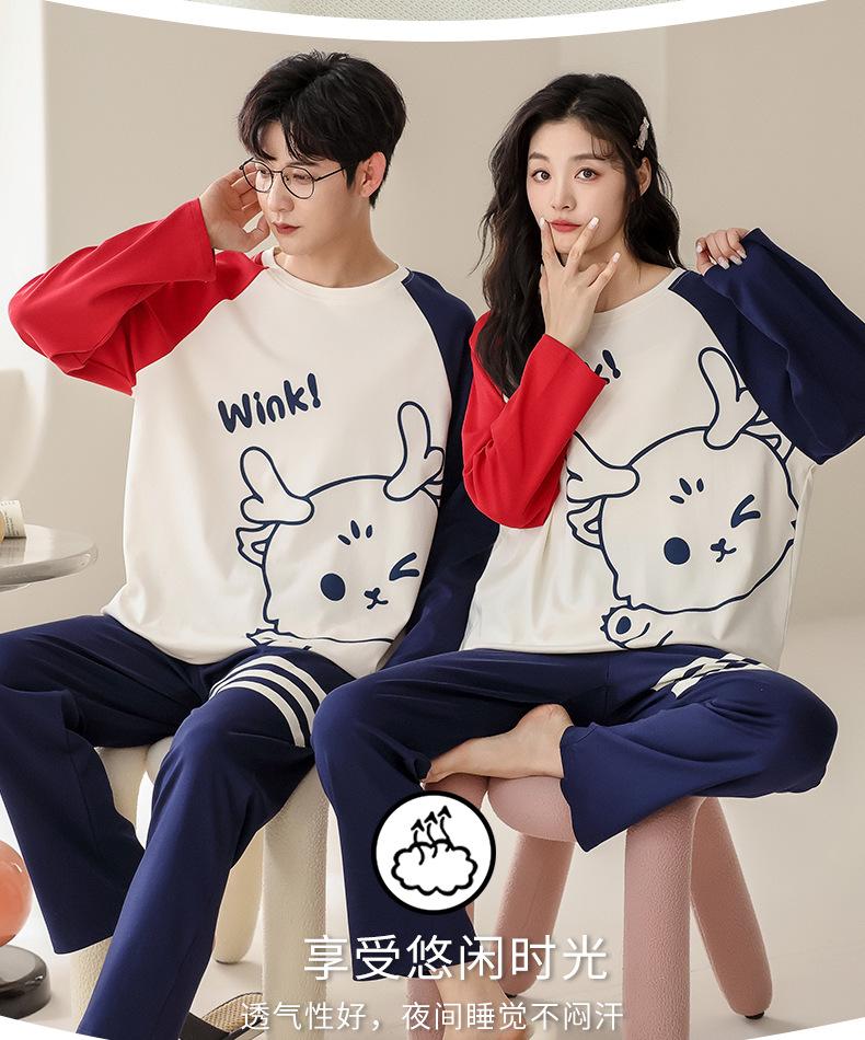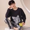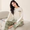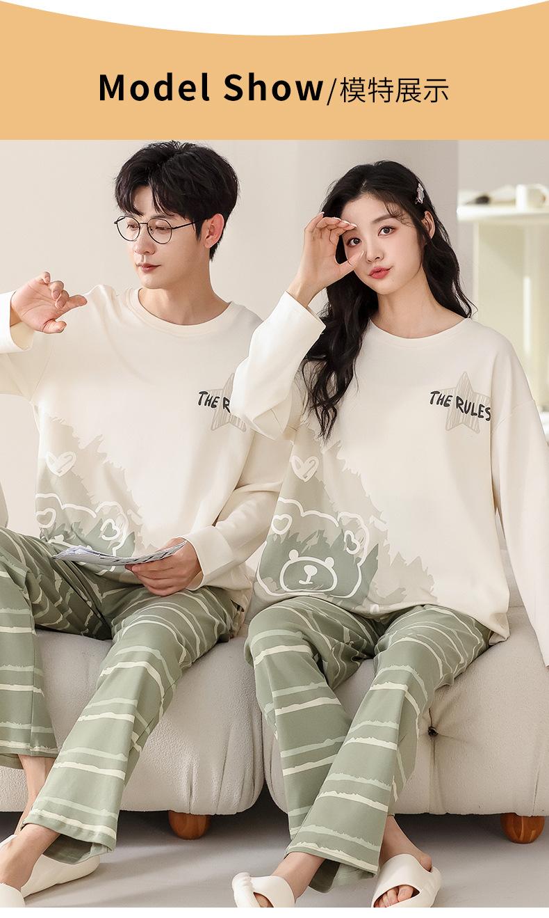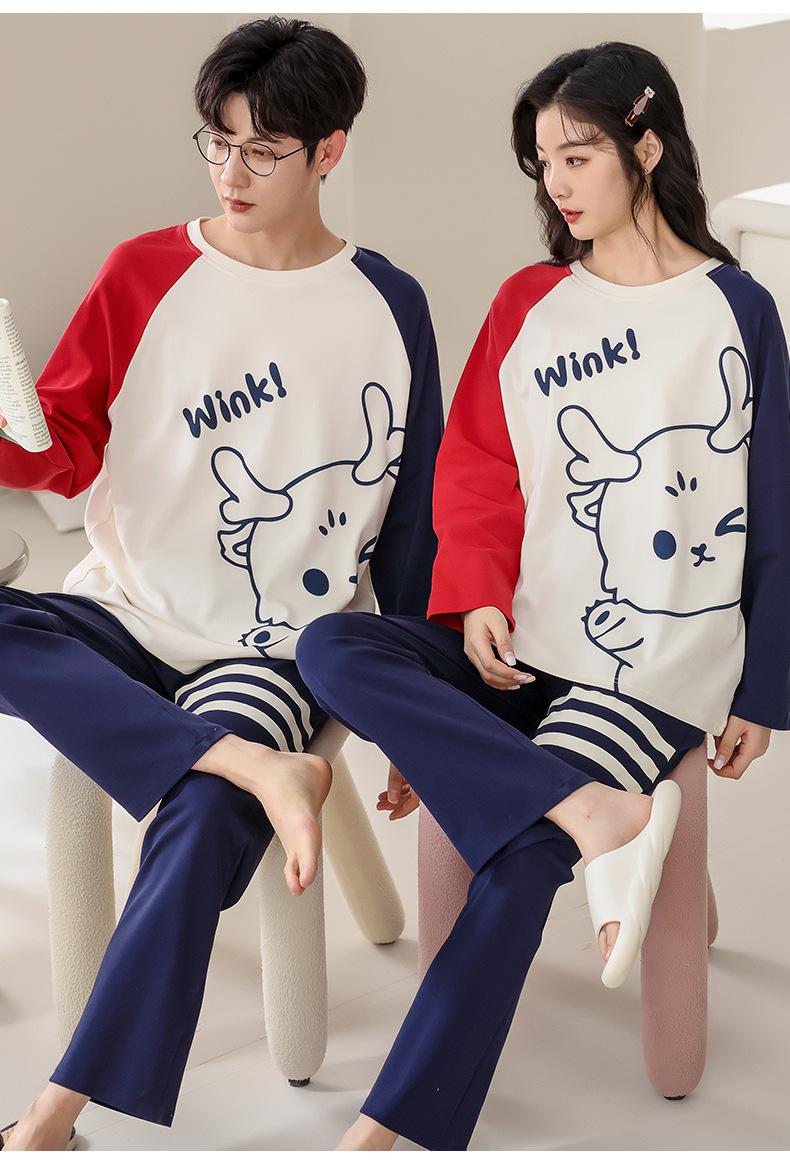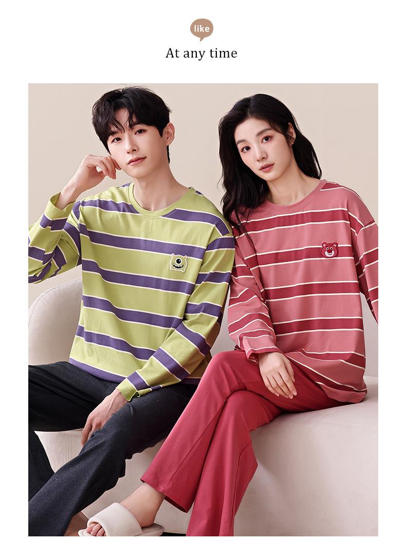 Pijama de Primavera y Otoño para Mujer de Algodón Puro de Manga Larga y Pantalón Largo, Moderno, de Dibujos Animados para Pareja, Ropa de Casa, Conjunto de Dos Piezas