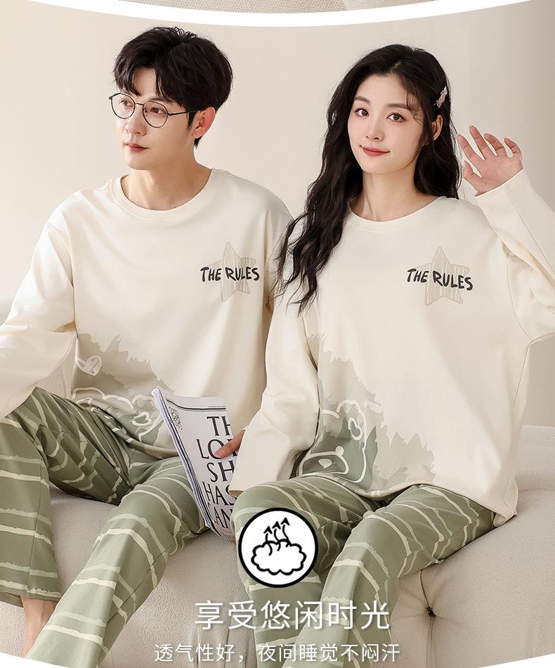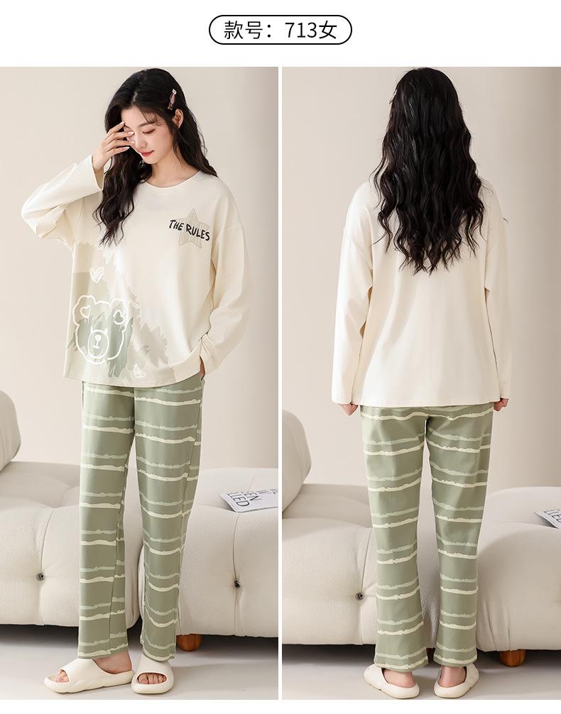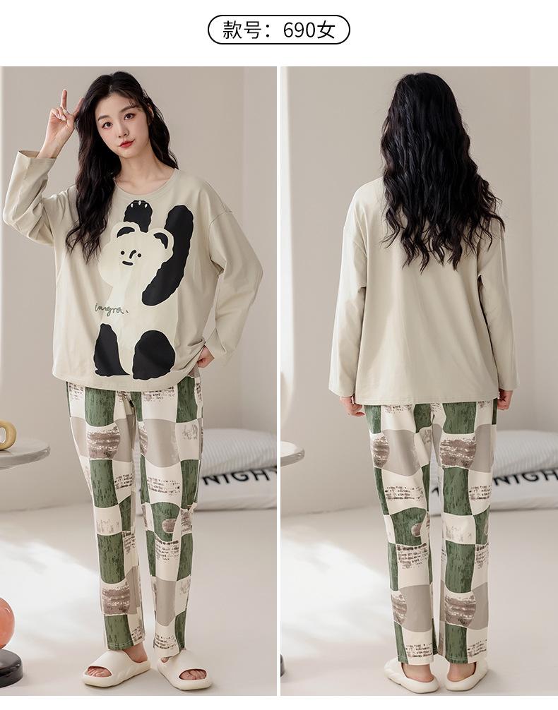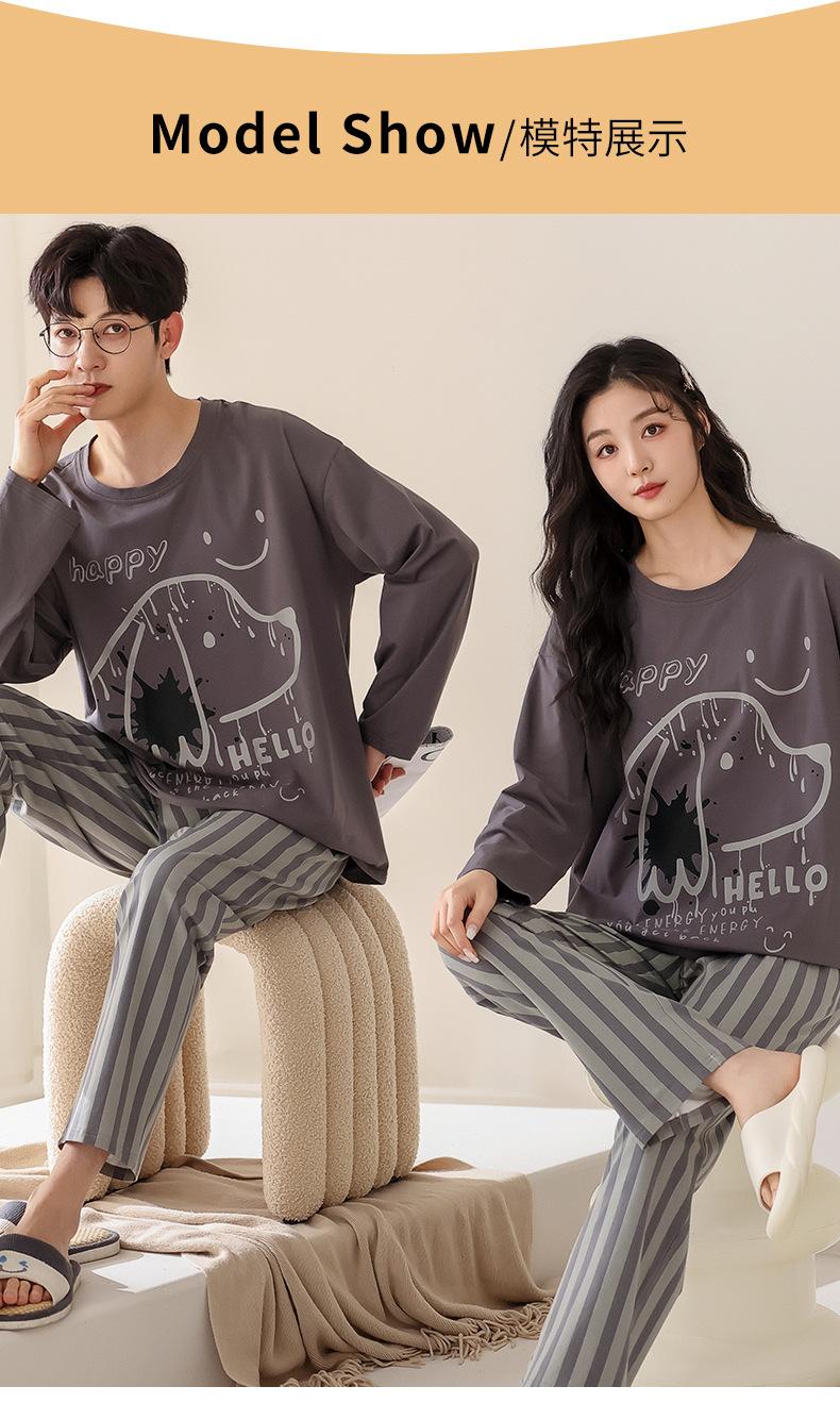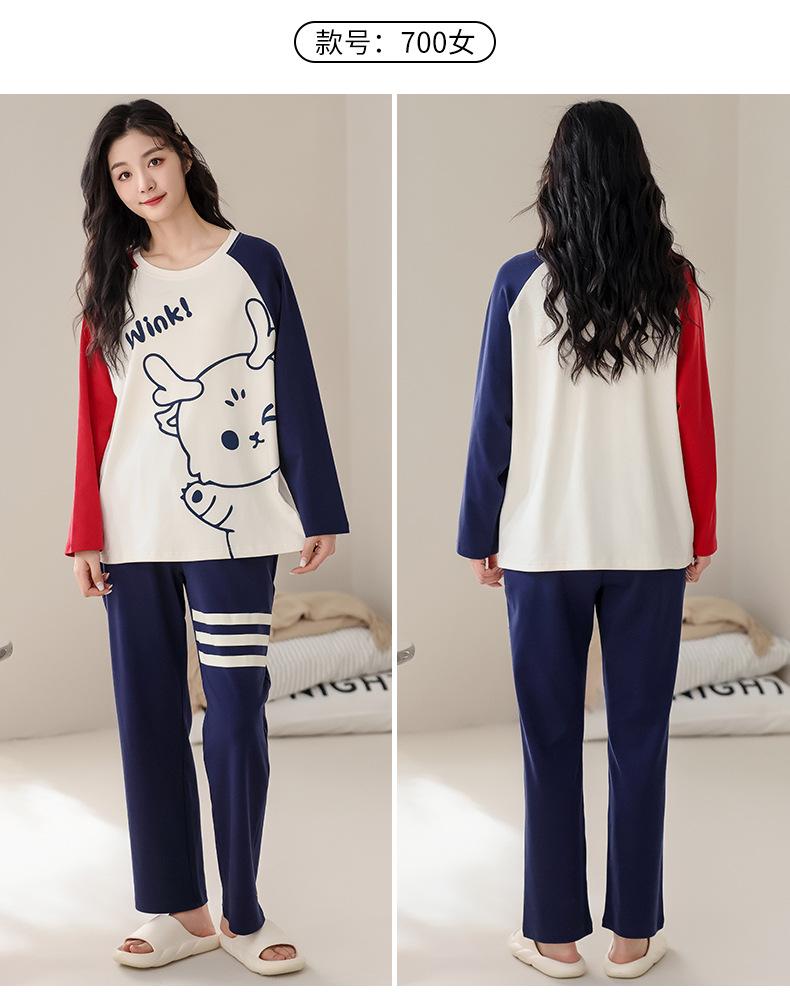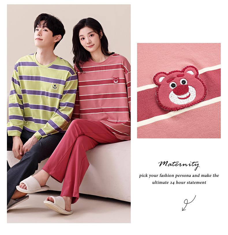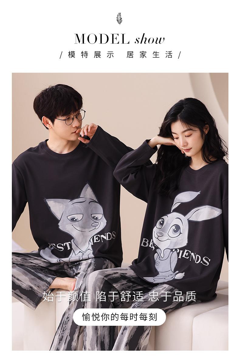 Pijama de Primavera y Otoño para Mujer de Algodón Puro de Manga Larga y Pantalón Largo, Moderno, de Dibujos Animados para Pareja, Ropa de Casa, Conjunto de Dos Piezas