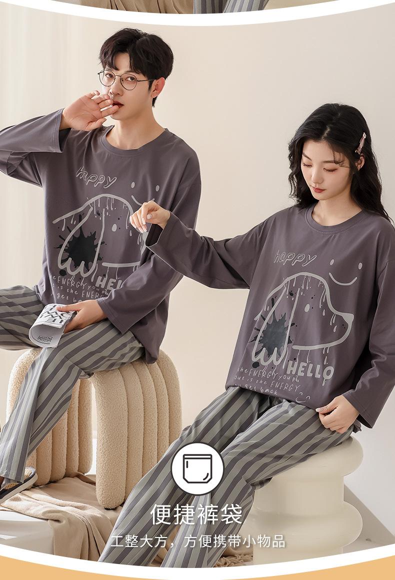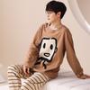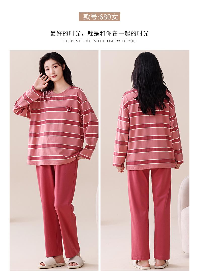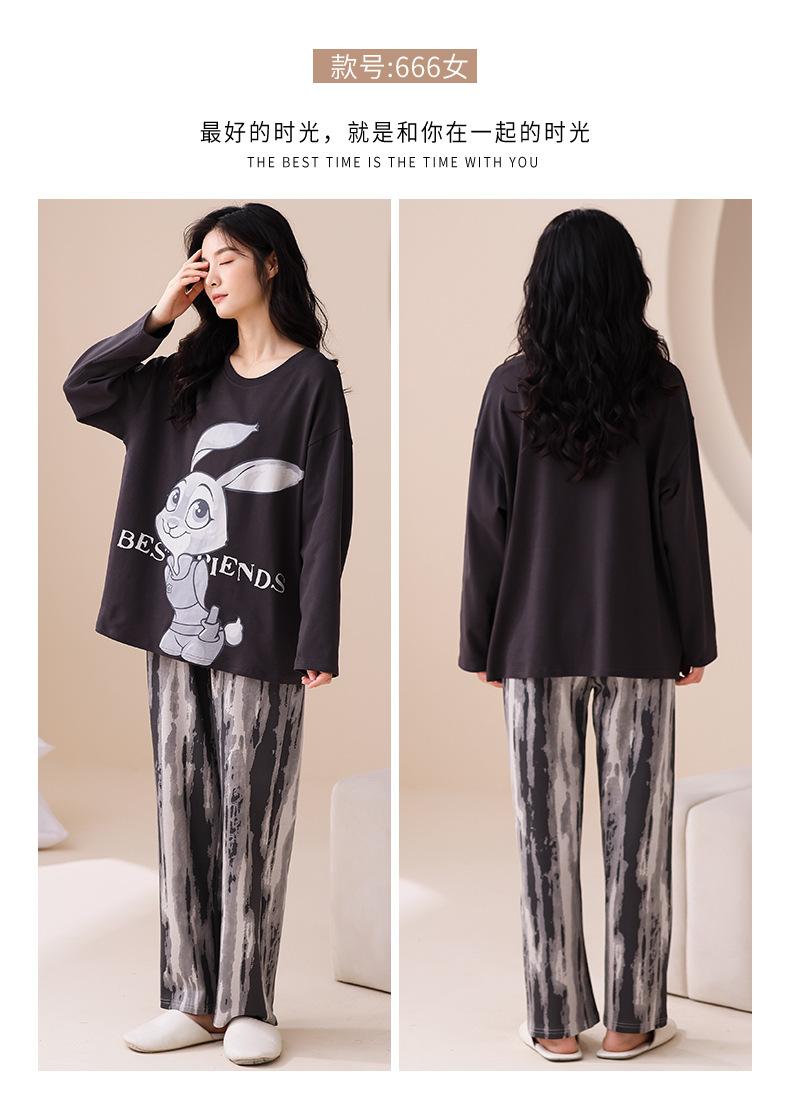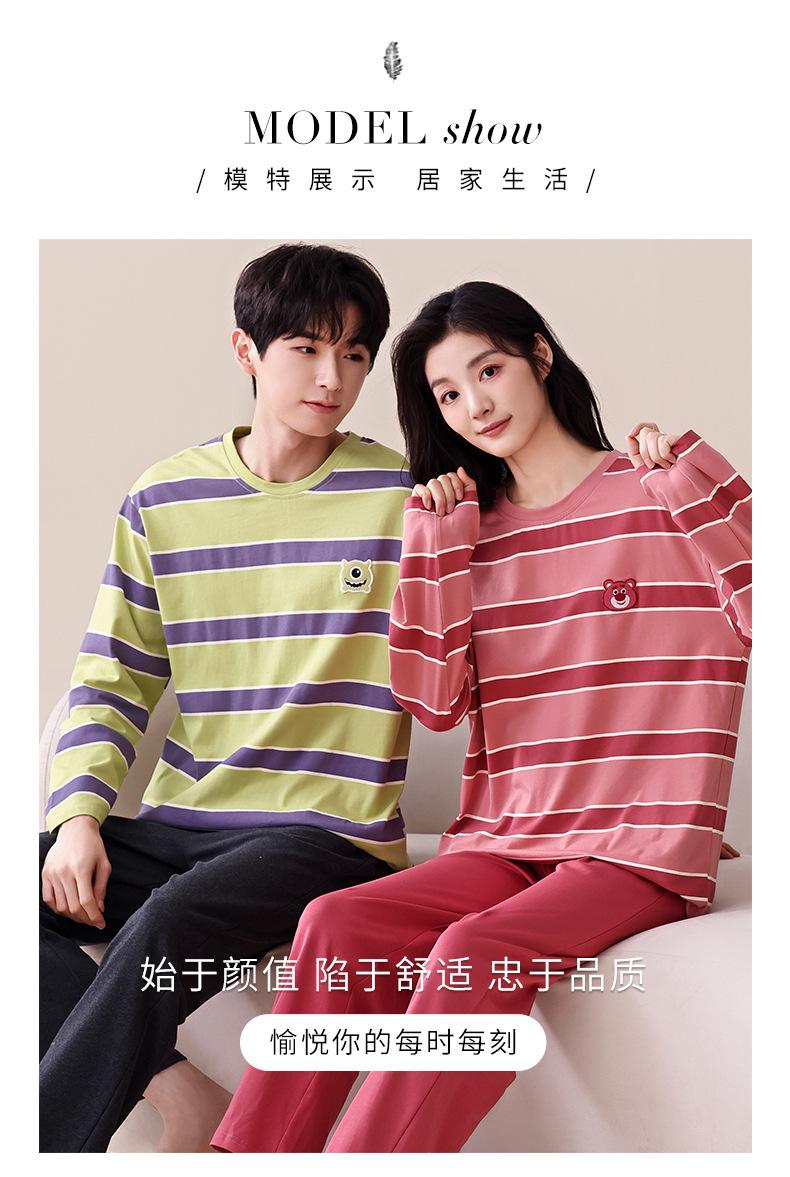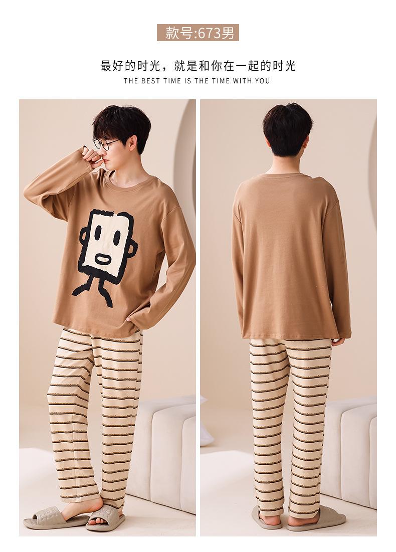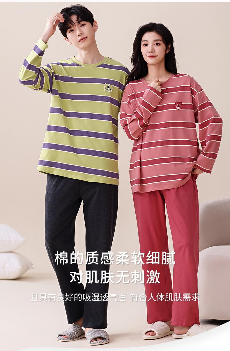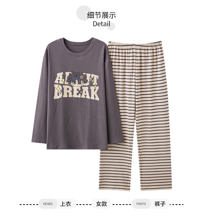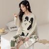 Pijama de Primavera y Otoño para Mujer de Algodón Puro de Manga Larga y Pantalón Largo, Moderno, de Dibujos Animados para Pareja, Ropa de Casa, Conjunto de Dos Piezas