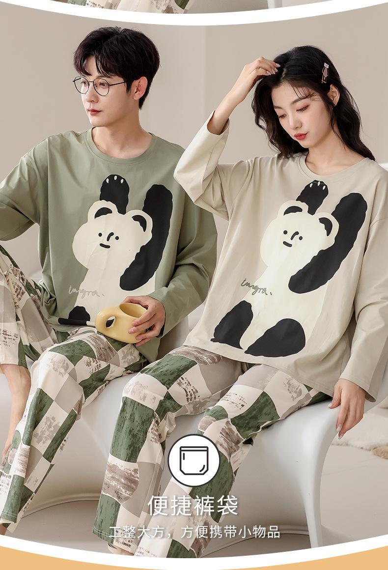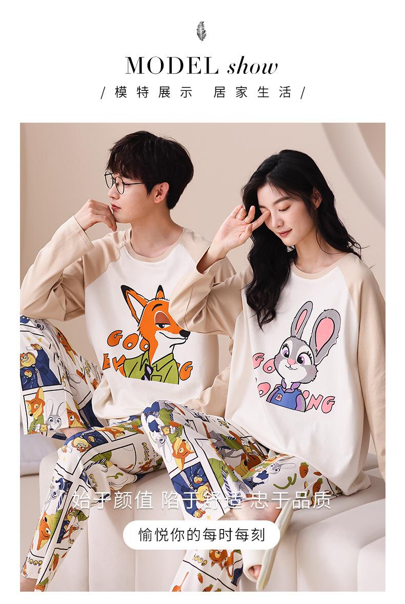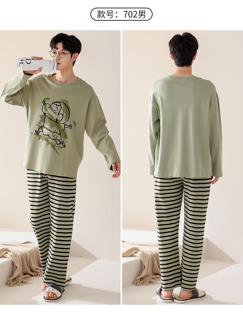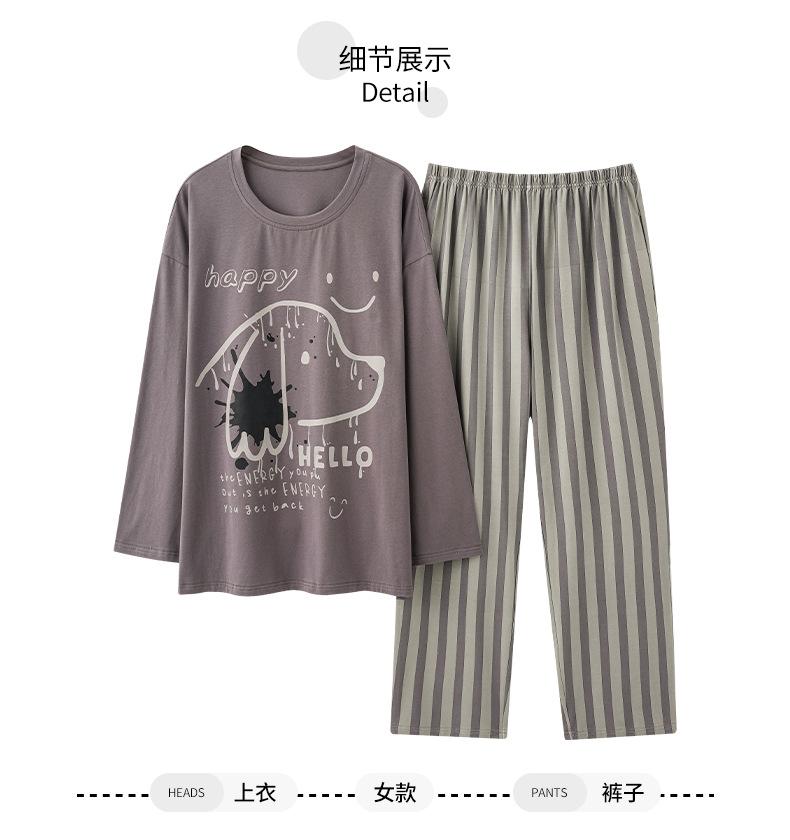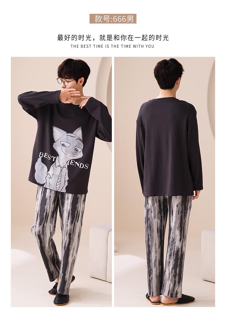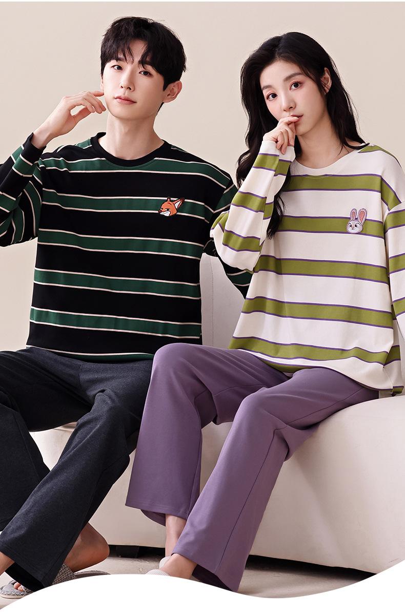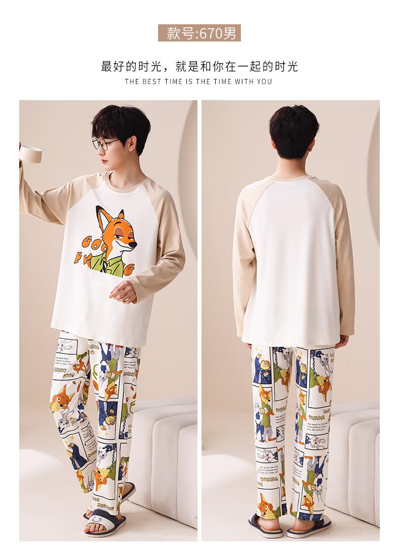 Pijama de Primavera y Otoño para Mujer de Algodón Puro de Manga Larga y Pantalón Largo, Moderno, de Dibujos Animados para Pareja, Ropa de Casa, Conjunto de Dos Piezas