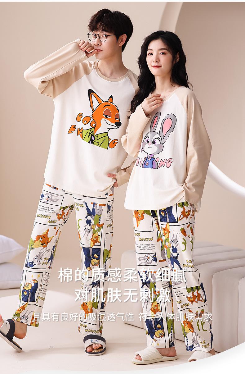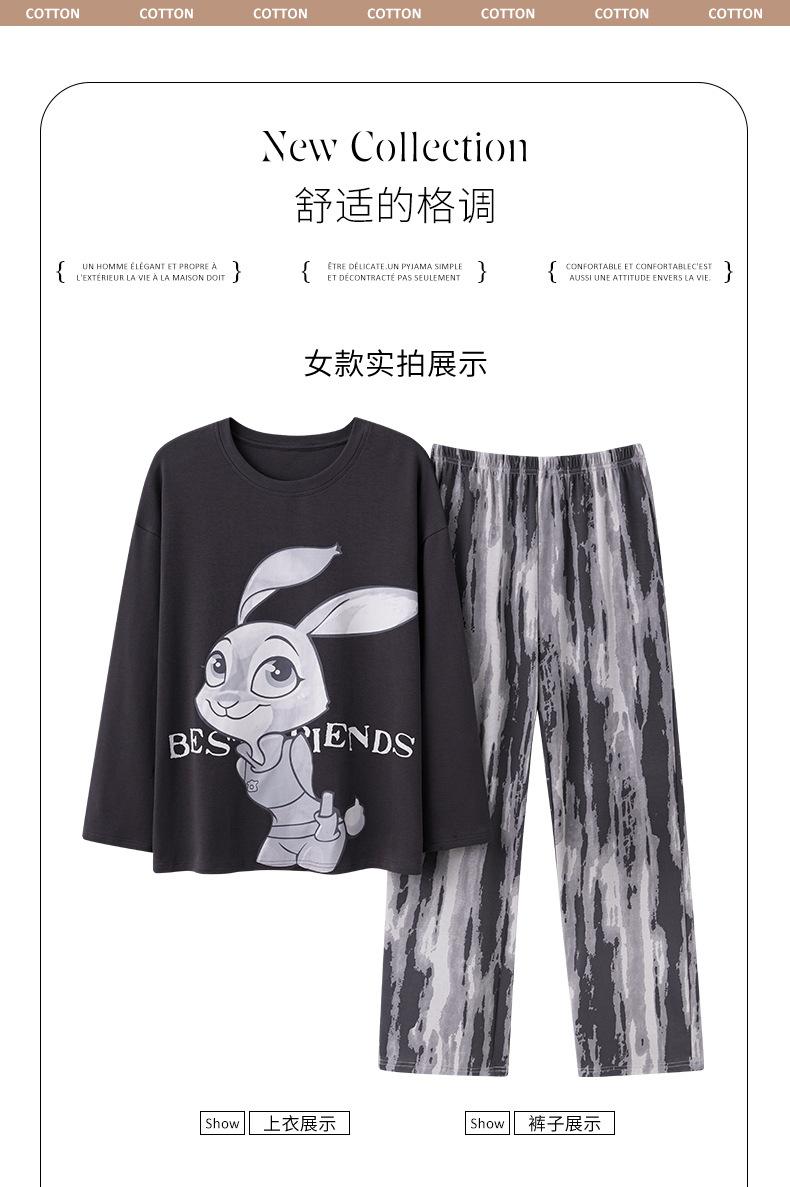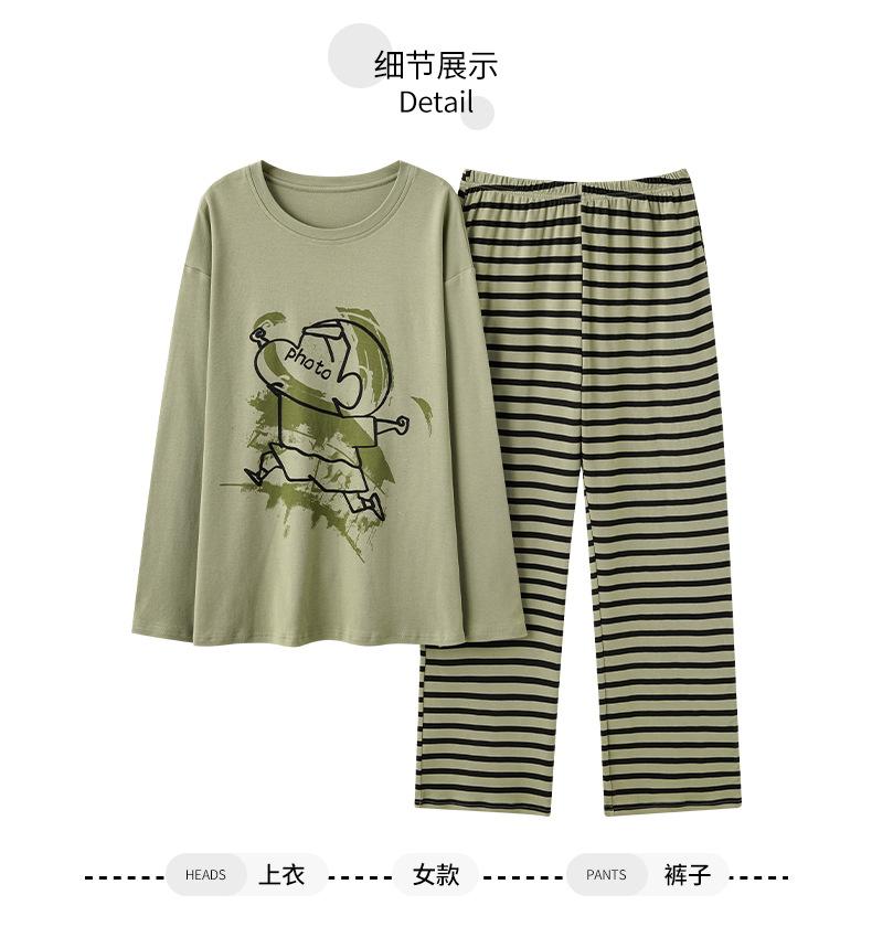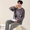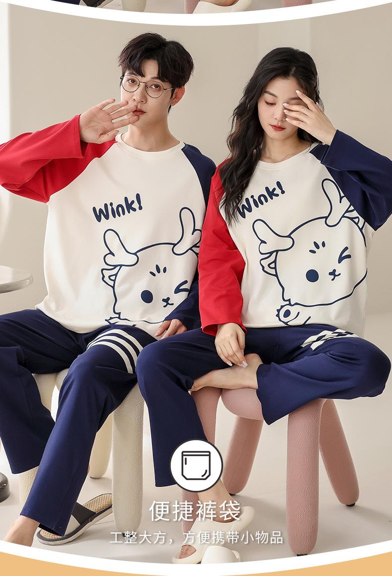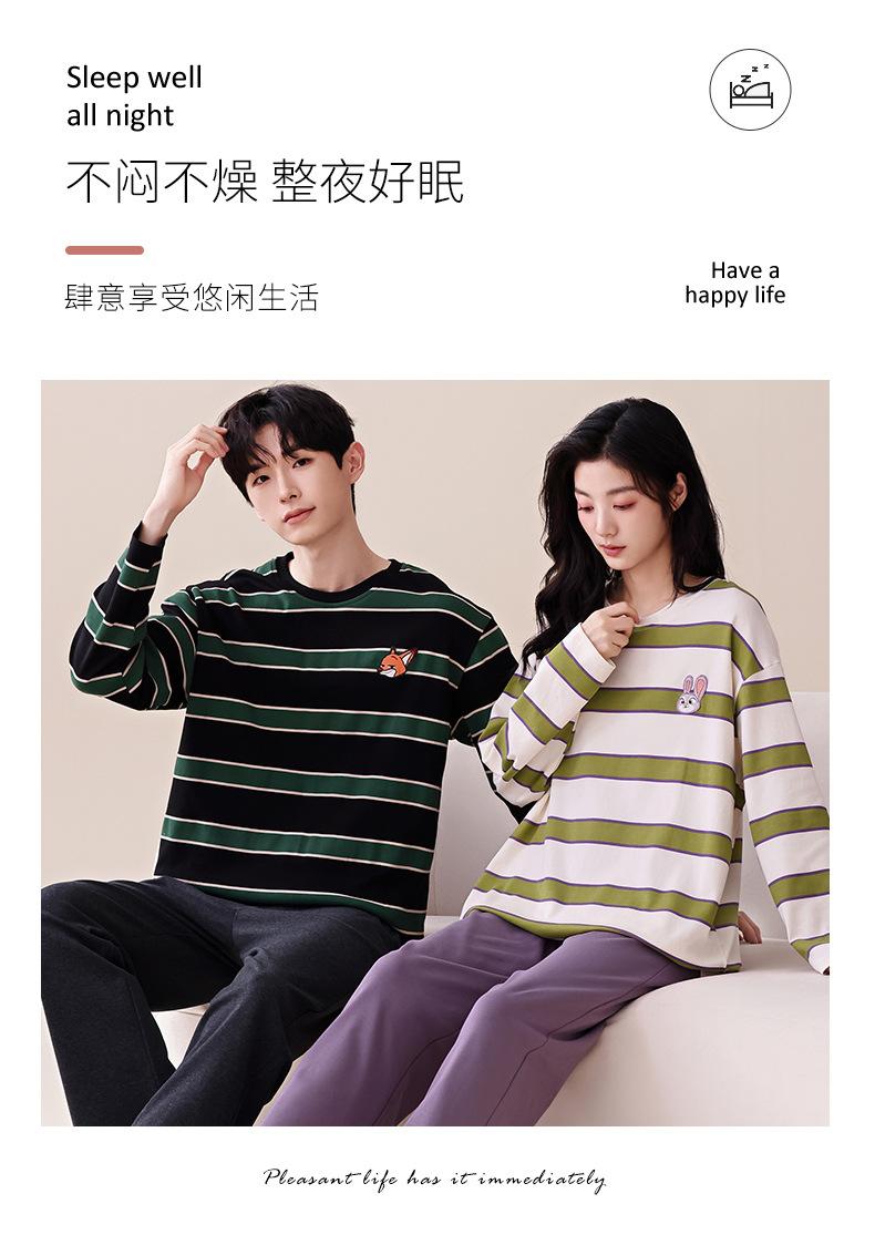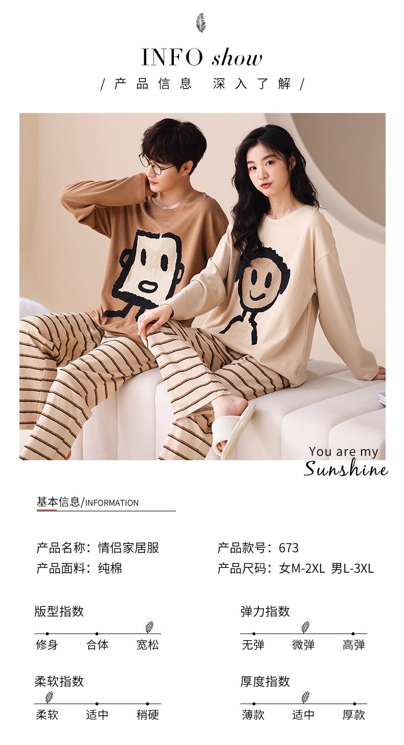 Pijama de Primavera y Otoño para Mujer de Algodón Puro de Manga Larga y Pantalón Largo, Moderno, de Dibujos Animados para Pareja, Ropa de Casa, Conjunto de Dos Piezas