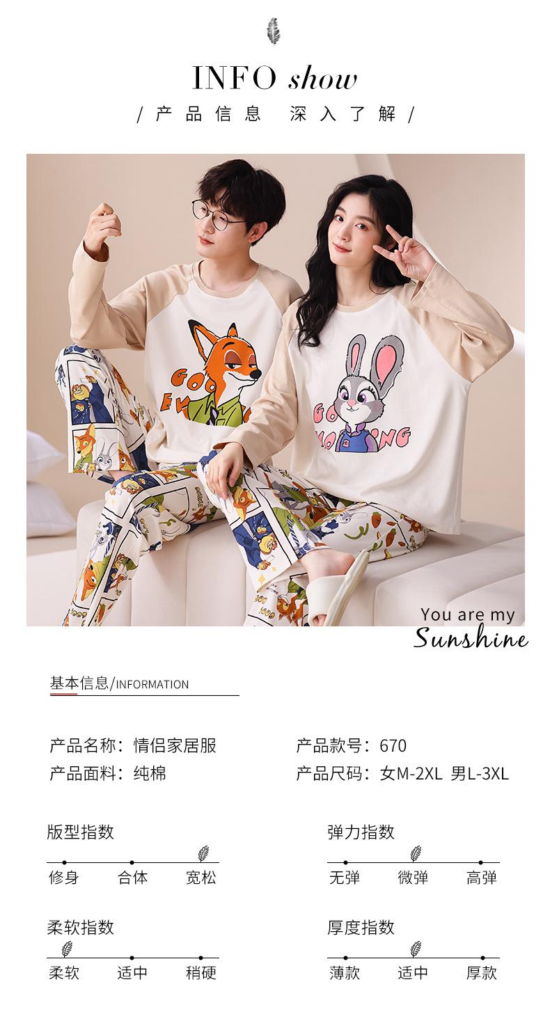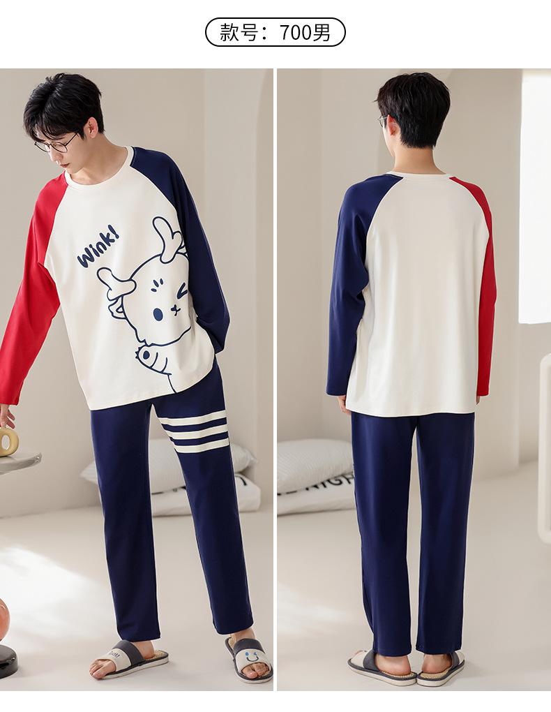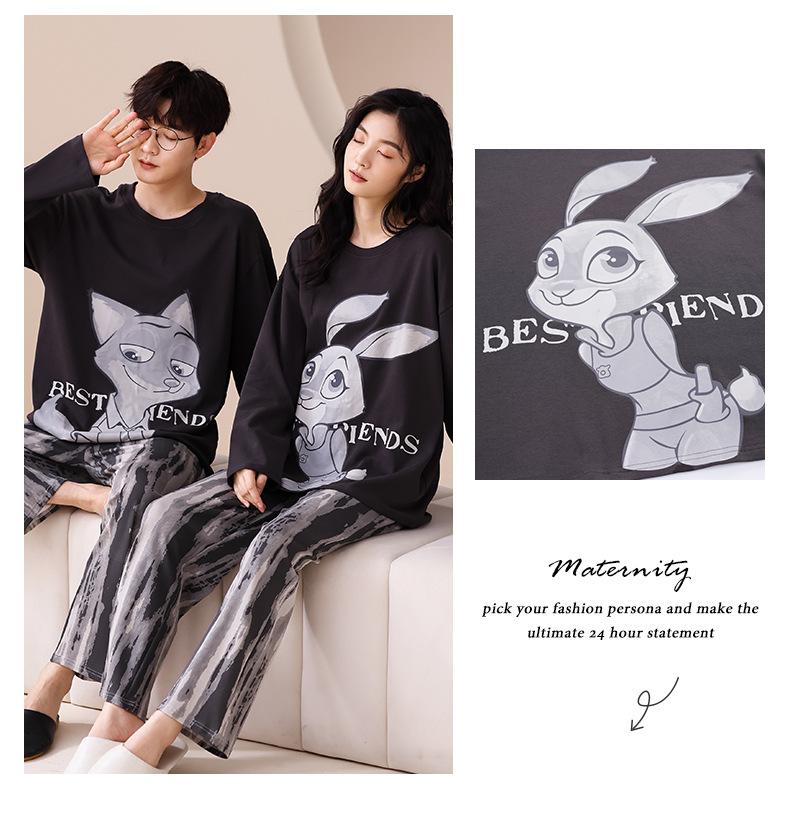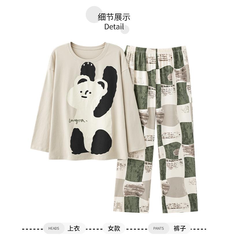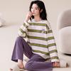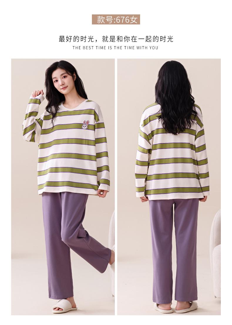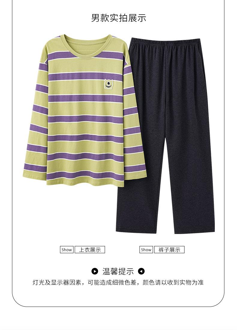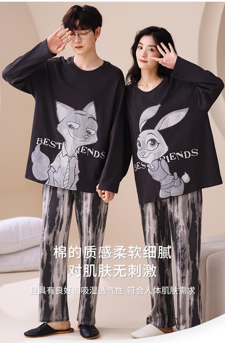 Pijama de Primavera y Otoño para Mujer de Algodón Puro de Manga Larga y Pantalón Largo, Moderno, de Dibujos Animados para Pareja, Ropa de Casa, Conjunto de Dos Piezas