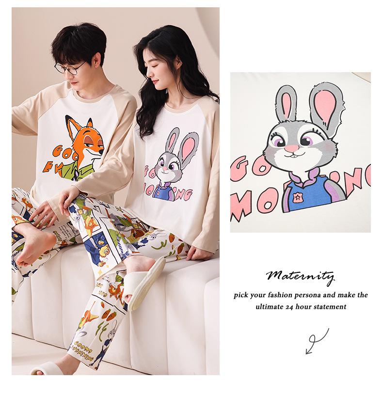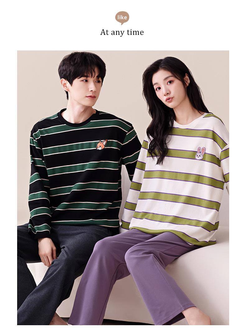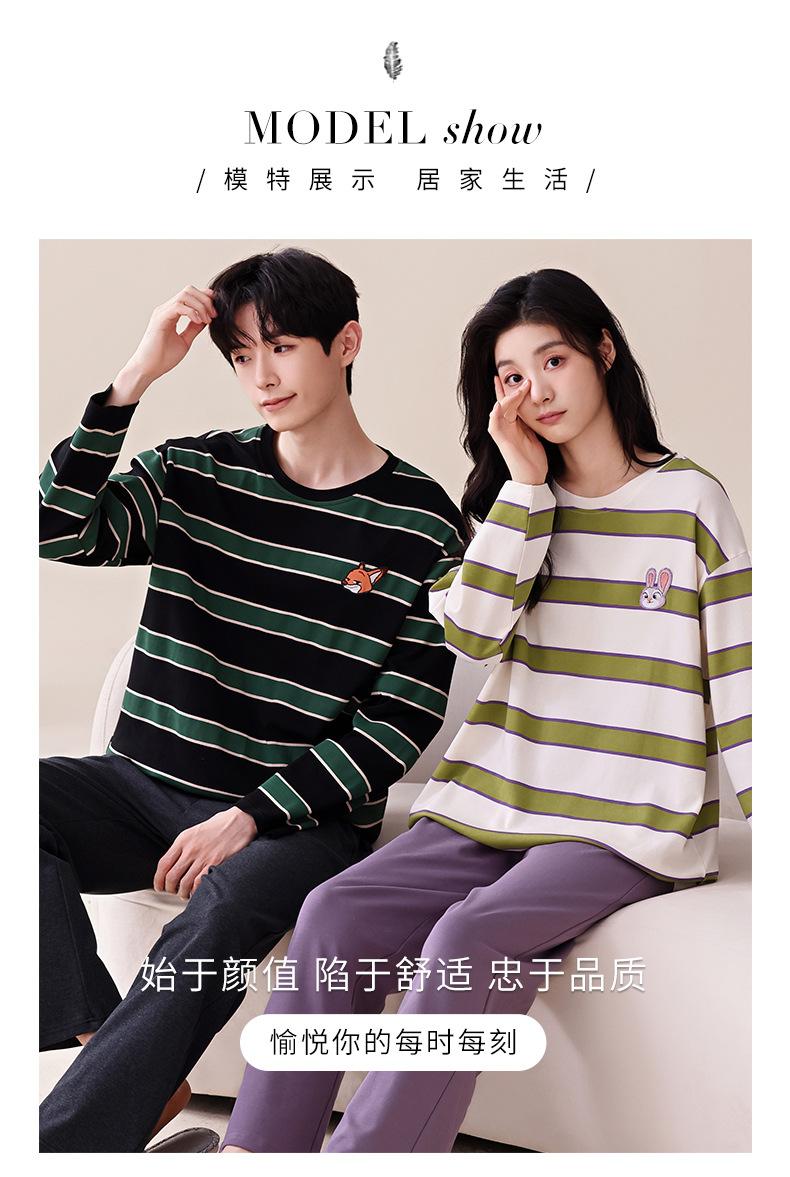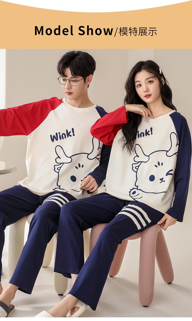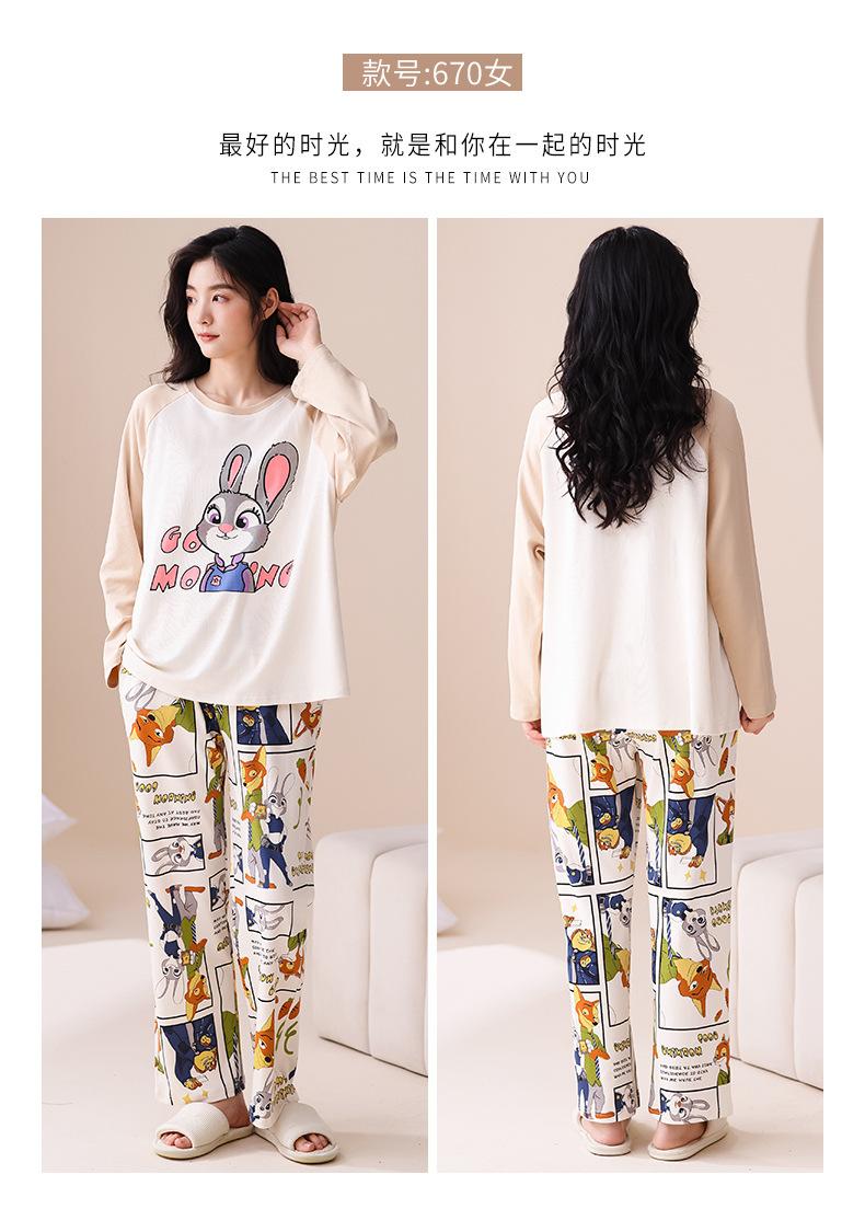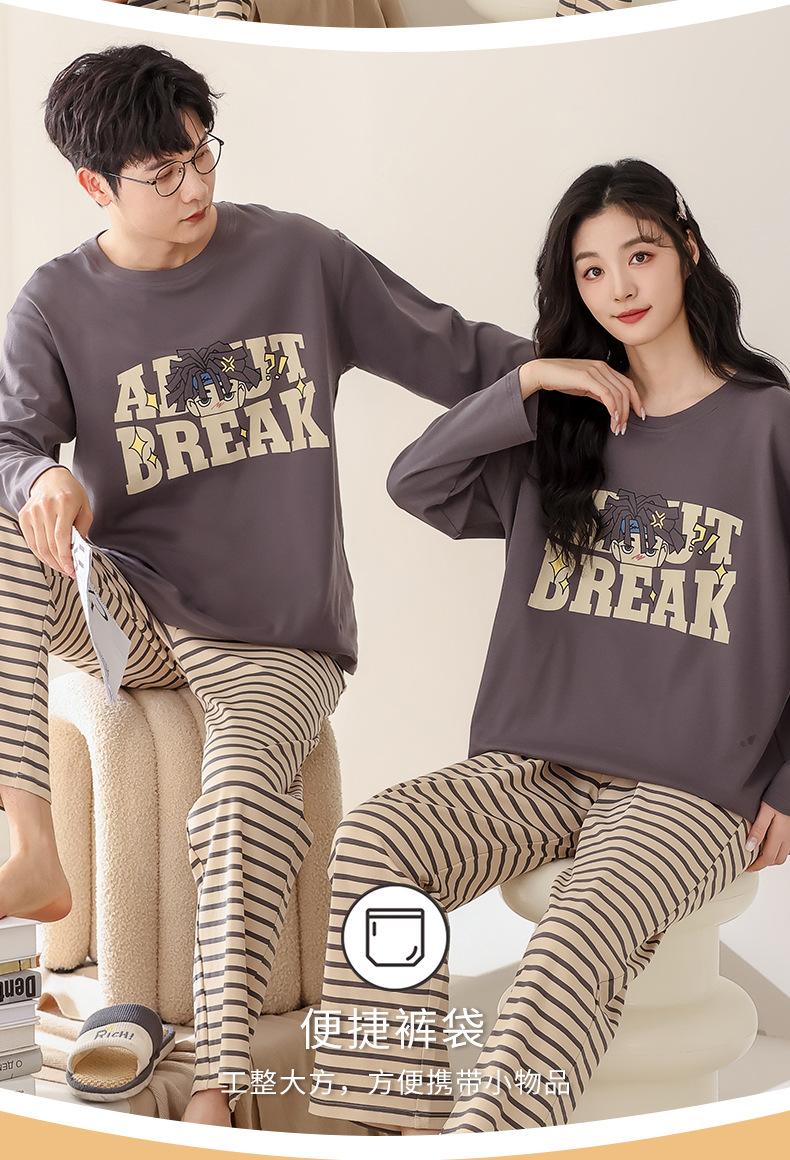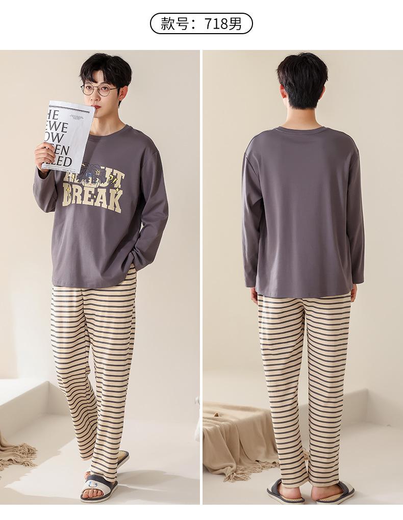 Pijama de Primavera y Otoño para Mujer de Algodón Puro de Manga Larga y Pantalón Largo, Moderno, de Dibujos Animados para Pareja, Ropa de Casa, Conjunto de Dos Piezas