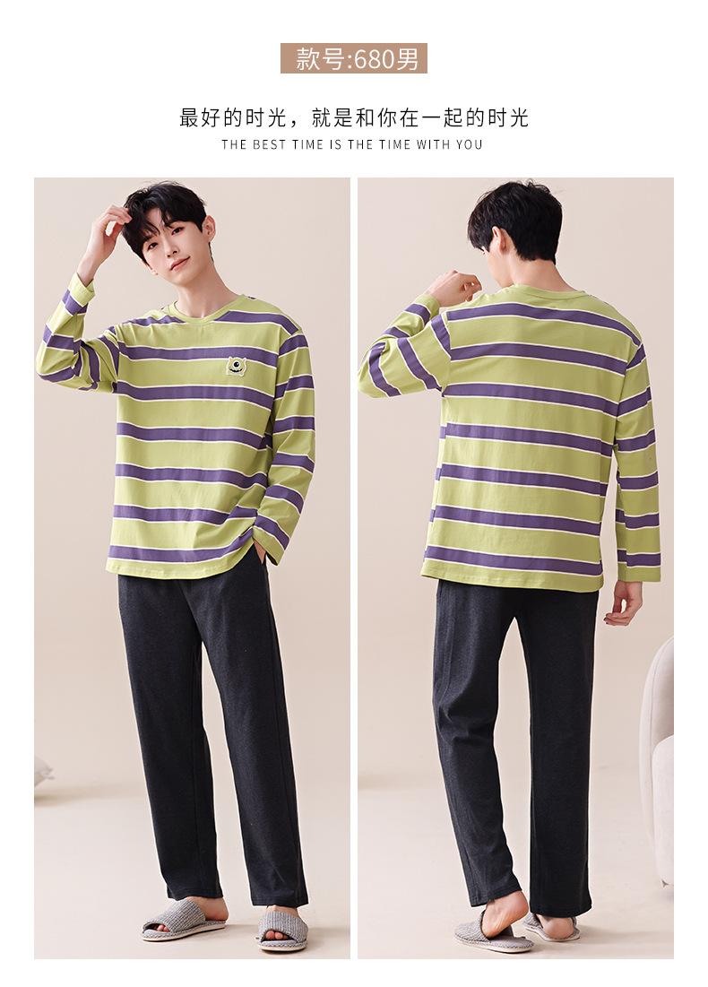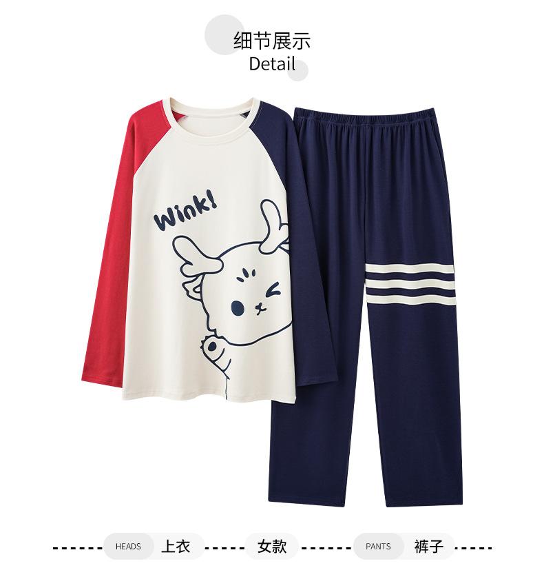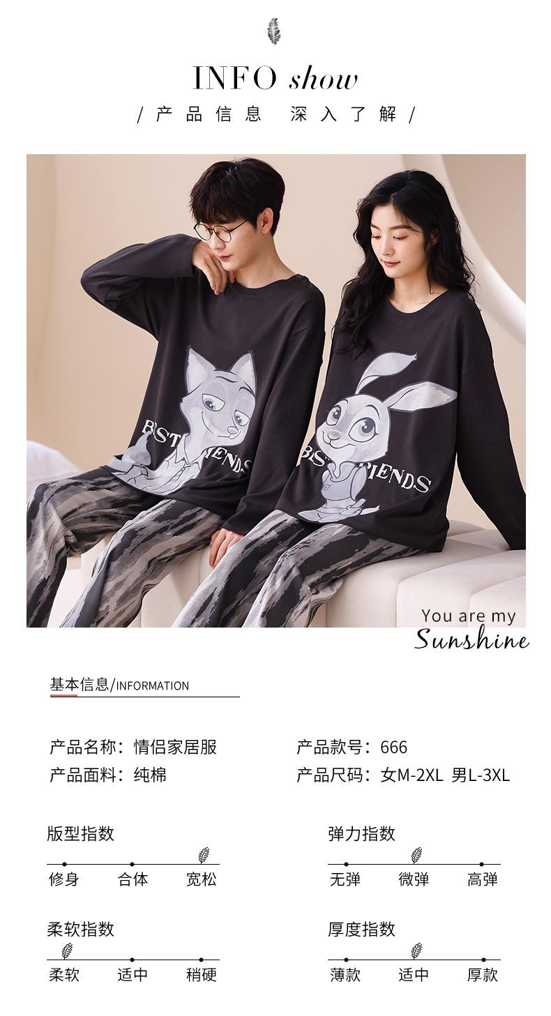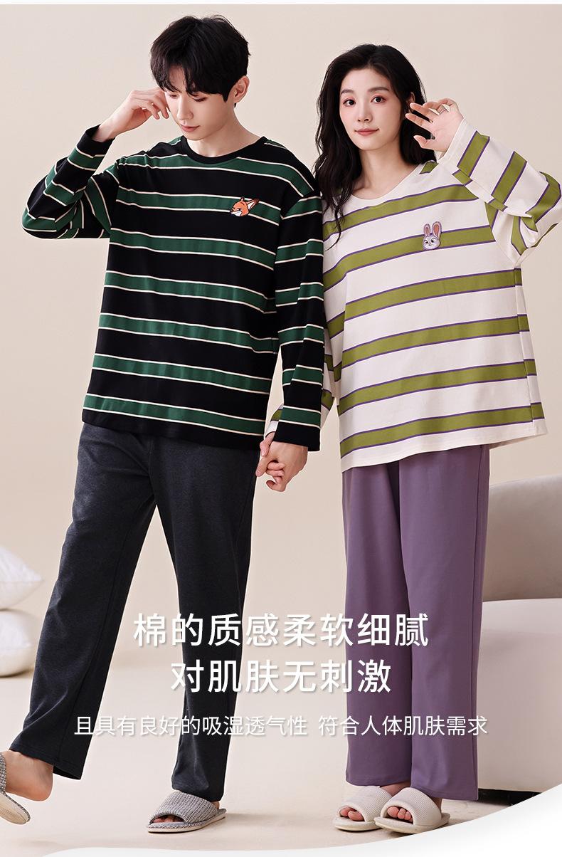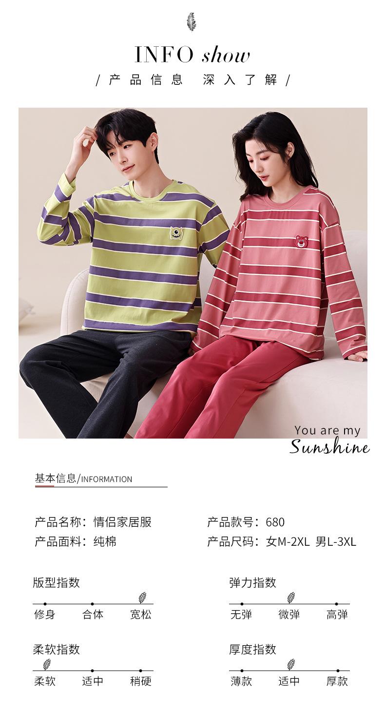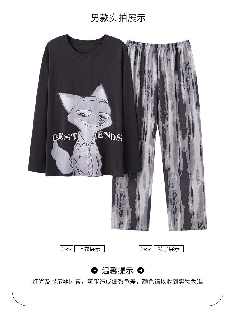 Pijama de Primavera y Otoño para Mujer de Algodón Puro de Manga Larga y Pantalón Largo, Moderno, de Dibujos Animados para Pareja, Ropa de Casa, Conjunto de Dos Piezas
