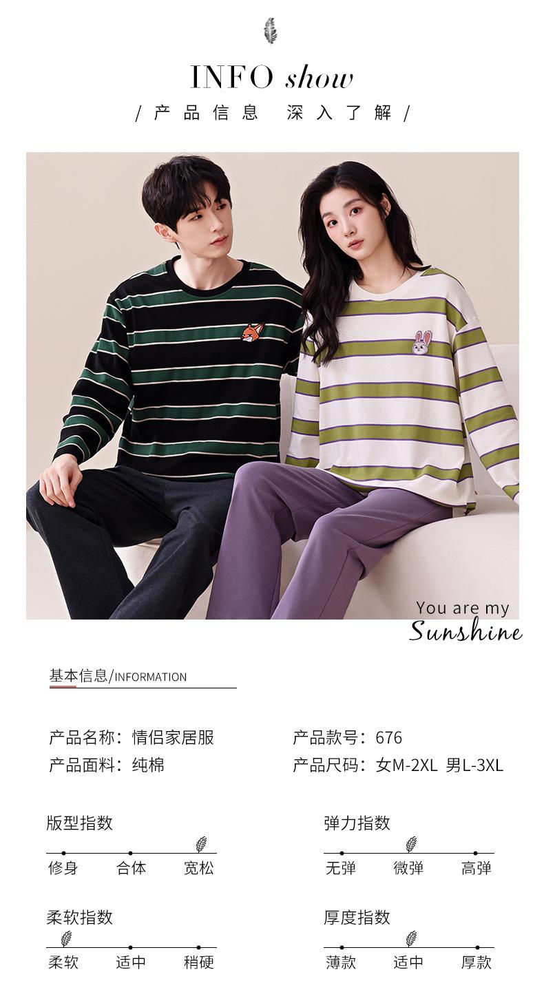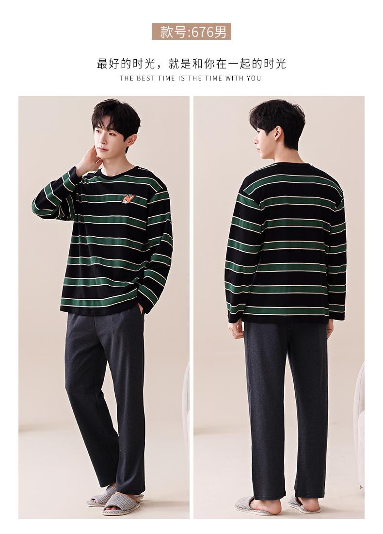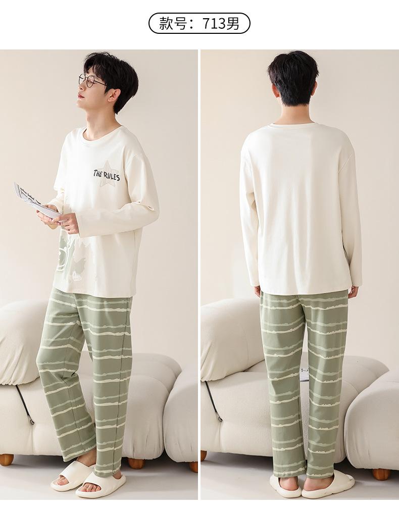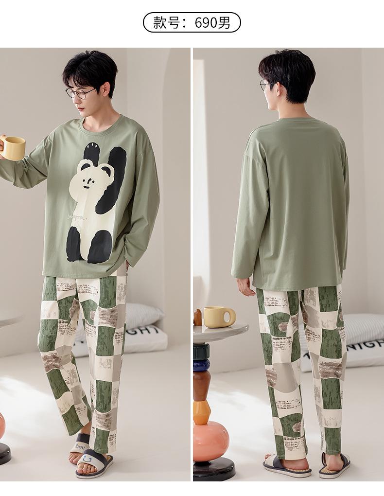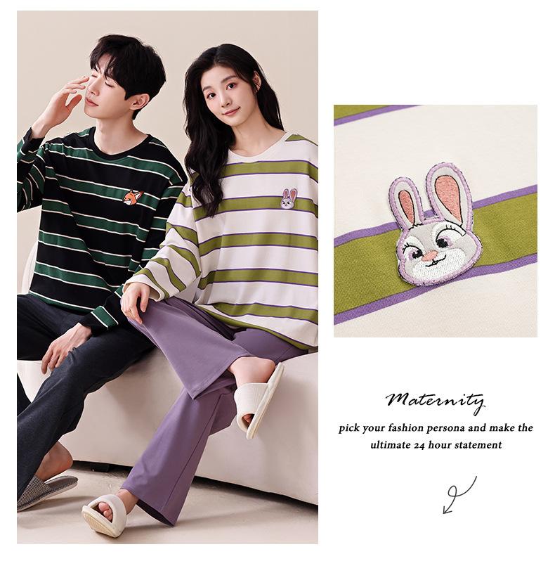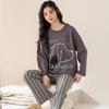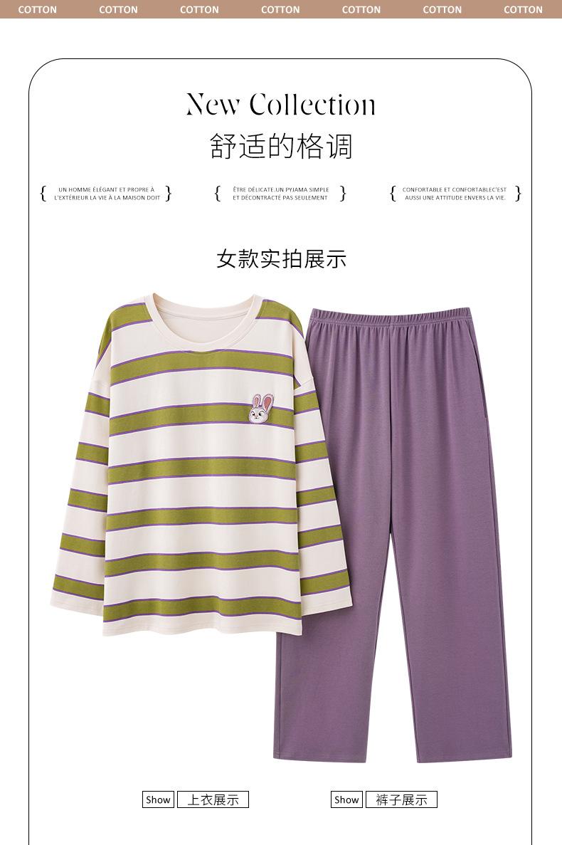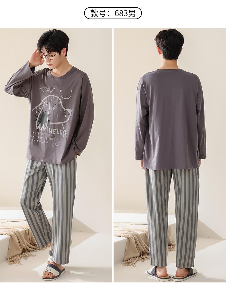 Pijama de Primavera y Otoño para Mujer de Algodón Puro de Manga Larga y Pantalón Largo, Moderno, de Dibujos Animados para Pareja, Ropa de Casa, Conjunto de Dos Piezas