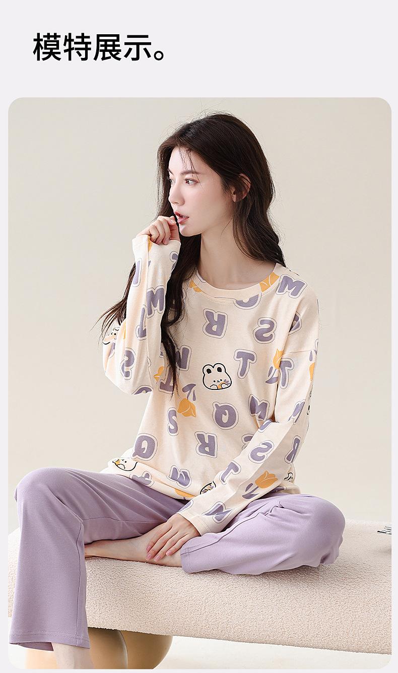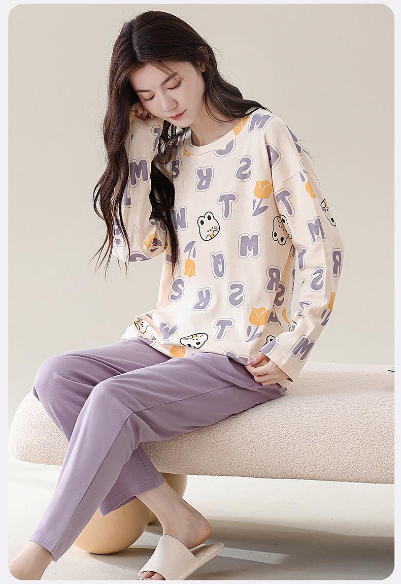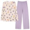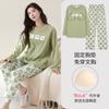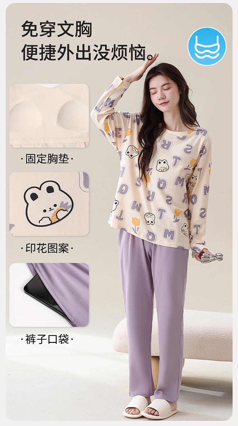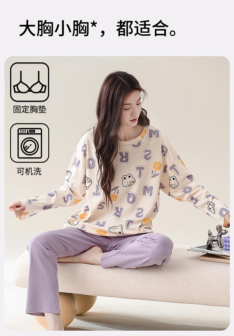 Pijama de mujer de un solo lado de algodón puro estilo coreano con dibujos animados de manga larga para niña con almohadilla para el pecho para primavera y otoño