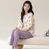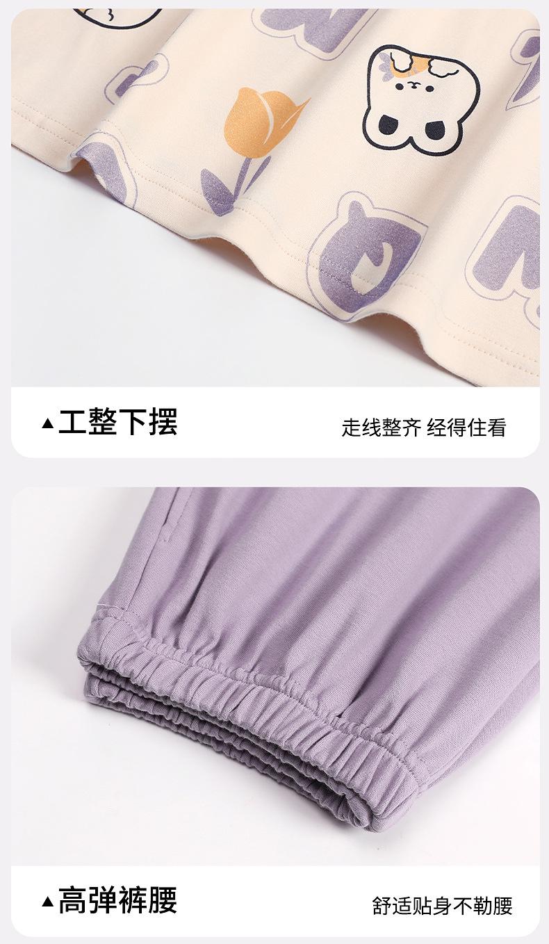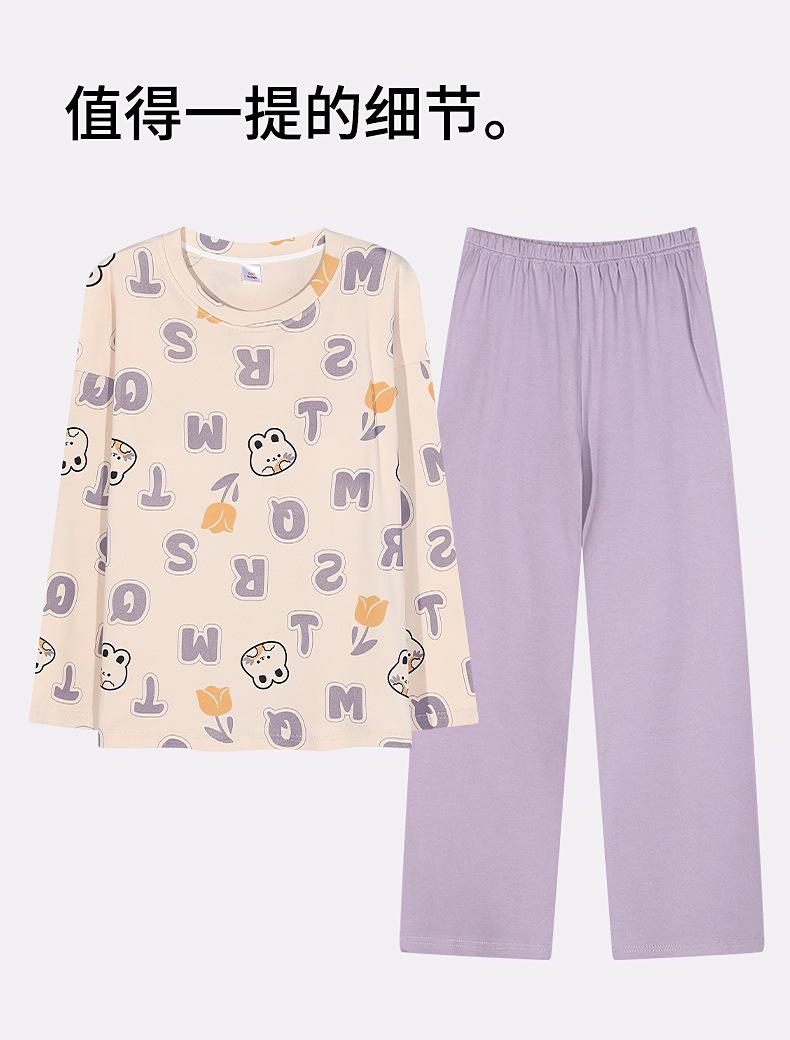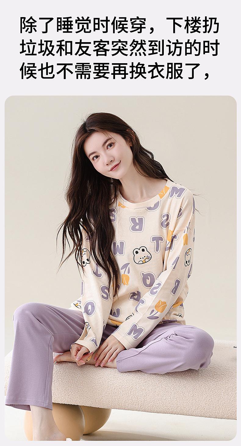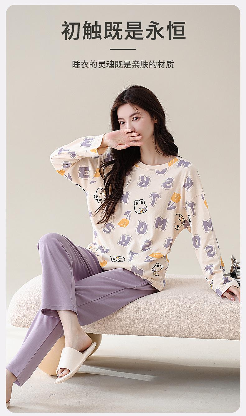 Pijama de mujer de un solo lado de algodón puro estilo coreano con dibujos animados de manga larga para niña con almohadilla para el pecho para primavera y otoño