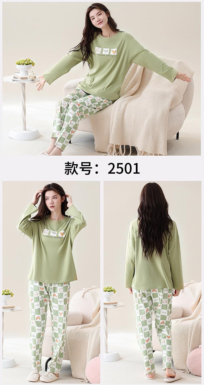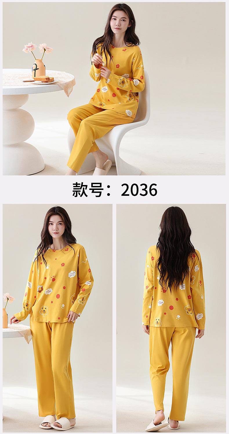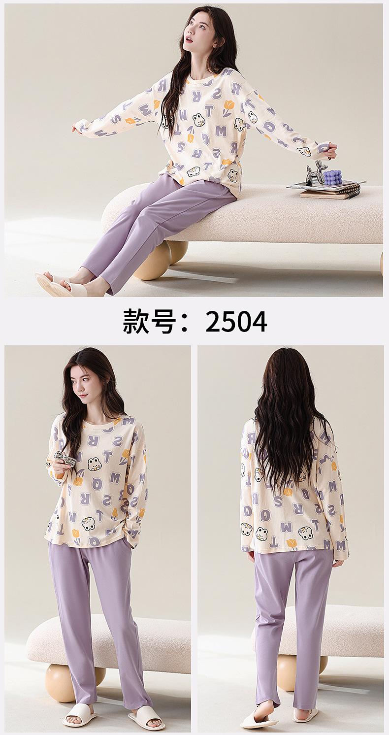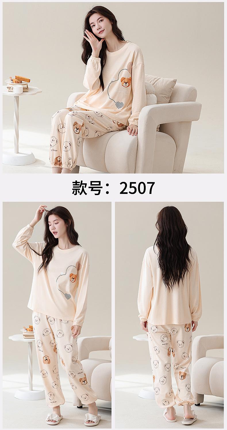 Pijama de mujer de un solo lado de algodón puro estilo coreano con dibujos animados de manga larga para niña con almohadilla para el pecho para primavera y otoño